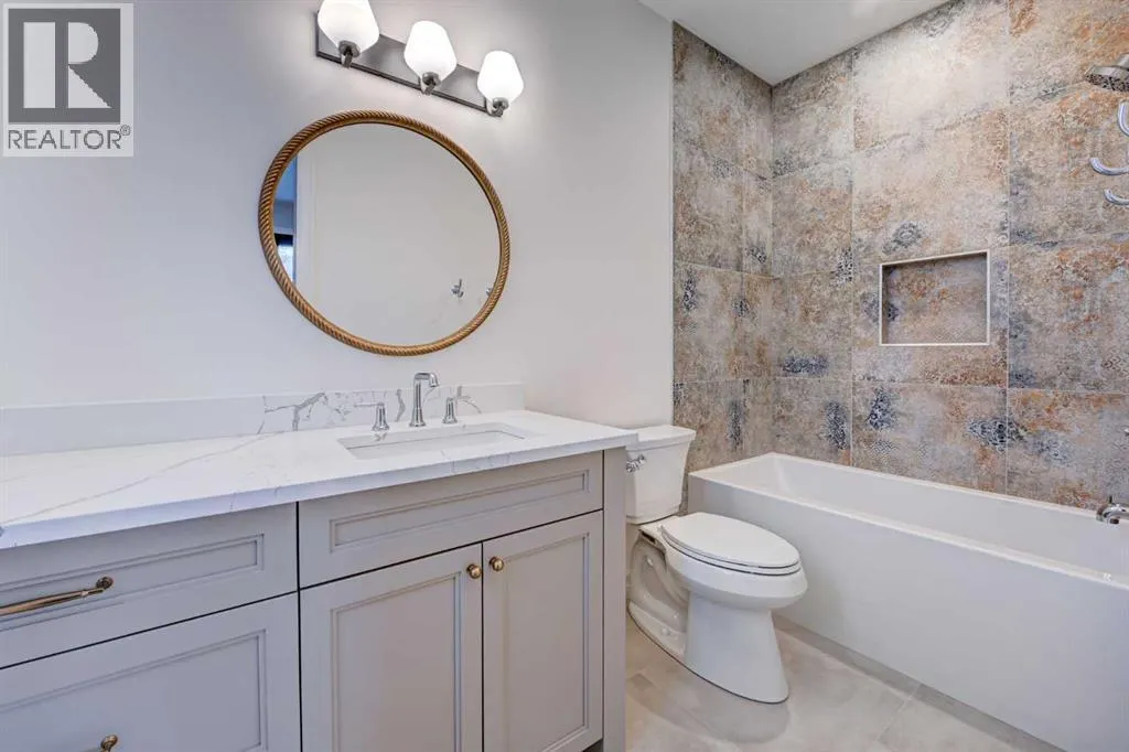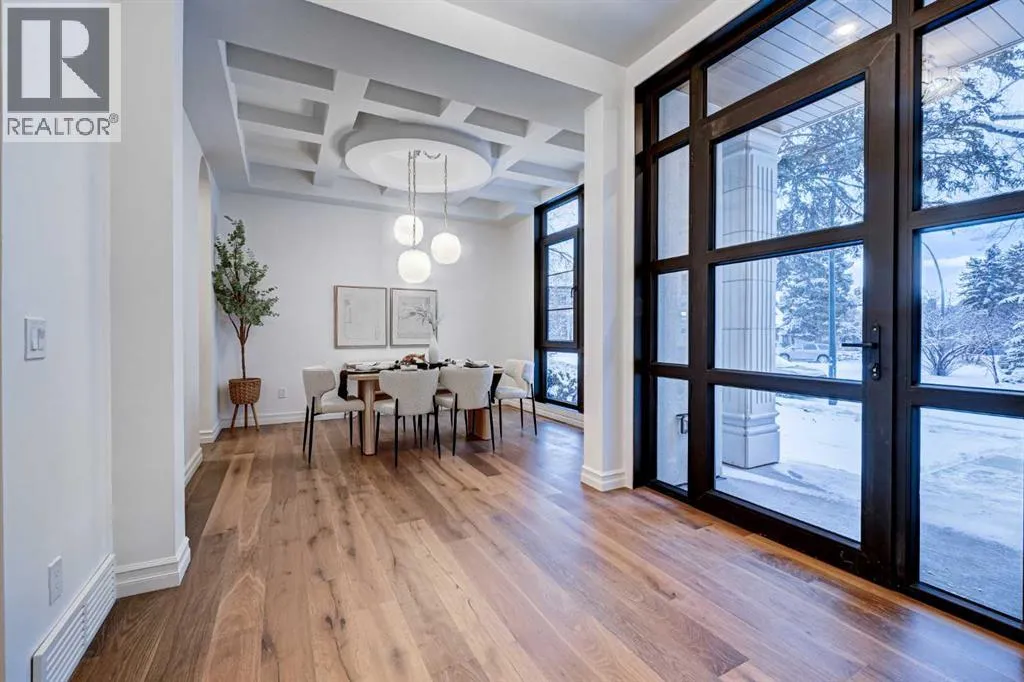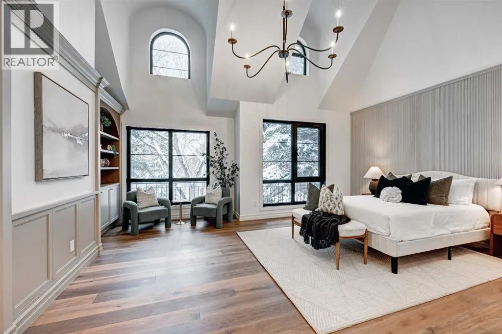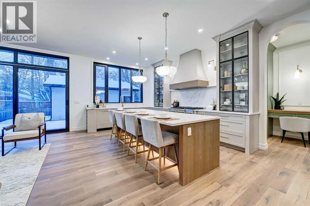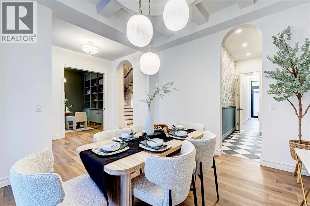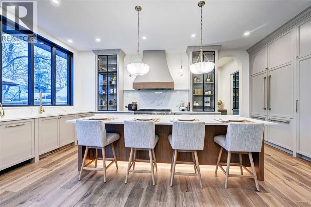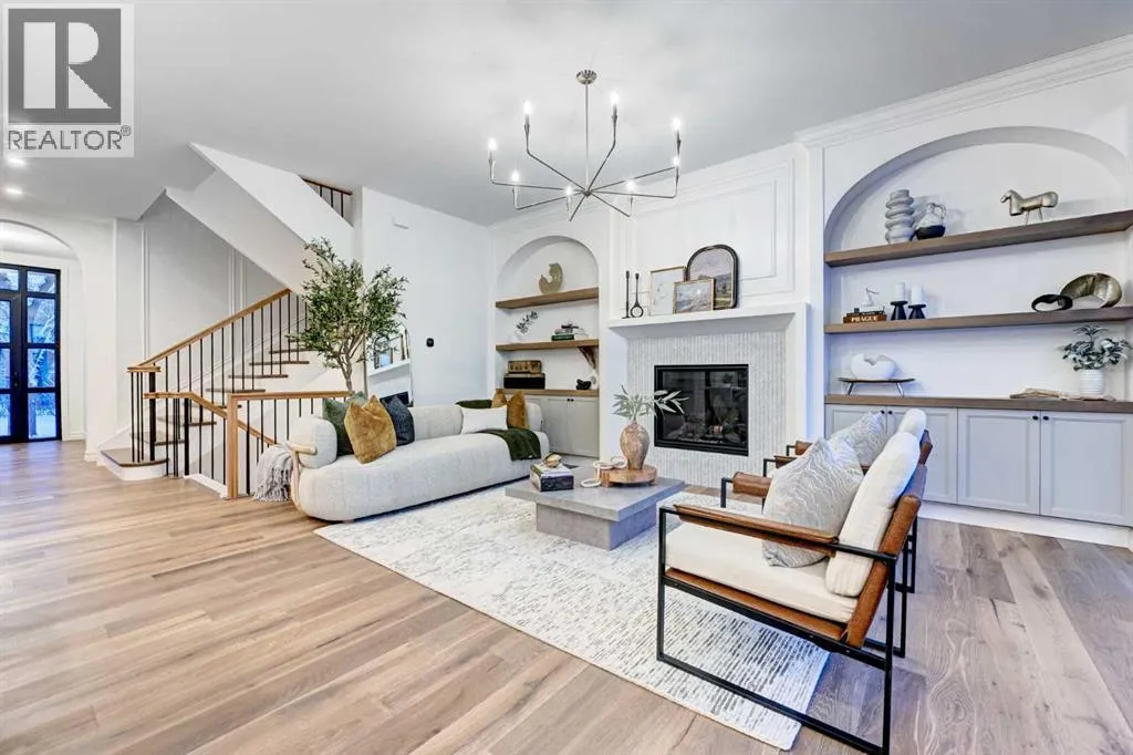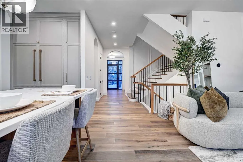 Sen Homes presents a stunning new estate home in the prestigious community of Upper Mount Royal, crafted to the highest standards and ready for occupancy. WITH 4,383 sq.ft. of meticulously developed living space, this home features three spacious upstairs bedrooms, each with walk-in closets and luxurious en-suites equipped with heated floors; the primary suite includes a steam shower and dedicated makeup counter. The main floor is thoughtfully designed with a custom mudroom, butlerâs pantry, private office, formal dining room, and an open-concept kitchen and living area. White oak hardwood flooring spans the main and upper levels, with hardwood accents continuing into the basement. Premium finishes include solid core doors and extensive custom millwork such as office built-ins and a coffee station in the primary suite. The fully developed lower level boasts a gym, an additional bedroom, a full bathroom, smart strand silk carpet and a generous recreation area complete with a stunning wet bar. Noteworthy highlights include European-style black-framed tilt-and-turn windows, in-floor heating in the basement, elegant architectural arches, updated hardware throughout, and more. Situated on a quiet, tree-lined street with a sunny west-facing backyard, the outdoor space includes a large deck with two gas lines (for BBQ and fire table/heater) and an oversized double garage that is insulated, drywalled, painted, & roughed in for heatâthis home is the epitome of luxury and function in one of Calgaryâs most sought-after neighborhoods. (id:27476)