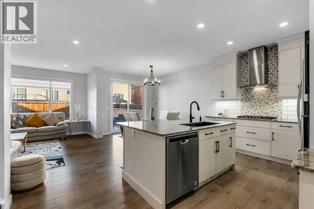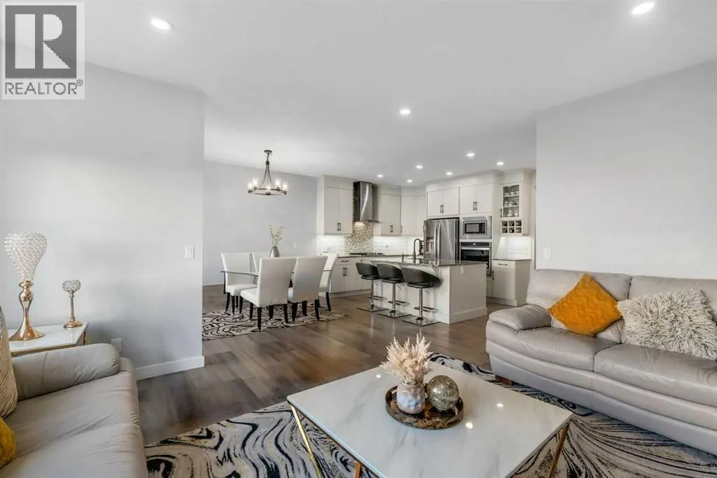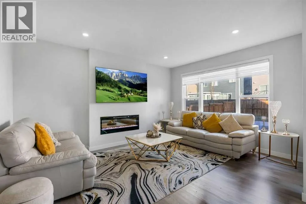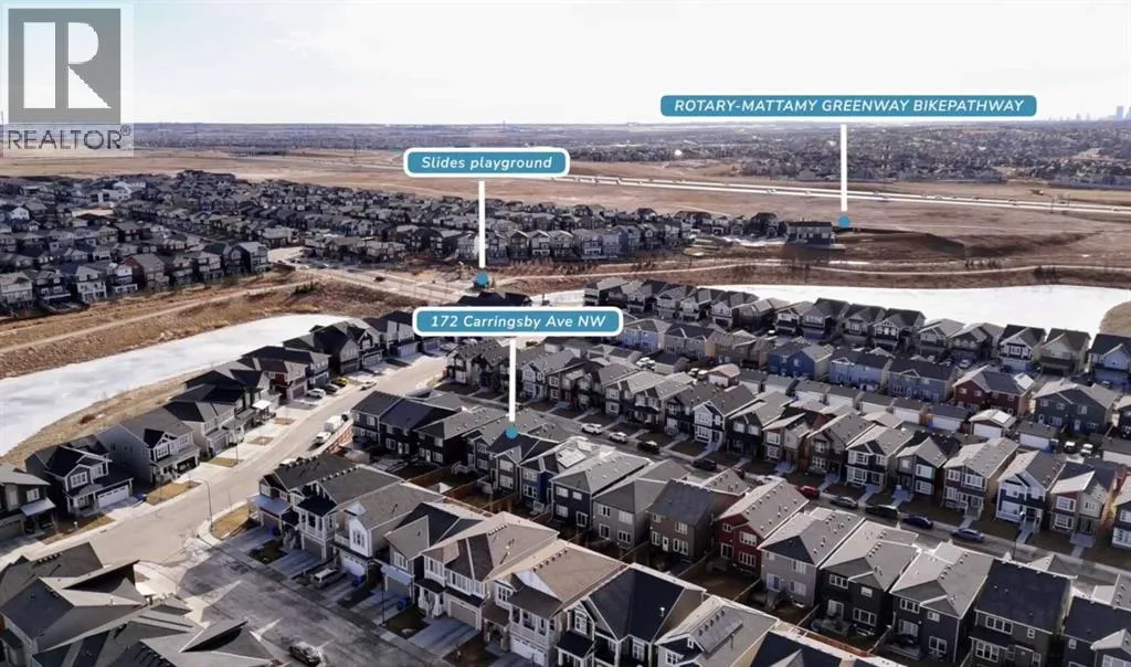 *Watch the video* This is the one! Home Sweet Home! Fall in love at first sight with this picture-perfect home where luxury meets everyday functionality in the heart of Carrington NW. This fully upgraded, nearly 2,000 SQ FT, move-in ready Trico-built home showcases high-end finishes and modern elegance â prepare to be impressed! Located on a quiet, family-oriented street just steps from walking trails and the pond, this home offers the perfect setting for nature lovers. Excellent Location | Bright & Open Floor Plan | Generous Size Backyard | Stunning Chef's Kitchen | Top of the Line Appliances | 3 Spacious Bedrooms (All with walk-in closets) | Vinyl Flooring Throughout | Bonus Room with Vaulted Ceilings | Side Entrance | 9 FT Basement Ceilings. Upon entry, a warm and inviting foyer welcomes you into an open floor plan filled with natural light. The state-of-the-art chefâs kitchen is the true showstopper â featuring gorgeous quartz countertops, extensive cabinetry including glass cabinets and wine shelving, sleek black hardware, an upgraded designer backsplash, under cabinets lighting, and a massive island perfect for entertaining. The elegant living room is framed by large windows and a cozy fireplace, creating a warm and inviting space for winter evenings. The spacious dining area comfortably accommodates a 6â8 seat table for family gatherings. Upstairs, upgraded vinyl flooring continues throughout â no carpet whatsoever! The vaulted bonus room is ideal for movie nights or a kidsâ retreat. This level offers three generous bedrooms, including a primary suite with a walk-in closet and a private ensuite featuring a tub, glass shower, and dual sinks. Two additional bedrooms with walk-in closets, a full bathroom, and a convenient laundry room complete the upper floor. And with a separate side entrance and an unfinished basement with rough-ins for a future bathroom, wet bar, and laundry, youâre not just buying a home â youâre investing in future potential. Ample of bac kyard space - something which would find as a rare feature now days - your kids would love to play around and your summer gatherings would be amazing. Located in a desirable NW Calgary community with quick access to Stoney Trail, schools, parks, and shopping, this home offers the perfect blend of luxury, space, and modern convenience. Donât miss your chance to own this fully loaded dream home. (id:27476)