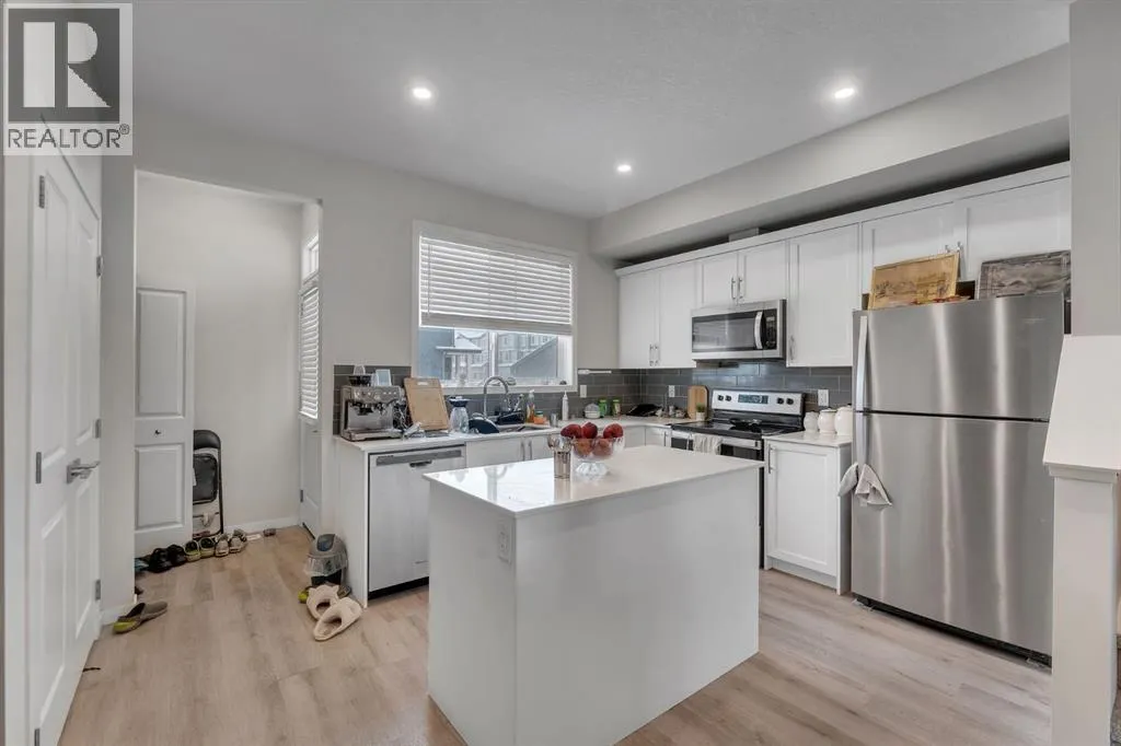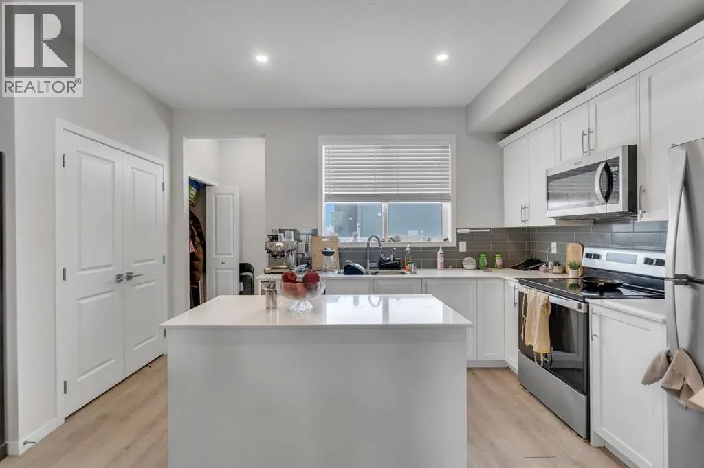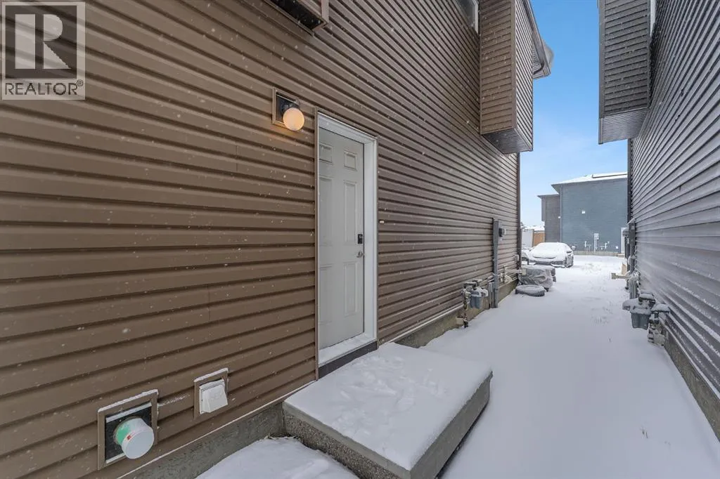 4 BED | 3.5 BATH | LEGAL BASEMENT SUITE | SEPARATE BASEMENT ENTRY | HIGH-END FINISHES | PRIME LOCATION |Welcome to this beautifully upgraded half-duplex in the vibrant and fast-growing community of Cornerstone. Offering 1412 sq. ft. of thoughtfully designed living space, this modern home features an open-concept layout, stylish upgrades throughout, and a fully finished LEGAL basement suiteâperfect as a mortgage helper or investment opportunity.The bright and inviting main floor welcomes you with a spacious living area that flows effortlessly into the dining space, creating the perfect setting for family time and entertaining. At the rear of the home, the upgraded kitchen offers both privacy and functionality, complete with stainless steel appliances, quartz countertops, a stylish backsplash, ample cabinetry, a large walk-in pantry, and an oversized island ideal for meal prep, casual dining, and gatherings.Additional main-floor highlights include a rear mudroom, convenient half bathroom, and smart storage spaces at both entrances, designed for everyday practicality.Upstairs, the spacious primary bedroom features a walk-in closet and a contemporary ensuite with a standing shower and elegant fixtures. Two additional bedrooms share a full bathroom, while a separate laundry room with washer and dryer adds further convenience to the upper level.The fully developed LEGAL basement suite is accessible through a separate side entrance and features 9-ft ceilings, enhancing the bright and open feel. This legal suite includes one large bedroom with an oversized window, a comfortable living area, a modern kitchen with stainless steel appliances, a 3-piece bathroom, its own laundry, and a dedicated furnace, ensuring privacy and year-round comfort for occupants.Ideally located, this home is close to bus stops, playgrounds & walking trails.It faces exactly growing Cornerstone retail plaza and Highstreet at Cornerstone, where youâll find convenient amenities including Chalo Fre shCo, Shoppers Drug Mart, and Tim Hortons, along with major banks. Commuting is easy with quick access to Stoney Trail and Country Hills Boulevard.Covered under the New Home Warranty Program, this move-in-ready home offers peace of mind and exceptional value for both homeowners and investors. Skip the wait for new construction,this upgraded property is ready for immediate possession.Book your private showing today! (id:27476)
