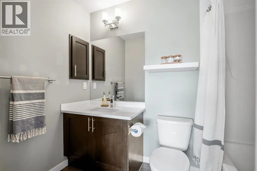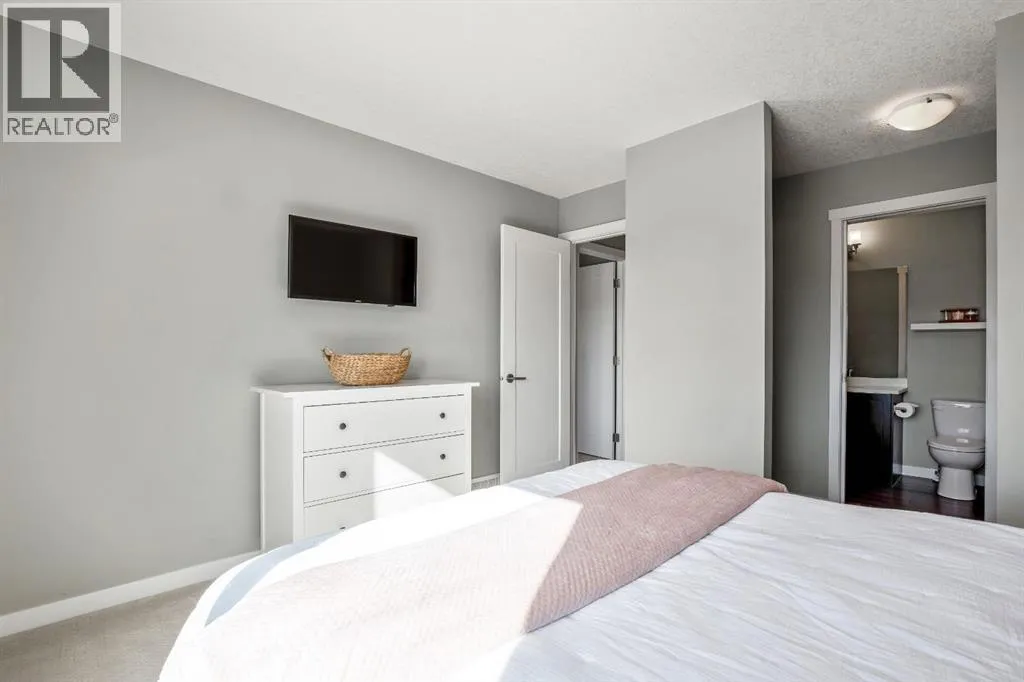 Welcome to this bright and stylish 3 storey corner unit townhome in the sought-after community of Nolan Hill, offering over 1,325 sq. ft. of living space in a very well-managed complex close to parks, ponds, pathways, shops, and restaurants. The main living level features 9â ceilings and an open-concept layout with a spacious living room, dining area, and a modern kitchen complete with quartz countertops, stainless steel appliances, updated lighting and hardware, and a large central island. Sliding doors off the dining area lead to a sunny south-facing deck. Upstairs youâll find two spacious bedrooms, each with its own 4-piece ensuite, making this an ideal layout for roommates, guests, or a home office setup. The primary bedroom also features a walk-in closet. A main level powder room & laundry room add extra convenience. The entry level offers a welcoming foyer and access to the attached single garage with additional storage/mechanical space. Located just minutes from major shopping including Costco, Walmart, Home Depot and Canadian Tire, along with restaurants, schools, playgrounds, and extensive walking paths throughout the community. A great opportunity for first-time buyers, professionals, or investors looking for low-maintenance living in a fantastic NW community. (id:27476)