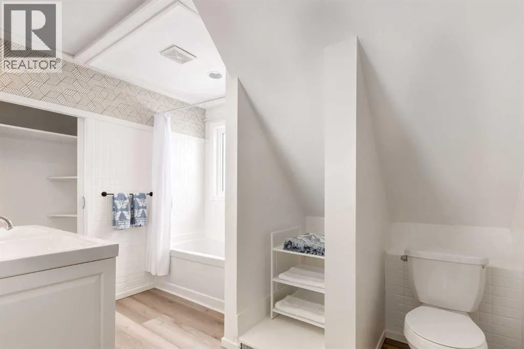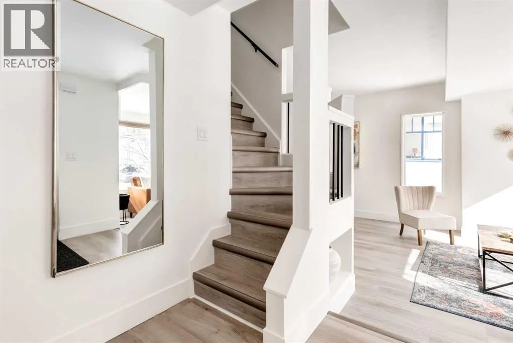 With stunning west-end downtown views and tucked away on a quiet pocket just off Memorial Drive, this home offers the perfect inner-city urban retreat. Located in a true walkerâs paradise, youâre just around the corner from some of Kensingtonâs best dining, cafés, and social venues, while the Bow River pathway system sits less than 100 metres from your front doorâideal for morning runs, bike rides, or evening strolls.Commuting couldnât be easier. Walk just 500 metres to 10th Street if you work downtown, or access major transit routes only two minutes away, making car-free living a realistic and appealing option.This beautifully refreshed 1912 character home blends timeless charm with modern upgrades. Freshly painted and fully renovated inside, the exterior retains its classic character while the interior shows like new. Features include luxury plank vinyl flooring, high-gloss white kitchen cabinetry, quartz countertops, and a full stainless steel appliance package.The main floor offers flexible living with a bedroom that easily doubles as a home office or bonus room, while the upper level features two additional bedrooms and a cozy bonus living area. Thoughtfully designed built-in shelving throughout provides excellent storage and adds to the homeâs unique personality.Large windows fill the home with natural light, creating bright and welcoming living spaces. The fully renovated bathroom features a stylish dual-sink vanity, while the front bedroom impresses with soaring vaulted ceilings and a whimsical ladder-access loft, perfect as a play space, reading nook, or creative bunk-bed setup.A truly one-of-a-kind home combining character, thoughtful updates, and an unbeatable Kensington location. (id:27476)