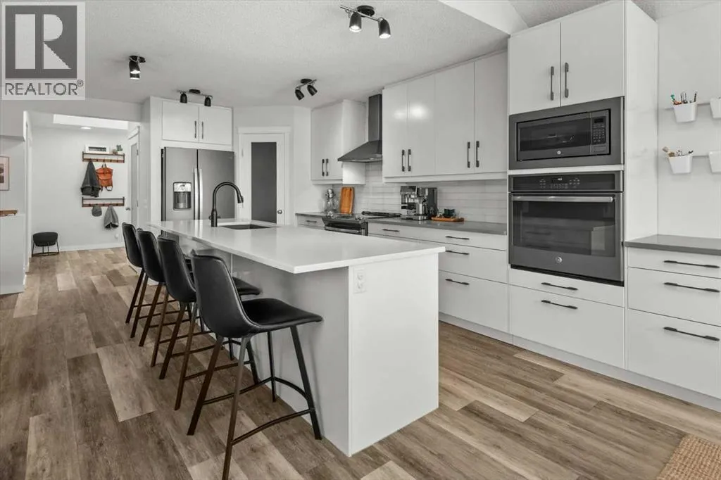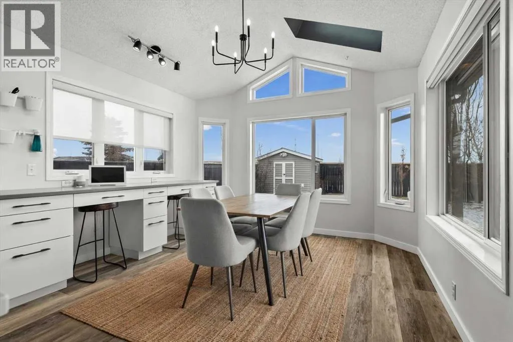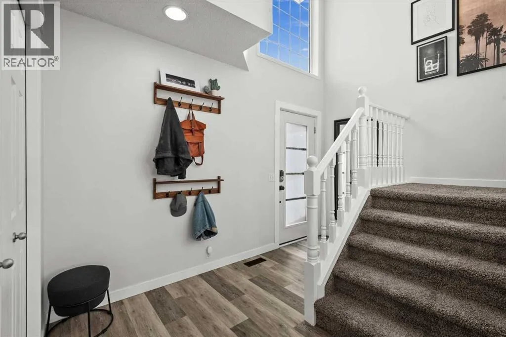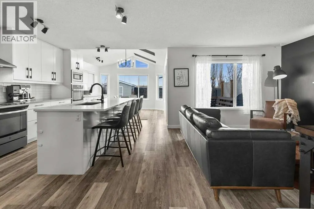 Welcome to 2,265 square feet of lovingly maintained and beautifully upgraded living space nestled in the heart of Coventry Hills, one of NE Calgary's most established and warmly welcoming communities. This exceptional home blends thoughtful renovations, carefully chosen modern finishes, and a truly private outdoor setting to deliver a lifestyle that feels both elevated and effortlessly comfortable from the moment you first arrive. Curb appeal sets the tone immediately and makes a lasting impression. Brand new shingles, fresh new siding, a striking new front door, a new back door, and stunning Gemstone lighting make this home shine with pride in every season. It is the kind of polished street presence that turns heads and sets expectations high, and the interior delivers on every single one of them. Step inside and you are welcomed by a bright, open main floor freshly painted in 2026 and filled with beautiful natural light. The heart of this home is an extraordinary kitchen renovation showcasing custom cabinetry, gleaming quartz countertops, a stunning backsplash, built-in wall oven, a built-in microwave, and a premium graphite appliance package including a brand-new fridge and a Bosch dishwasher. A massive island anchors the space perfectly, ideal for entertaining guests, enjoying casual family dinners, or hosting relaxed weekend brunches with the people who matter most. A custom built-in workstation flows seamlessly into the oversized eating area, where a dramatic vaulted ceiling soars overhead and two generous skylights pour warm natural light into the room. Upgraded lighting throughout adds warmth, sophistication, and polish to every corner of this beautiful home. Upstairs, the generous primary bedroom provides a peaceful sanctuary complete with a full ensuite and a walk-in closet featuring custom built-ins. Two additional well-sized bedrooms, each with custom closet organizers & new blackout blinds, offer a restful and cozy retreat for family members or overnigh t guests. Every detail has been considered with both comfort & lasting practicality in mind. The developed basement expands your living options with ease & flexibility, offering a spacious media area perfect for movie nights, an additional bedroom, and a full bathroom, making it ideal for teenagers, visiting guests, or a quiet home office escape. Step outside and discover your own private backyard sanctuary with no direct neighbours behind you. The large deck features a thoughtfully added privacy wall. This outdoor space is one you will truly treasure season after season and is ideal for hosting summer barbecueâs, watching the kids play, or simply unwinding in the evening quiet with a cold drink in hand. Coventry Hills offers scenic pathways, beautiful parks, top-rated schools, and every everyday amenity within easy reach. Whether you are a growing family, a young professional, or simply someone who appreciates a meticulously maintained and a move-in ready home, this is the one you have been waiting for! (id:27476)
