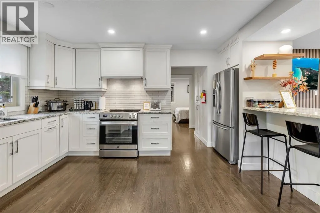 Welcome to 3 Cardiff Drive NW â Rare Inner-City Corner Lot with Park-Side Living and RCG Zoning.Renovated in stages, Lux detached home on a rare 100-foot-wide elevated corner lot in a quiet cul-de-sac. With parks on both sides, mature trees, this property offers privacy, ample sunlight, and serenity just few minutes from downtown Calgary.The house features 4 bedrooms and 3 custom full bathrooms with natural granite stone and ceramic tiles covering around 2226 sq feet of luxurious livable space.Main floor: 2 bedrooms 2 full bathrooms, open-concept layout, hardwood flooring, and a custom kitchen with natural granite with sit-up island, soft-close cabinetry. SS appliances, The primary suite includes anensuite. All New energy efficient windows as per city guidelines and new blinds, Updated electric panel and sanitary lines. Basement: provides 2 bedrooms and a family area with cabinetry and built-in shelving, dedicated office and study, laundry room and 1 full bathroom with Jack-and-Jill access.Recent $- upgrades: and upkeep include: two low-maintenance composite panel decks, smart home security with Schlage locks and premium video doorbell operable remotely from anywhere, full audio-video camera system with screen for indoor monitoring, energy efficient new air conditioning (Permit approved), upgraded lighting: (includes premium fixed smart, automated interior and exterior FIXED SMART LIGHTING, two premium electric fireplaces with realistic flames look, new cooking range, upgraded washroom fittings, TV and bracket, and changed layout, new rich carpet with thick pile in basement and much more.... Immediate real value & investment potential (subject to city approvals): convert the basement to a legal suite, transform the existing garage into additional main-floor living space with 3rd bedrooms, with ensuite, a sauna and laundry to make this property 3 bedrooms and 3 washroom on main floor (with 2 ensuites and a sauna and build a triple heated garage with st orage and professionally designed patio above the garage will place this property next to impossible to find and unlocking its true value forthwith. Above all its Airbnb ready, you donât need to buy anything for short term rental. The RCG zoned Lot also allows for future multi-home development for sale or rental prospects.Outdoor features: include a professionally landscaped yards getting air and sunlight from every possible directions, decks, fire pit along with newly purchased (very less used) backyard furniture, BBQ, and patio heater and storage shed included.Location highlights: walking distance to Confederation Park, shopping plazas, baseball court, with University of Calgary and SAIT College just minuteâs drive away. Central Calgary location offers easy access to downtown, parks, schools, and all city amenities.This turn-key home combines vintage vibe, modern style, smart home technology, outdoor living, and exceptional investment potential â a truly rare opportunity to call it a home. (id:27476)