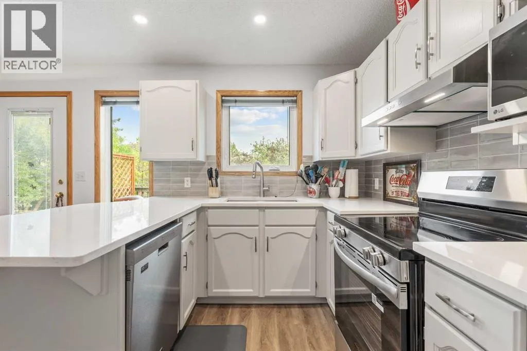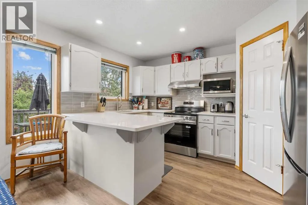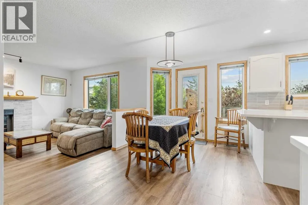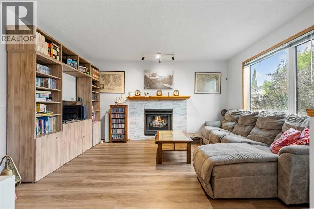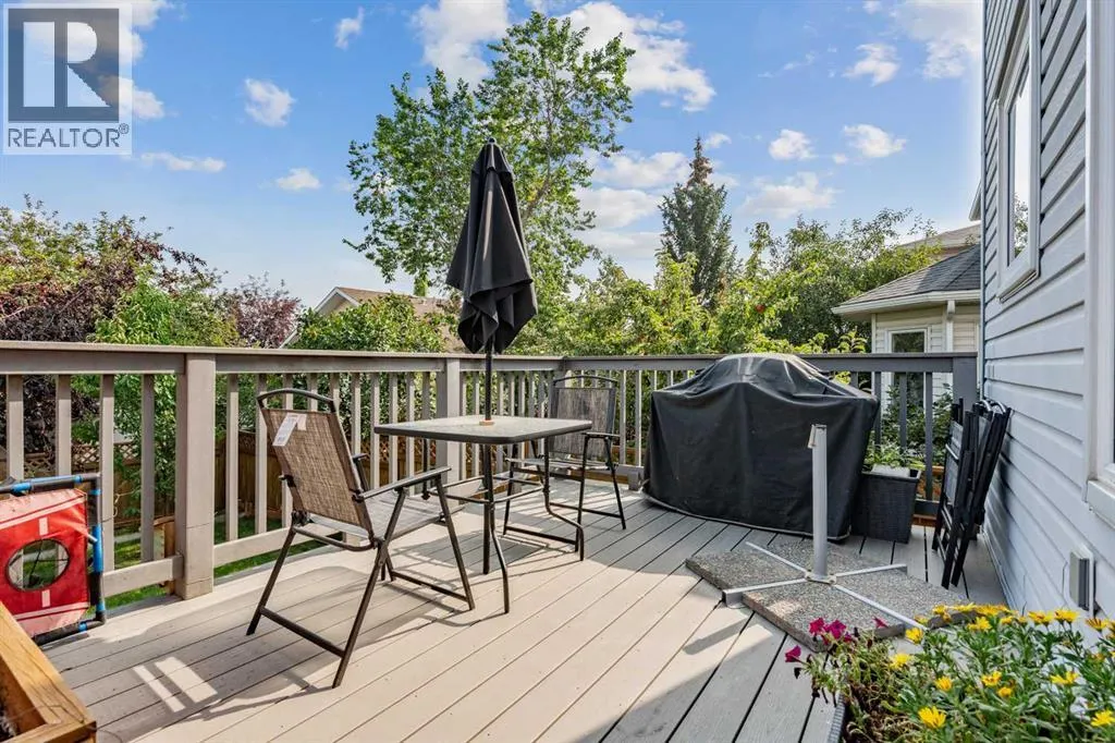 This 4-bedroom, 3.5-bathroom family home is ideally located just one block from the lake, where residents enjoy swimming,fishing, boating, skating, and year-round community events. Walk to Crowfoot shopping, restaurants, YMCA, and LRT, with quick access to John Laurie Blvd, Nose Hill Drive, Crowchild Trail, and Stoney Trail for effortless commuting. Step inside to a spacious foyer leading to a traditional floor plan with vinyl plank flooring on the main level. The front living room flows into a bright dining area, while the east-facing kitchen shines with updated quartz countertops, breakfast bar, and stainless steel appliances. A sunny kitchen nook overlooks the backyard, and the cozy family room with gas fireplace is perfect for relaxing. A powder room and convenient laundry complete the main floor. Upstairs, the primary retreat features a 5 piece ensuite and walk-in closet. Two additional bedrooms and a 4-piece hall bath provide plenty of space for family. The fully finished basement includes a large rec room, flex space, a fourth bedroom, and a 3-piece bathroom with heated floors âideal for guests or teens. Recent upgrades include: Triple-pane windows, High-efficiency furnace, Hot water tank, Newer refrigerator & Electric stove, Replacement of poly-b plumbing, and Class 2 shingles. Enjoy summer evenings in the private backyard with a low-maintenance composite deck and spacious lawn. This is your chance to live inone of NW Calgaryâs most sought-after lake communitiesâjust steps to the water and minutes to everything you need! (id:27476)