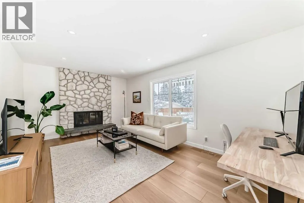 Welcome to 9611 Palisan Place. This renovated two storey home features four bedrooms and is located on the best street in the sought-after SW community of Palliser. This home has recently been re-finished and is ready for a new family! The main floor is super bright with new windows, new flooring, new lighting, flat ceilings, and fresh paint. The spacious living room overlooks the front porch and the greenspace of Palisan Place. The dining room and kitchen area overlook the rear yard and feature a walk-out to the southwest facing patio â perfect for summer BBQs and spending time with friends and family. The main floor also features a super cozy family room with a beautiful wood burning fireplace overlooking the expansive SW yard. The upper level includes four large bedrooms with fresh paint, flat ceilings, and brand-new plush carpet. The primary suite is located at the front of the house and features a three-piece ensuite with his and her closets. The lower level has been taken down to the studs with new drywall and is ready for your creative touch! This is one of the largest lots in Palliser and features a massive southwest facing rear yard with all new fencing and a swimming pool with decking for those hot summer days! The attached double garage is heated and features new doors and openers. Palliser is a perfect SW community that is walking distance to South Glenmore Park, multiple shopping centers with coffee shops and restaurants, an elementary school, a junior high school, Southland Leisure Center and is close to the SW BRT with rapid transit to Mount Royal Collage and downtown Calgary. This location also offers an easy commute to the core and quick access to the Calgary Ringroad. Other recent updates include roof, windows, doors, fencing, and air conditioning. Two storey homes with this location are super rare in this community â call your favorite Realtor today to schedule your private viewing. (id:27476)