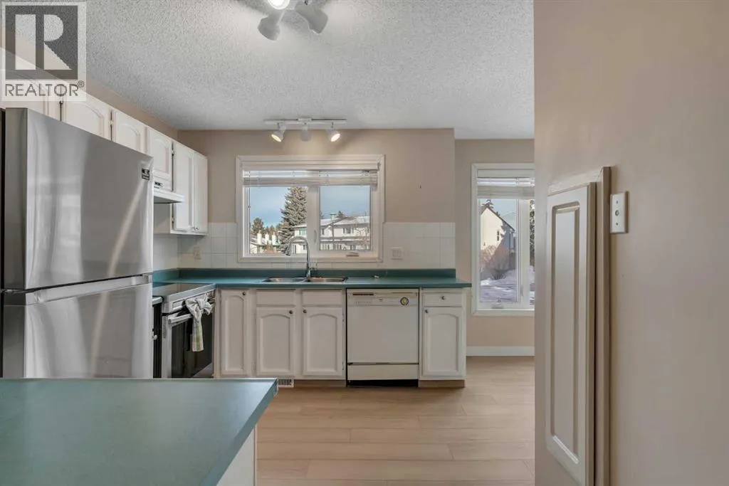 3 BEDROOMS | 2 BATHROOMS | 5-LEVEL SPLIT TOWNHOME | 1,496 SQ FT OF LIVING SPACE | ATTACHED GARAGE | WALKOUT | RANCHLANDS COMMUNITYWelcome to this bright and spacious 5-level split townhome in the highly desirable Ranchlands Courts! With over 1,500 sq.ft. of living space, a rare attached garage, and a functional layout designed for modern living, this home is ready for the next owner to make it their own. Enjoy west-facing exposure and abundant natural light throughout the home.Moving up from the foyer, youâll find a spacious and functional living area, perfect for relaxing, entertaining, or spending time with family. On the 3rd level, the kitchen, dining area, and breakfast nook create a central hub for meals and gatherings, ideal for everyday living and entertaining friends.The 4th floor features two generous bedrooms, while the top floor is home to the expansive primary suite. This large master offers ample space for a sitting area or workspace, multiple closets, and a 4-piece ensuite. Large windows fill the room with natural light, creating a bright and inviting retreat.The lower-level recreation room adds flexibility, featuring a wood-burning fireplace and a walkout to serene greenspace, ideal for indoor-outdoor living and peaceful relaxation.Life in Ranchlands offers a vibrant lifestyle with parks, shopping, and transit nearby, combining convenience with a welcoming community atmosphere. This rare townhome with size, layout, attached garage, And walk-out is full of potential. Come see why Ranchlands Courts living is so desirable! (id:27476)