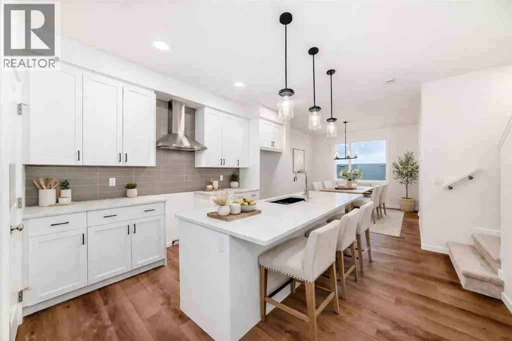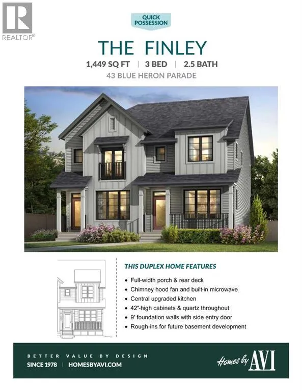 STARTING OUT IN REAL ESTATE IS A LOT MORE FUN WHEN THE HOUSE IS ALREADY THINKING A FEW STEPS AHEAD.This Finley model from Homes by Avi keeps things efficient in the best possible way. At 1,449 SQ FT ABOVE GRADE, the layout focuses on the spaces you actually use instead of padding the floor plan with rooms that sound good on paper but rarely earn their keep.The main floor is centred around a kitchen designed for real daily life. QUARTZ COUNTERTOPS, 42" UPPER CABINETRY, a CHIMNEY HOOD FAN, and a BUILT-IN MICROWAVE keep the space functional and clean-lined, while the island becomes the natural landing spot for coffee, laptops, groceries, and the conversations that happen in between. The dining and living areas flow easily from there, creating a main floor that feels open without wasting square footage.Upstairs keeps the same practical approach. Three bedrooms, two full bathrooms, and upper laundry give the home a layout that works the way most households actually live. The PRIMARY BEDROOM includes a WALK-IN CLOSET and PRIVATE ENSUITE, while the secondary bedrooms offer flexibility for family, guests, or a dedicated home office.Where this home quietly sets itself apart is downstairs. The 9â BASEMENT WITH A SEPARATE SIDE ENTRY is already set up for the future with plumbing rough-ins, laundry rough-ins, and a bar sink rough-in in place. Behind the scenes, the mechanical planning goes even further with 200-AMP ELECTRICAL SERVICE, an EV CHARGER ROUGH-IN, and a SOLAR CONDUIT running from the mechanical room to the atticâinfrastructure decisions that make a home far more capable over time.Outside, a REAR DECK and TWO-CAR PARKING PAD off the lane keep things simple and functional today while leaving room for whatever the next phase looks like.Set in Rangeview, a southeast Calgary community planned around tree-lined pathways, connected parks, and calm residential streets, with quick access to Seton, Mahogany, Deerfoot Trail, and Stoney Trail. If youâre stepping in to the market for the first timeâor looking for a property that makes long-term sense as a rentalâthis one is worth seeing in person. Ready to call home in April!⢠PLEASE NOTE: Photos are of a DIFFERENT spec home of the same model â fit and finish may differ. Interior selections and floorplans shown in photos. (id:27476)