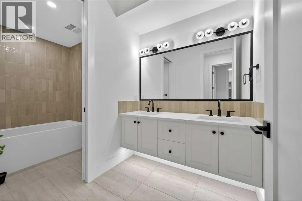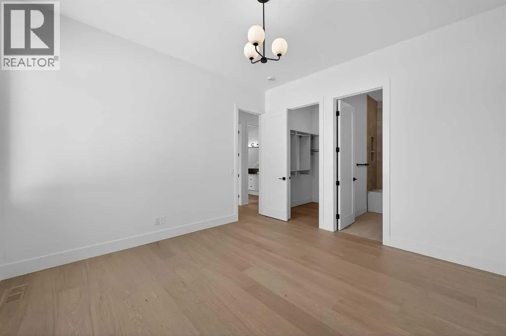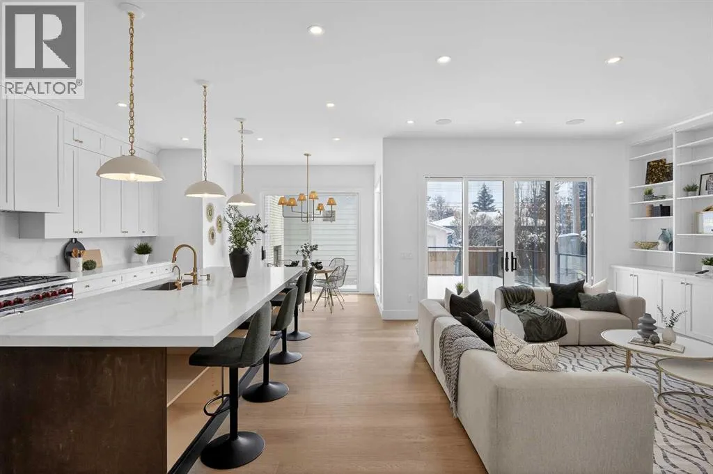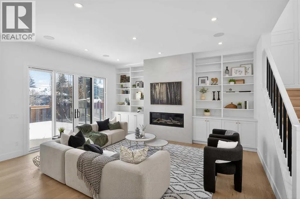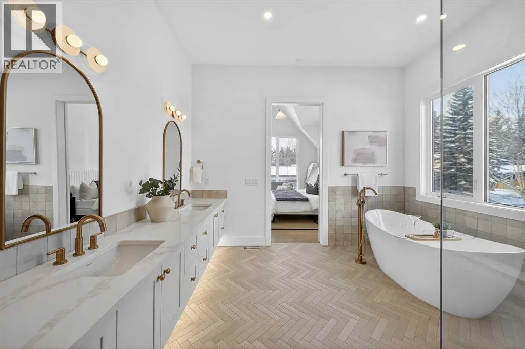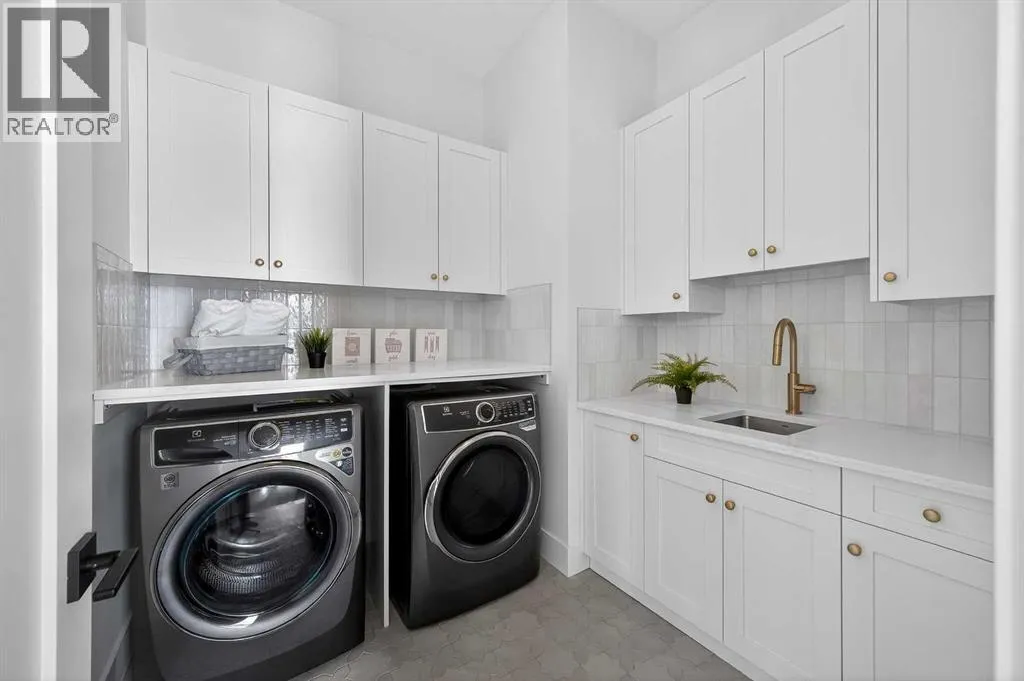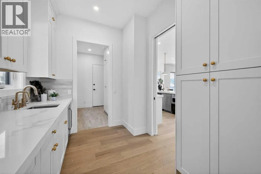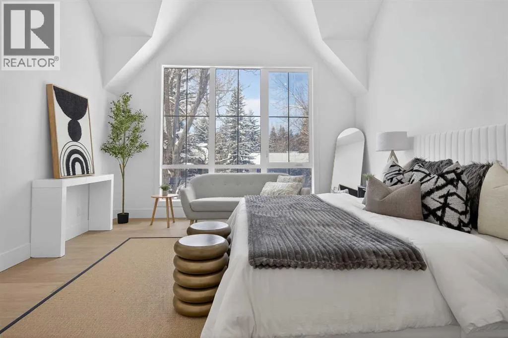 Introducing a stunning new-construction Modern Farmhouse estate that represents a sophisticated blend of transitional luxury and contemporary design. Captivating curb appeal is achieved through a striking neutral palette, a grand arched entryway, and an abundance of oversized, black-framed windows that create a dramatic, light-filled welcome. This residence boasts over 4,900 sq ft of total living space, including more than 3,300 sq ft on the upper levels, featuring 6 spacious bedrooms and 4.5 luxurious bathrooms. Experience true volume with 10-foot ceilings on the main and second levels, complemented by premium engineered hardwood flooring throughout the upper floors. The kitchen is a culinary masterpiece equipped with top-tier appliances, including a built-in Sub-Zero refrigerator and freezer, an 8-burner Wolf gas range, and a matching Wolf hood fan, while a dedicated butlerâs pantry with a sink adds further convenience for entertaining.The upstairs Primary Suite serves as a private sanctuary featuring a vaulted ceiling and a bespoke walk-in closet with a central island. The spa-like ensuite offers the ultimate in comfort with heated floors finished in a stunning herringbone pattern tile. For ultimate family convenience, every secondary bedroom on the second floor also includes its own private washroom and walk-in closet. The expansive lower level significantly extends the living space and features heated floors throughout for year-round comfort. This basement includes three additional spacious bedrooms, a luxurious 5-piece bathroom, and an incredible recreation area complete with a sprawling family room and a full bar, perfectly appointed for movie nights or hosting guests.Engineered for peak efficiency and performance, this home features the newest technology NTI boiler furnace integrated with flexible duct vent technology. The highly functional features continue with a cozy gas fireplace in the living room and a second gas fireplace located outside on the co ncrete patio for elegant outdoor entertaining. The main floor also includes a functional mudroom and a rough-in dog wash area, proving that this house truly has it all. Situated in prestigious Lakeview SW, this estate is surrounded by mature trees and offers phenomenal connectivity, located less than a 15-minute drive from Downtown Calgary. It is minutes away from Mount Royal University and Rockyview General Hospital, with immediate access to North Glenmore Park and elite Golf Clubs. This home sets a new standard for move-in-ready, transitional luxury living. An opportunity not to be missedâcall your favorite realtor today to book a private showing. The lockbox is hanging on the pole directly in front of the house for easy access. (id:27476)