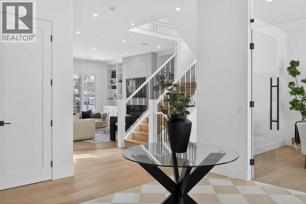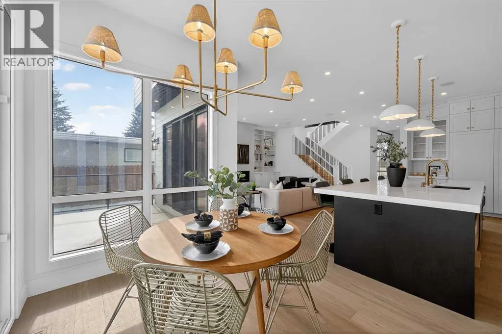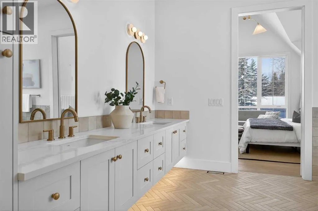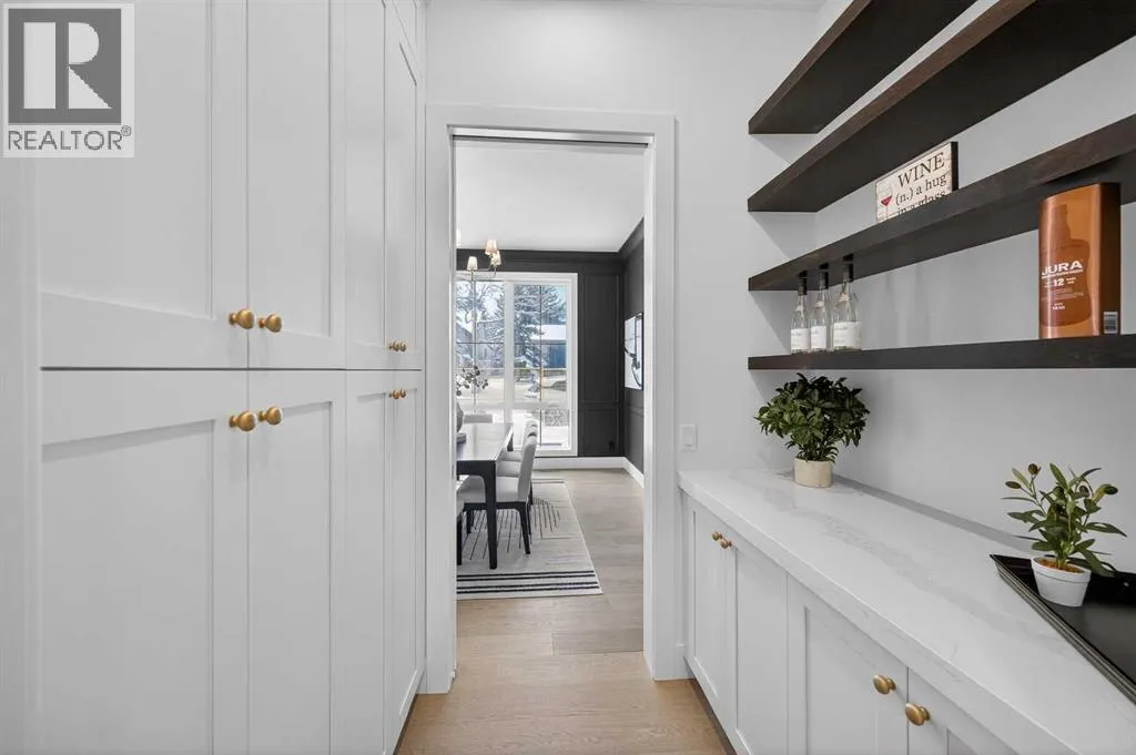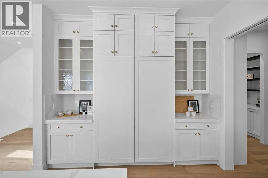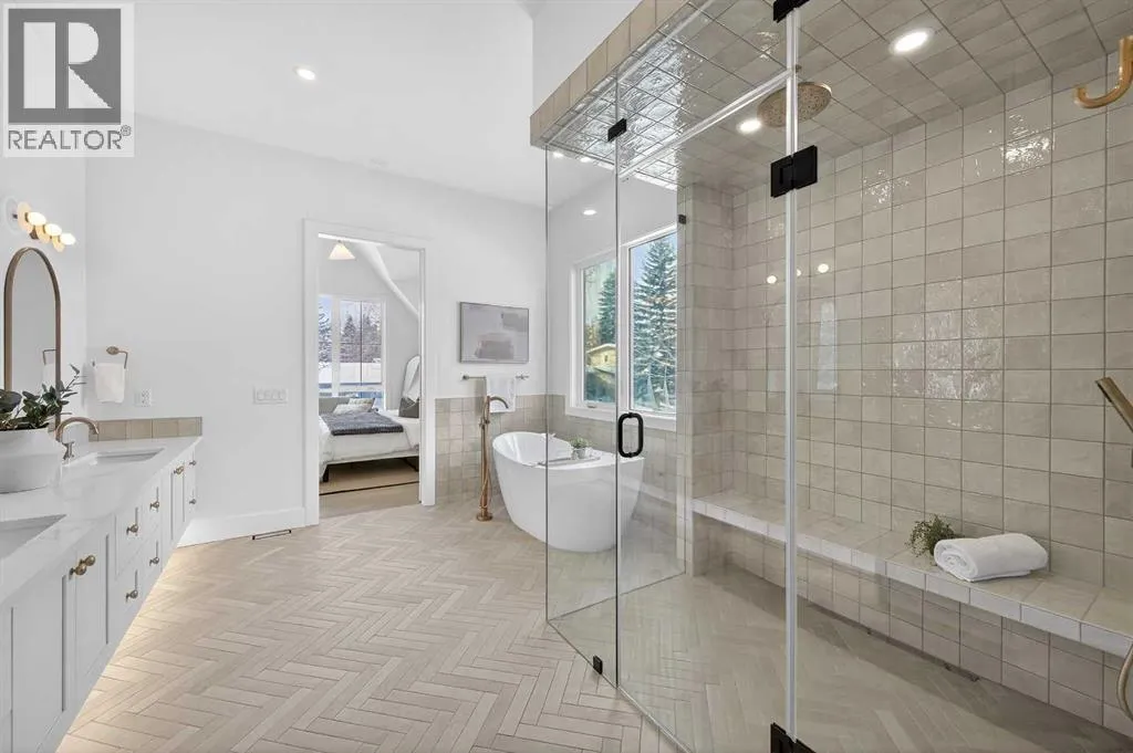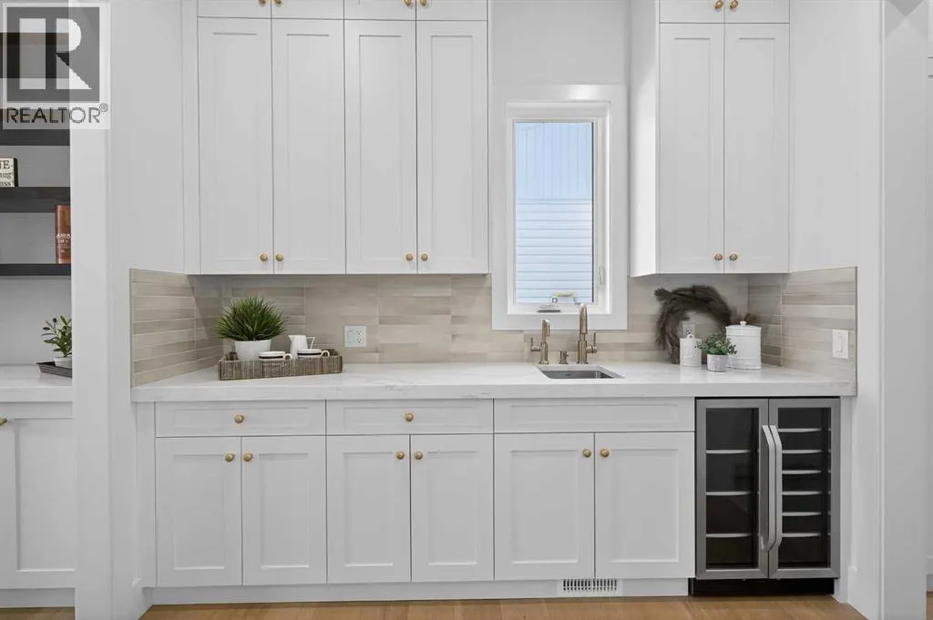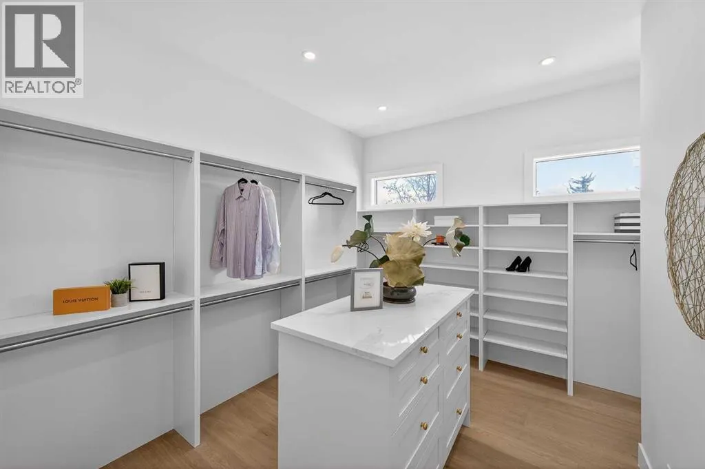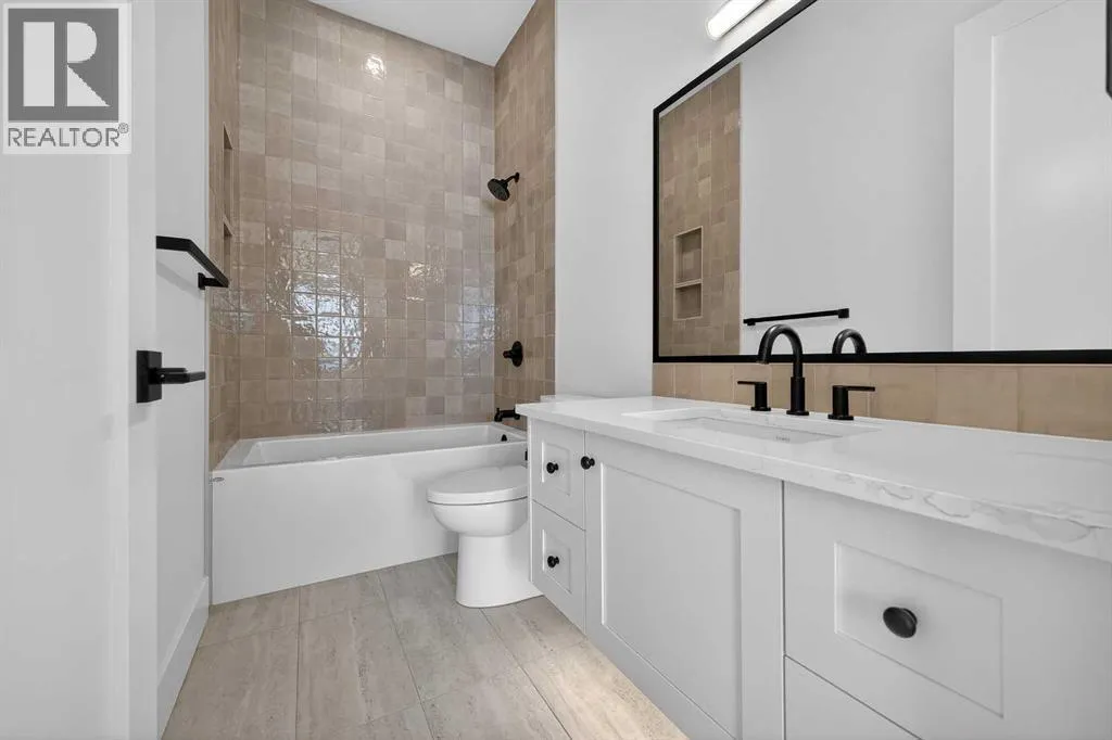 Introducing a stunning new-construction Modern Farmhouse estate that represents a sophisticated blend of transitional luxury and contemporary design. Captivating curb appeal is achieved through a striking neutral palette, a grand arched entryway, and an abundance of oversized, black-framed windows that create a dramatic, light-filled welcome. This residence boasts over 4,900 sq ft of total living space, including more than 3,300 sq ft on the upper levels, featuring 6 spacious bedrooms and 4.5 luxurious bathrooms. Experience true volume with 10-foot ceilings on the main and second levels, complemented by premium engineered hardwood flooring throughout the upper floors. The kitchen is a culinary masterpiece equipped with top-tier appliances, including a built-in Sub-Zero refrigerator and freezer, an 8-burner Wolf gas range, and a matching Wolf hood fan, while a dedicated butlerâs pantry with a sink adds further convenience for entertaining.The upstairs Primary Suite serves as a private sanctuary featuring a vaulted ceiling and a bespoke walk-in closet with a central island. The spa-like ensuite offers the ultimate in comfort with heated floors finished in a stunning herringbone pattern tile. For ultimate family convenience, every secondary bedroom on the second floor also includes its own private washroom and walk-in closet. The expansive lower level significantly extends the living space and features heated floors throughout for year-round comfort. This basement includes three additional spacious bedrooms, a luxurious 5-piece bathroom, and an incredible recreation area complete with a sprawling family room and a full bar, perfectly appointed for movie nights or hosting guests.Engineered for peak efficiency and performance, this home features the newest technology NTI boiler furnace integrated with flexible duct vent technology. The highly functional features continue with a cozy gas fireplace in the living room and a second gas fireplace located outside on the co ncrete patio for elegant outdoor entertaining. The main floor also includes a functional mudroom and a rough-in dog wash area, proving that this house truly has it all. Situated in prestigious Lakeview SW, this estate is surrounded by mature trees and offers phenomenal connectivity, located less than a 15-minute drive from Downtown Calgary. It is minutes away from Mount Royal University and Rockyview General Hospital, with immediate access to North Glenmore Park and elite Golf Clubs. This home sets a new standard for move-in-ready, transitional luxury living. An opportunity not to be missedâcall your favorite realtor today to book a private showing. The lockbox is hanging on the pole directly in front of the house for easy access. (id:27476)