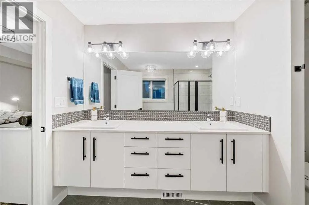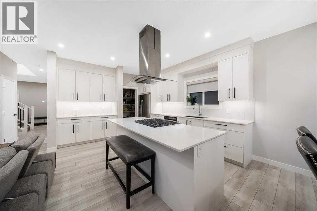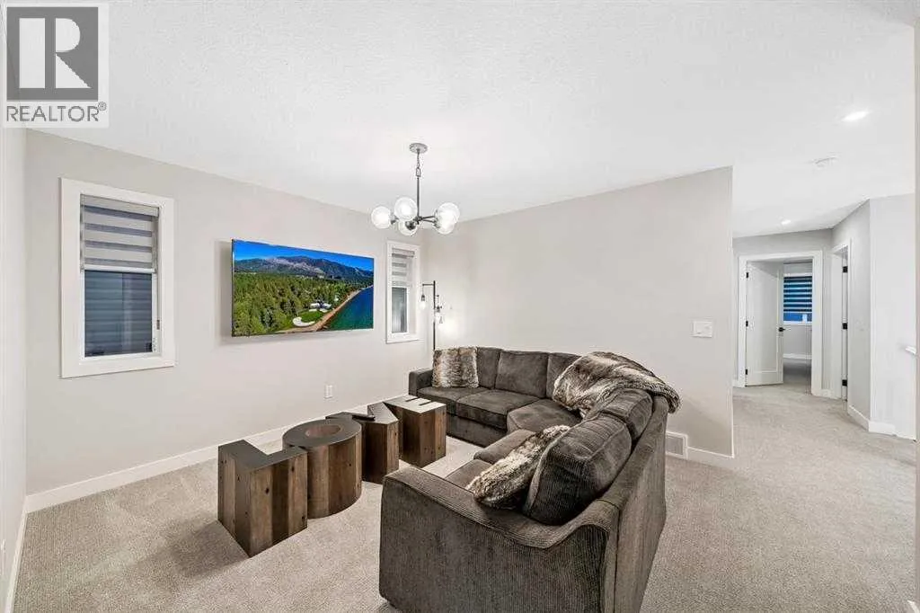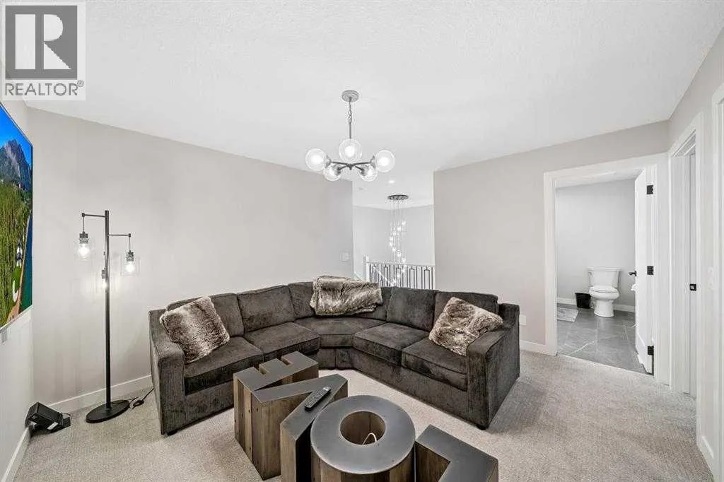 Experience elevated luxury living in the prestigious NW community of Carrington. This stunning Truman-built home offers 2,340 sq. ft. of beautifully designed living space and was purchased with nearly every available builder upgrade, showcasing exceptional quality and thoughtful design throughout. The home also features a desirable south-facing front exposure, allowing for abundant natural light.The open-concept main floor features 9-foot ceilings and large windows that fill the home with natural light. At the heart of the home is a chef-inspired gourmet kitchen complete with a gas range, chimney hood fan, marble backsplash, oversized island, and under-cabinet lightingâperfect for both everyday living and entertaining. The elegant living room is anchored by a gas fireplace, creating a warm and inviting space for family and guests.A rare main-floor bedroom with a full 4-piece bathroom provides outstanding flexibility for guests, multigenerational living, or a private home office.Upstairs youâll find four additional spacious bedrooms, creating a rare 5-bedroom above-grade layout that is incredibly difficult to find without sacrificing living space. This ideal configuration is perfect for large families, multigenerational households, or those needing extra space for offices, hobbies, or fitness rooms. The upper level also features a large bonus room, convenient upper-level laundry, and two full bathrooms, including a luxurious primary retreat with a spa-inspired 5-piece ensuite and walk-in closet.The basement features 9-foot ceilings, offering excellent potential for future development.Outside, the property is fully landscaped and fenced, providing a private and move-in-ready outdoor space.Ideally located just minutes from shopping, grocery stores, restaurants, parks, and everyday amenities, and only a short walk to the nearby pond and scenic pathways, this home perfectly balances luxury living with everyday convenience.Meticulously maintained and in pristine c ondition, this upgraded home is a rare opportunity in one of NW Calgaryâs most desirable communities. (id:27476)