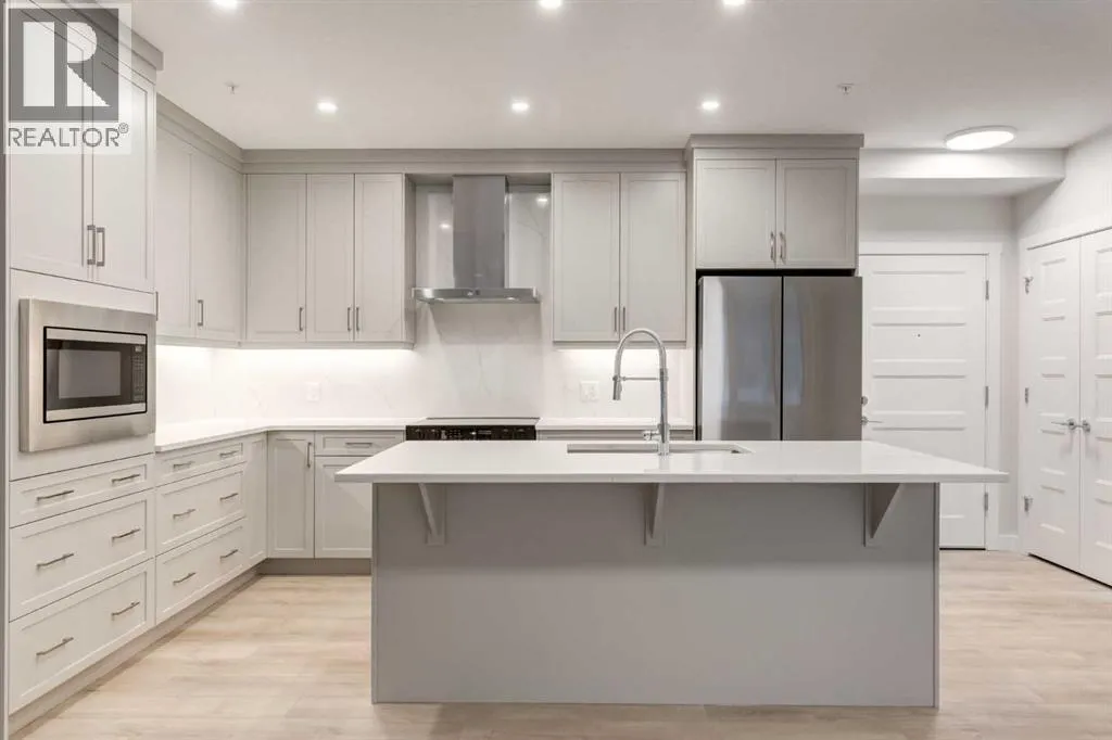 The Whitney is an impeccably designed boutique condo building, situated in the esteemed Aspen Park/Springbank Hill area. Your new home graces one of the finest locations, nestled beside a protected environmental reserve (ravine) that winds through the community, offering extensive recreational walking paths. The Whitney boasts stunning mountain, prairie, and community vistas, with Aspen Landing just a 5-minute stroll away and Downtown a quick 10-minute drive. Your new 2 bed/2 bath LIBERTY unit offers 1187 sq.ft. of architectural measurement (1093 sq.ft. RMS measurement) of living space, inclusive of en-suite laundry, open concept living, a large patio, air-conditioning, titled underground parking (additional stall is available for purchase), walk-in separate storage unit, luxury vinyl plank flooring, quartz counters, custom cabinetry, designer tile, and stainless appliances. Developed by Cove Properties, one of Calgaryâs most respected multifamily builders known for their dedication to quality craftsmanship. An annual HOA fee is anticipated, though not yet finalized. Please note that all photos shown are from Cove Properties' previous show suites and are intended to illustrate the level of interior finishes that can be expected at The Whitney. BUILDING IS COMPLETE AND MOVE IN READY! This is a limited opportunity to own in one of Calgaryâs most desirable southwest communities. Contact your agent today to arrange a private viewing of the unit. (id:27476)