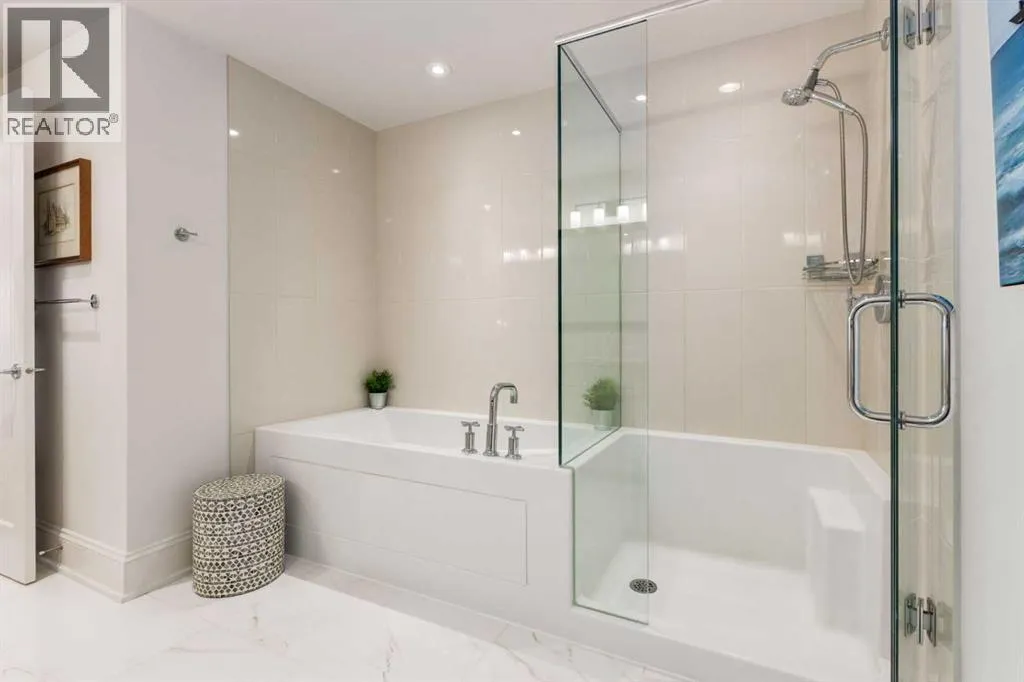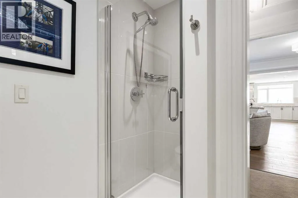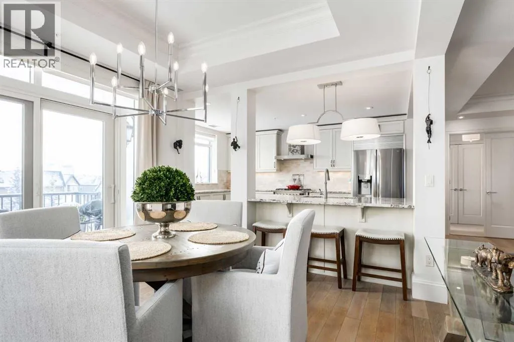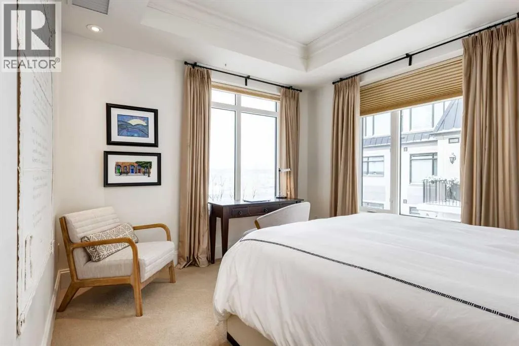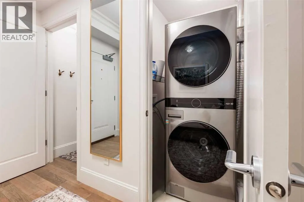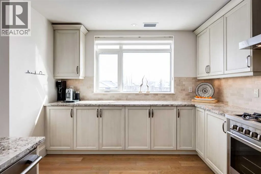 For some, luxury is an occasional indulgence. For others, it is a way of life. If every day luxury & refined living are what you desire, look no further than this outstanding CORNER suite at Champagne in Quarry Park. Offering 1631 SF of impeccably curated living space, with 9-foot ceilings that are flooded with natural light & serene tree top views. Every detail has been thoughtfully considered & the spacious floor plan is sure to delight. A gracious front entrance welcomes you into the suite, & offers a walk-in closet and custom built in cabinetry for your storage needs. The spacious living area with hardwood flooring throughout is sure to delight - a cozy fireplace surrounded by built-ins anchors the living room, sunny & bright dining area with windows on 2 sides is ready to host your family gatherings and provides patio door access to the east facing balcony. The show-stopping kitchen is a chefs dream â expansive island & granite counters, full tile backsplash, luxurious stainless steel appliances including a gas stove & new LG fridge with water/ice dispenser, and an abundance of cabinets providing ample storage including wire pull out racks â so convenient! The serene primary retreat is generously proportioned & offers space for a king-sized bedroom suite & sitting area, while the 5 piece ensuite bath delivers a spa-like experience worthy of a luxury hotel â featuring a relaxing soaking tub, separate shower, granite counters & dual sinks. The walk in closet features a new custom closet system. Second bedroom, equally well-appointed, provides dual aspect windows with beautiful river views & a 3 piece ensuite bath. Additional features include central air conditioning, coffered ceilings, estate millwork, solid core doors, new LG wash/dryer tower with steam function, new composite decking installed on the balcony, new carpet in both bedrooms, Hunter Douglas blinds throughout (black out blinds in the bedrooms), custom drapery in this non-smoking, pet-free home. TWO t itled, side by side underground parking stalls are included, located very close to the elevator, a rare & valuable convenience. Also included is a titled storage locker on the same level as the parking spots. Youâll appreciate the peace of mind that comes with Champagneâs reputation for exceptional maintenance & inherently quiet concrete construction. Additional building features include 2 car wash bays, bicycle storage, plenty of visitor parking & a peaceful courtyard. Plus itâs pet friending â 2 dogs or cats or combo of both, with board approval. The location canât be beat! Walk to Carburn Park, The Market at Quarry Park offers great amenities including Starbucks, The Park and Original Joeâs restaurants & Co-Op grocery, the Remington YMCA is just around the corner and of course the extensive river pathway system is just outside your door. Easy access to major traffic routes and numerous SE Calgary amenities. This unit shows like new and must be viewed in person to be fully appreciated! (id:27476)