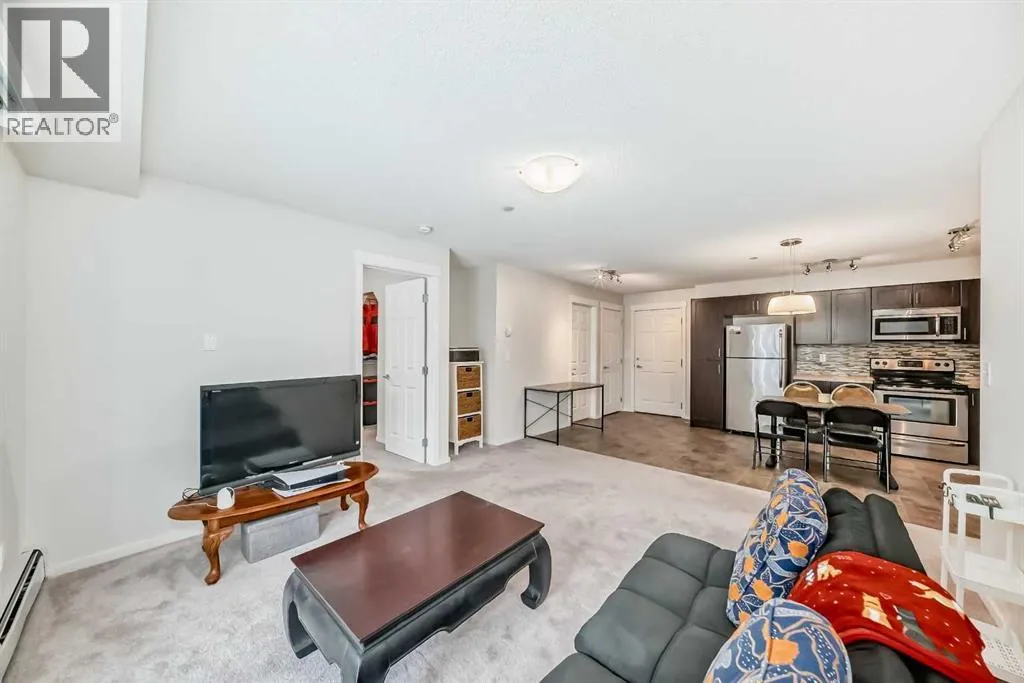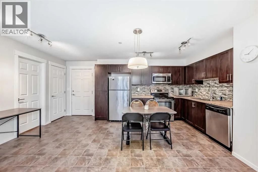 Locates on the third floor, good starter home or investment property, walking distance to school and playground, welcome to this well kept apartment unit in convenient Copperfield. It features titled underground parking and assigned storage locker. It has 2 good size bedrooms, master bedroom with 4 pieces ensuite, large and sunny living room, sliding door to large balcony with BBQ gas hood up, open kitchen and spacious dining area, and in suite laundry. It closes to school, playground, public transit, shopping, and easy access to major roads. ** 4308 279 Copperpond Common SE ** (id:27476)