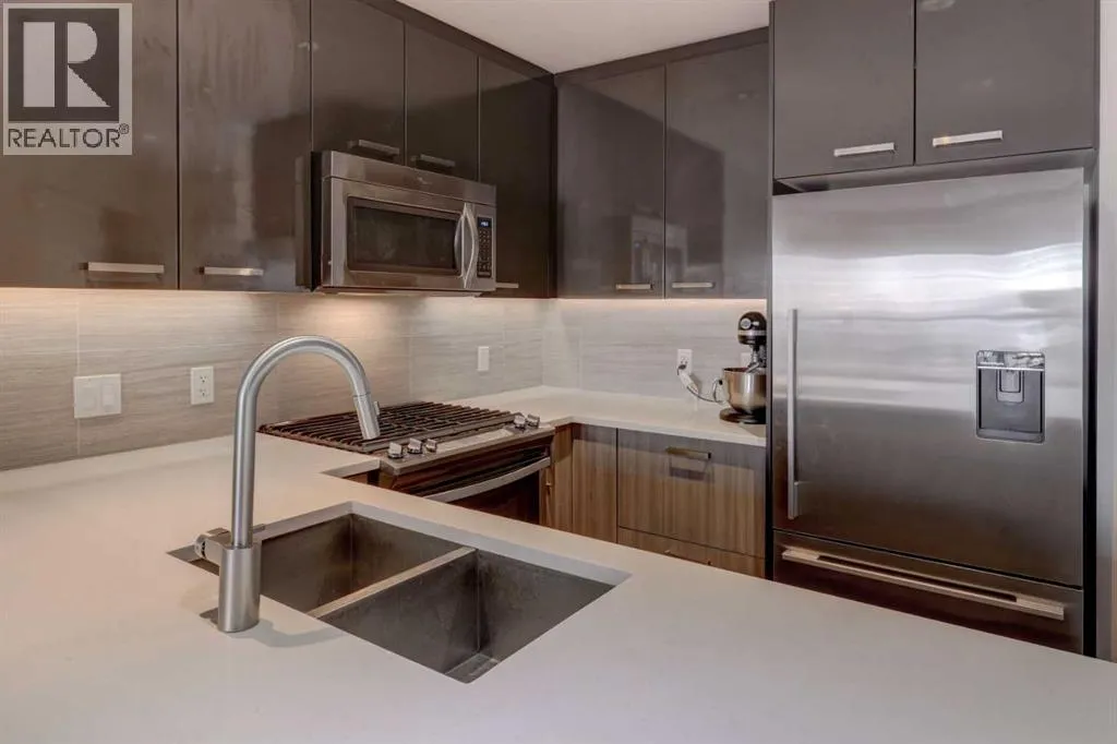 Experience the ultimate urban lifestyle in this exceptional TOP FLOOR BRIDGELAND condo, featuring 1 bedroom, 1 bathroom, insuite laundry and a versatile DEN/FLEX SPACE - perfect for modern living. Welcome to #311, 510 Edmonton Trail NE, a stylish condo in the vibrant community of Bridgeland. This modern home features an open-concept layout with large windows that fill the space with natural light. The contemporary kitchen boasts quartz countertops, a spacious island, and stainless steel appliances, seamlessly flowing into the cozy living area. Step out onto your private patio, an ideal spot for relaxing or entertaining. The generously sized bedroom includes a walk-through closet that leads to a well-appointed bathroom, offering both comfort and functionality. This condo also offers HEATED, underground TITLED PARKING, convenient visitor parking within the parkade, and an assigned STORAGE LOCKER for larger or seasonal items. Experience an active lifestyle in this professionally managed building, which boasts a FITNESS GYM, secure BIKE STORAGE, and a tranquil private courtyard. With accessible elevators, you'll enjoy seamless movement throughout the building and can easily explore Bridgelandâs vibrant, growing community, known for its pedestrian-friendly streets and lush green spaces. Take a stroll or bike ride along the scenic Bow River pathway and love being mere minutes from trendy cafes, remarkable restaurants, and chic shops. Donât miss the opportunity to make this beautiful home your ownâschedule a viewing today! (id:27476)