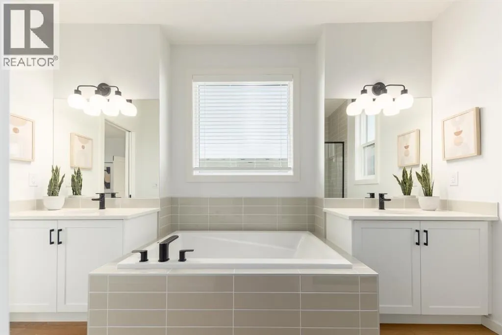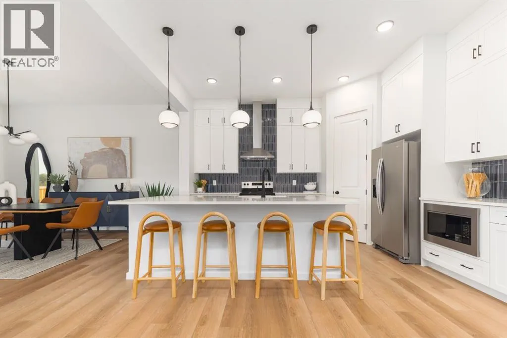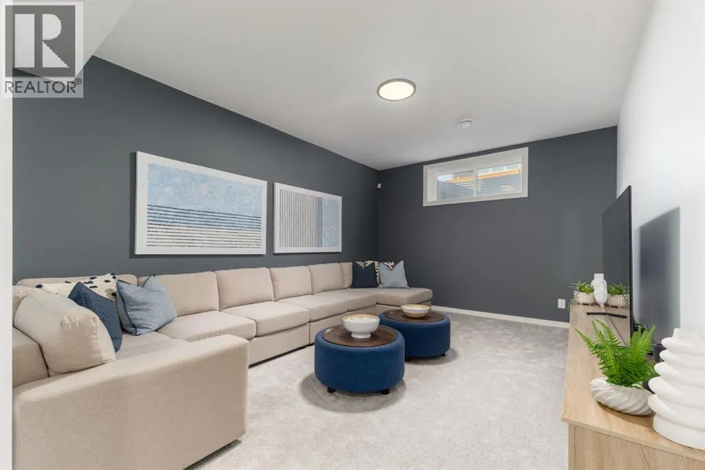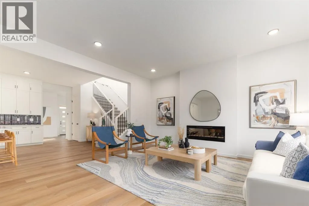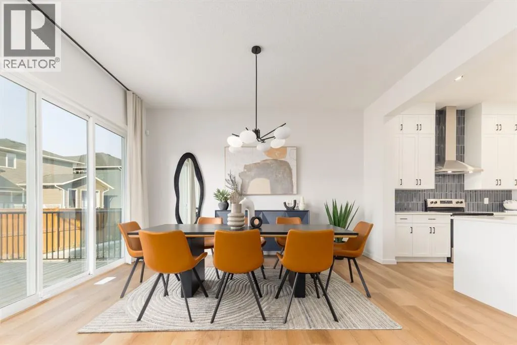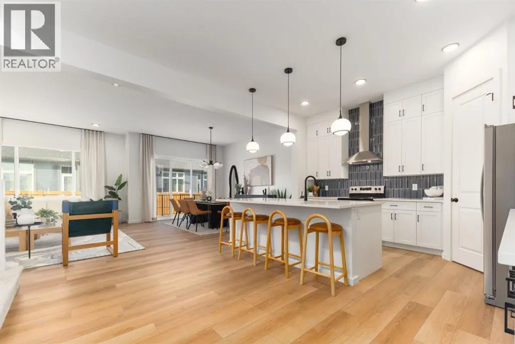 This former Show Home exudes grandeur in every detail, with meticulously chosen materials curated to create an atmosphere that captivates from the moment you enter. Inspired by modern Scandinavian design, it embraces cozy hygge vibes while offering the space and functionality families desire today. The main floor welcomes you with soaring 10-foot ceilings and an airy, open layout that feels both warm and impressive. At its heart is a beautifully upgraded kitchen, finished to the ceiling with crisp white cabinetry, quartz countertops, a brand-new stainless steel appliance package, and a spacious walk-in pantry. The open-concept design flows seamlessly into the living room, where a modern fireplace creates both a stylish focal point and a sense of comfort. A large dining area overlooks the private backyard, with glimpses of the rolling hills beyond. Completing this level is a flexible room that can adapt to your needs â whether as a home office, guest bedroom, mudroom, or playroom. Upstairs, 9-foot ceilings and expansive windows flood the home with natural light. Double doors lead to the serene primary bedroom, a true retreat featuring a spa-inspired ensuite with dual vanities, a soaker tub, and a generous walk-in closet. In the opposite wing, two additional bedrooms â each with their own walk-in closet â share a well-appointed family bath. A convenient laundry room is thoughtfully designed to keep life organized. At the center of it all sits a dramatic bonus room with a vaulted ceiling and striking blue feature wall, perfectly suited for movie nights, games, or quiet relaxation while also offering a natural separation between the primary suite and secondary bedrooms. The lower level continues the sense of openness with 9-foot ceilings and a beautifully executed side entrance, providing the a space for in-laws. A dedicated wellness room and a spacious recreation area enhance the lifestyle appeal, while an additional bedroom and full bathroom make this level ideal for guests, older children, or extended family. Outside, mountain-inspired architecture with timber accents blends seamlessly into the surroundings. With full landscaping and a finished deck already complete, this turnkey home is ready to be enjoyed from the moment you arrive. Nestled in Southwest Calgary, the community of Sirocco offers everything from scenic golf course views to vibrant local amenities and over 5 km of connected pathways. Honoring its heritage while embracing modern convenience, Sirocco is a place where rolling foothills and nearby trails bring the peace of country living within easy reach of the city. Don't miss on experiencing this spectacular well thought out home. (id:27476)