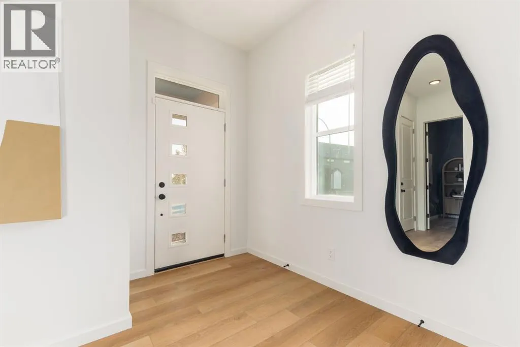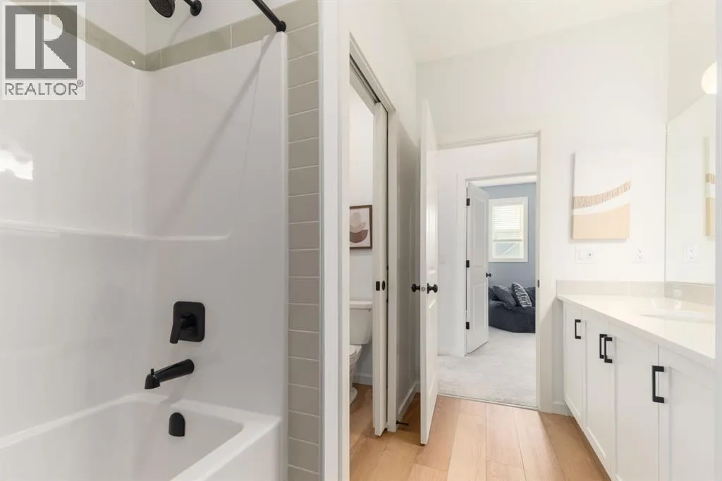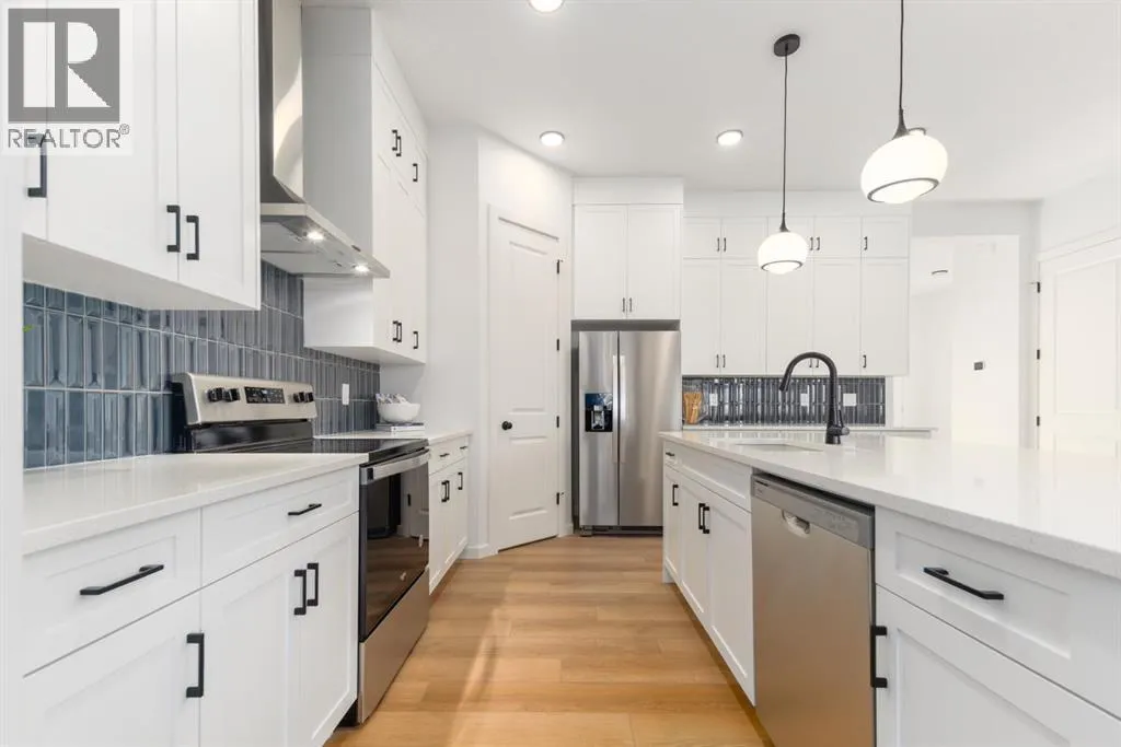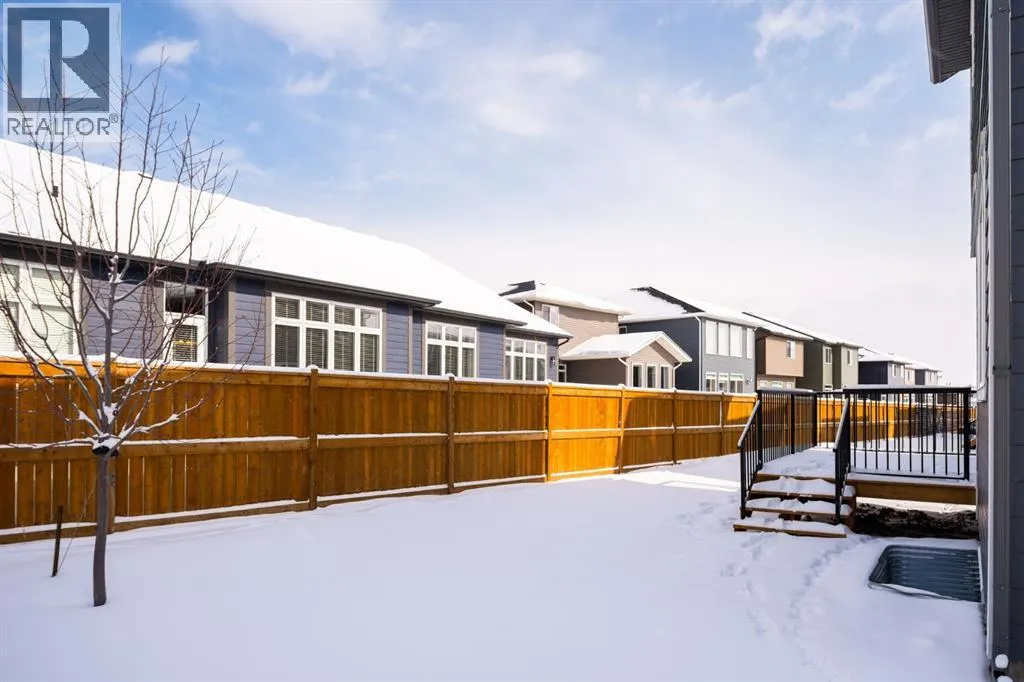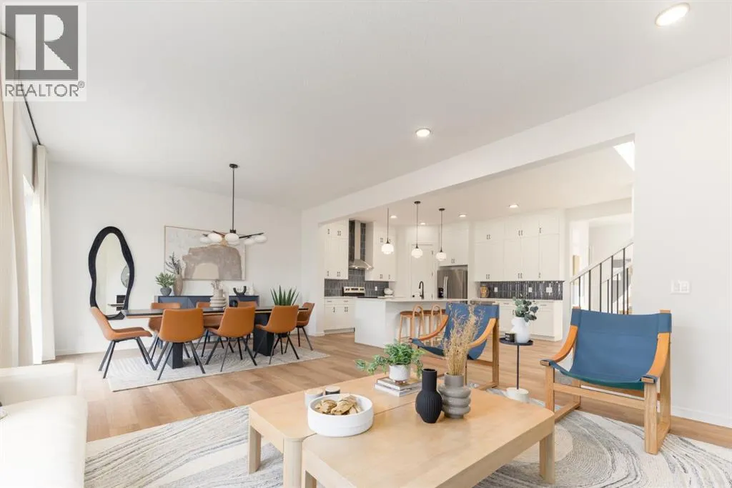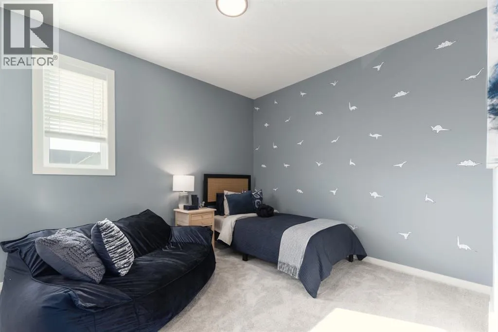 This former Show Home exudes grandeur in every detail, with meticulously chosen materials curated to create an atmosphere that captivates from the moment you enter. Inspired by modern Scandinavian design, it embraces cozy hygge vibes while offering the space and functionality families desire today. The main floor welcomes you with soaring 10-foot ceilings and an airy, open layout that feels both warm and impressive. At its heart is a beautifully upgraded kitchen, finished to the ceiling with crisp white cabinetry, quartz countertops, a brand-new stainless steel appliance package, and a spacious walk-in pantry. The open-concept design flows seamlessly into the living room, where a modern fireplace creates both a stylish focal point and a sense of comfort. A large dining area overlooks the private backyard, with glimpses of the rolling hills beyond. Completing this level is a flexible room that can adapt to your needs â whether as a home office, guest bedroom, mudroom, or playroom. Upstairs, 9-foot ceilings and expansive windows flood the home with natural light. Double doors lead to the serene primary bedroom, a true retreat featuring a spa-inspired ensuite with dual vanities, a soaker tub, and a generous walk-in closet. In the opposite wing, two additional bedrooms â each with their own walk-in closet â share a well-appointed family bath. A convenient laundry room is thoughtfully designed to keep life organized. At the center of it all sits a dramatic bonus room with a vaulted ceiling and striking blue feature wall, perfectly suited for movie nights, games, or quiet relaxation while also offering a natural separation between the primary suite and secondary bedrooms. The lower level continues the sense of openness with 9-foot ceilings and a beautifully executed side entrance, providing the a space for in-laws. A dedicated wellness room and a spacious recreation area enhance the lifestyle appeal, while an additional bedroom and full bathroom make this level ideal for guests, older children, or extended family. Outside, mountain-inspired architecture with timber accents blends seamlessly into the surroundings. With full landscaping and a finished deck already complete, this turnkey home is ready to be enjoyed from the moment you arrive. Nestled in Southwest Calgary, the community of Sirocco offers everything from scenic golf course views to vibrant local amenities and over 5 km of connected pathways. Honoring its heritage while embracing modern convenience, Sirocco is a place where rolling foothills and nearby trails bring the peace of country living within easy reach of the city. Don't miss on experiencing this spectacular well thought out home. (id:27476)