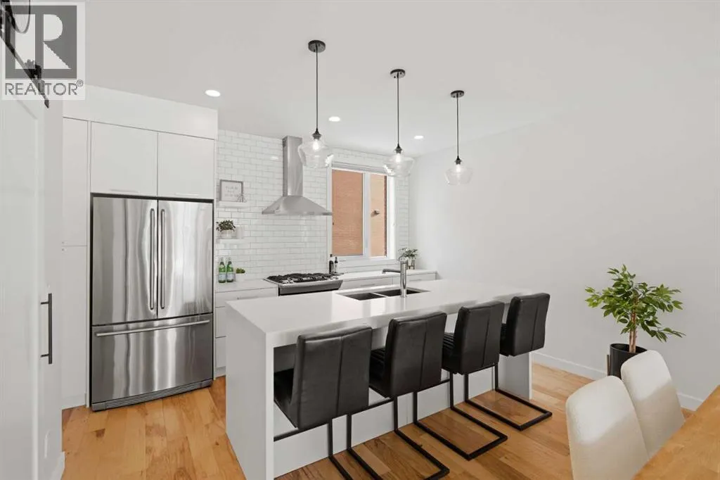 **OPEN HOUSE: Sat. March 21 from 1:00pm to 3:00pm** | BOW RIVER VIEWS | ROOFTOP PATIO | 2-BED | 2.5 BATH | DOUBLE ATTACHED GARAGE | LOW CONDO FEES | DESIGNER UPGRADES | PRIME INNER-CITY LOCATION.** Breathtaking views of the Bow River define this 1,676 sq ft townhome in The Henry, one of Parkdaleâs most sought-after modern brownstones. The bright open main level captures river and pathway views through large front windows and features a designer kitchen with full-height cabinetry, quartz counters, stainless steel appliances and a large island that connects seamlessly to the dining and living areas. Upstairs, both bedrooms include walk-in closets and private ensuites, including a primary suite overlooking the river. The private rooftop patio with sunny southwest exposure creates an incredible outdoor space for relaxing or entertaining while taking in the Bow River setting. The entry level offers a versatile flex space ideal for a home office or gym, plus a double attached garage with additional storage. Located directly across from the Bow River pathway system and minutes to Foothills Hospital, the University District and downtown. Opportunities to own a river-facing brownstone with a rooftop patio in The Henry rarely become available. Book your private showing today. (id:27476)