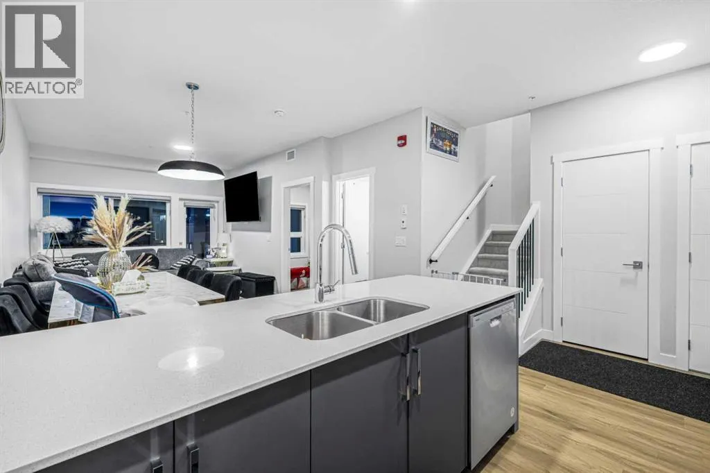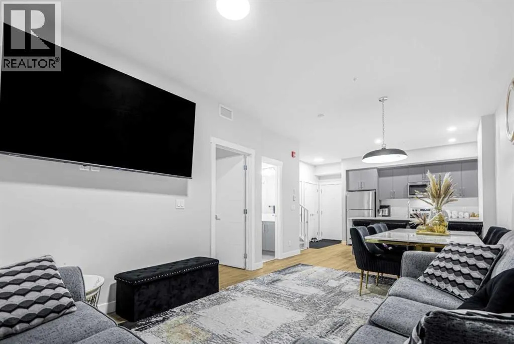 Welcome to Sky 151, ideally located just off Country Hills in the desirable Skyview Ranch community of Calgary NE. The building is located near schools, shopping, airport and next to Calgary transit stop. This open concept unit has modern finishes with quartz counters, LVP flooring, spindle railing, in-unit laundry and has access from two levels. The main floor is perfect for entertaining family and friends with a chef inspired kitchen, grand living area, a bedroom with connecting bathroom, and access to balcony. Upstairs you find a loft, a primary bedroom with walk-in closed and ensuite with standing shower. Note - there is a separate access to hallway from the 2nd floor. Tons of natural light throughout the property. This is one of a kind building which offers two level condo living and plenty of outdoor space. There is plenty of room for a growing family to consider this as their home. There is one underground heated parking that comes with the unit. Call today to book your appointment. (id:27476)