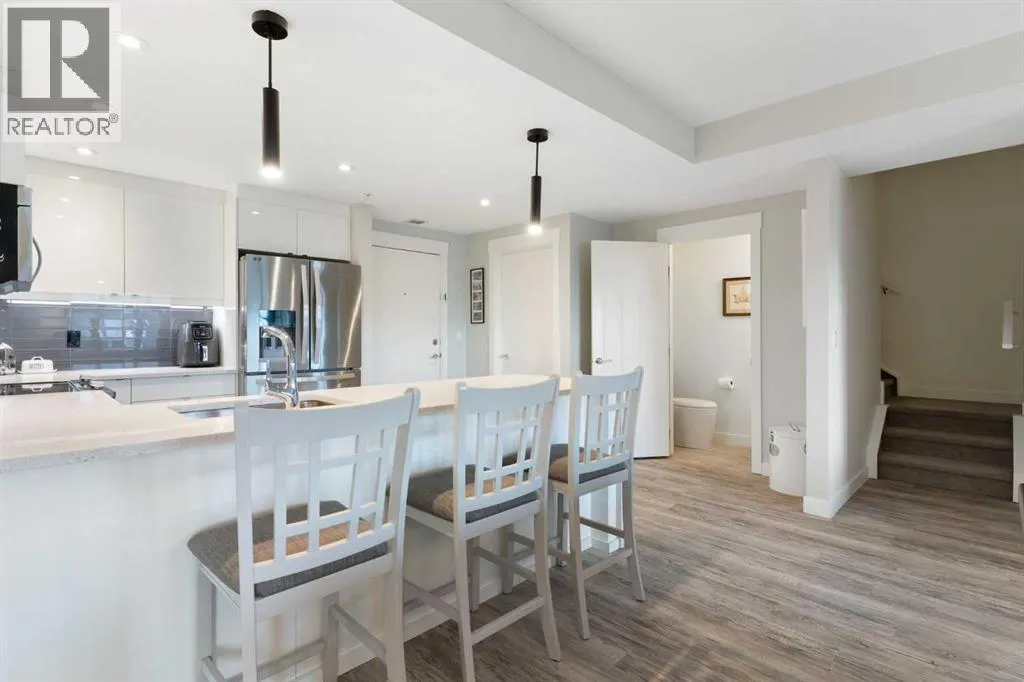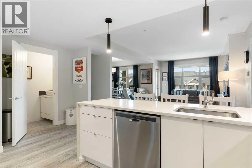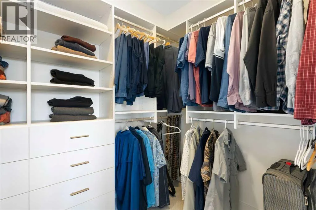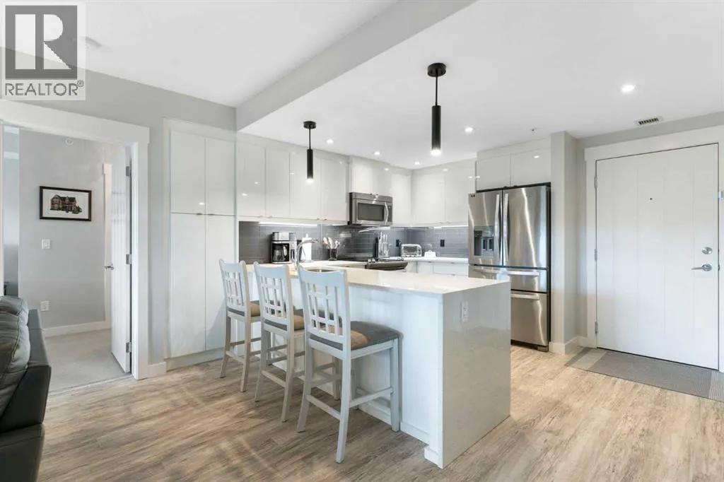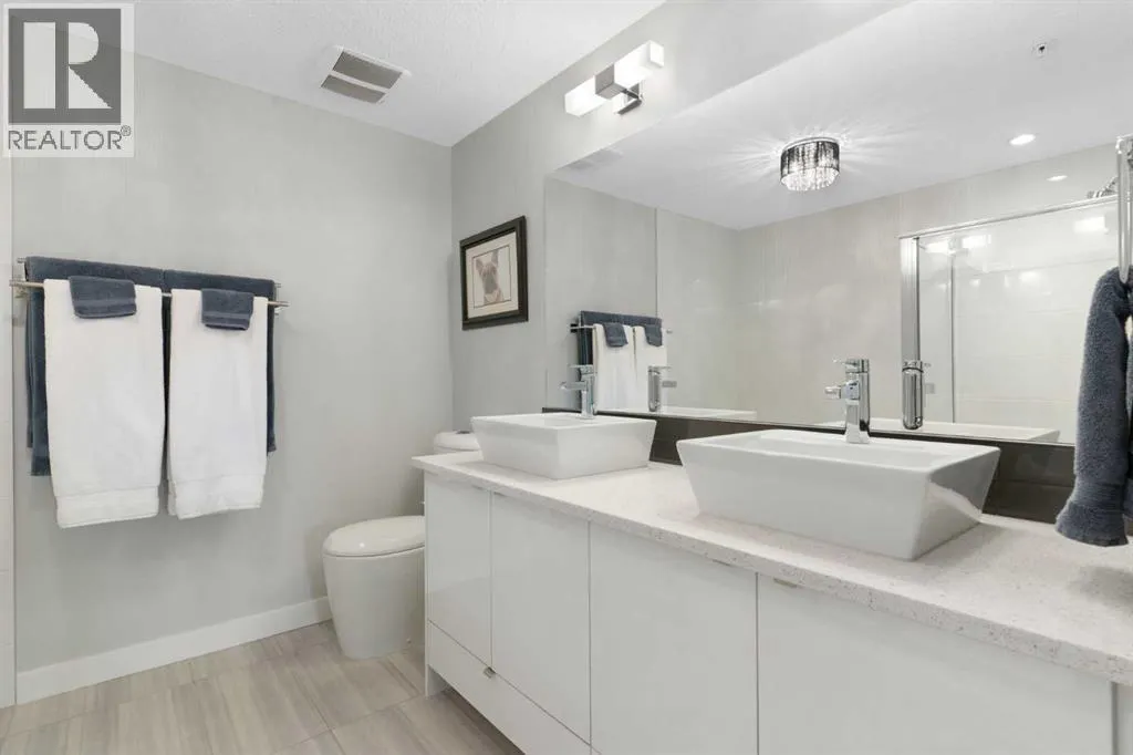 Welcome to Unit 227 at Valmont at Aspen Stone in the desirable community of Aspen Woods.This very well-maintained 1,434 sq ft unit offers a functional and comfortable layout over two levels, featuring carpet and vinyl plank flooring, updated lighting, and an abundance of natural light throughout the home.The main floor features a spacious kitchen that opens to the living and dining areas, creating an inviting space for everyday living and entertaining. The kitchen is finished with quartz countertops, quality appliances, and ample cabinetry, with additional drawers added for even more practical storage. The living room includes built-in shelving and cabinetry, and the balcony is equipped with a phantom screen, allowing fresh air to flow through while maintaining comfort. The dining area is generously sized and well suited for both everyday meals and gatherings.Also on the main floor is the first of two primary bedrooms. This room features a walk-through closet with built-in closet organizers leading to a private ensuite complete with a walk-in shower, soaker tub, and dual vanities. A powder room and a laundry room with additional storage complete the main level.The upper floor is dedicated to a second spacious primary suite, offering added privacy and flexibility. This level includes a large walk-in closet with built-in closet organizers and a well-appointed ensuite featuring a soaker tub and walk-in shower.Residents of Valmont at Aspen Stone enjoy a well-managed building with secure entry, a fitness room, bicycle storage, and a large storage area. The property is ideally located close to walking trails, shopping, and everyday amenities in Calgary.This unit also includes two titled parking stalls, both equipped with overhead heaters. (id:27476)