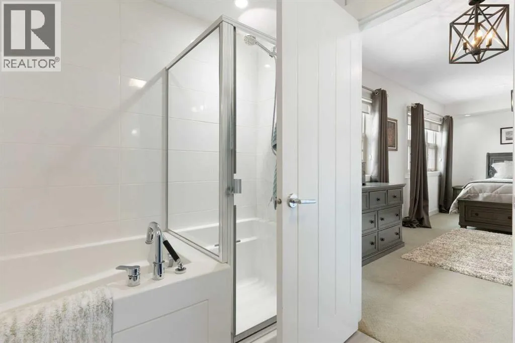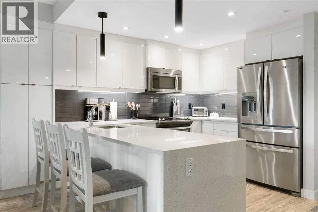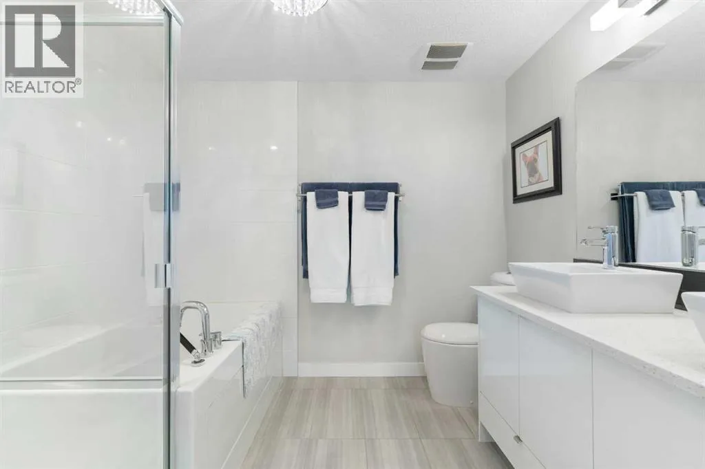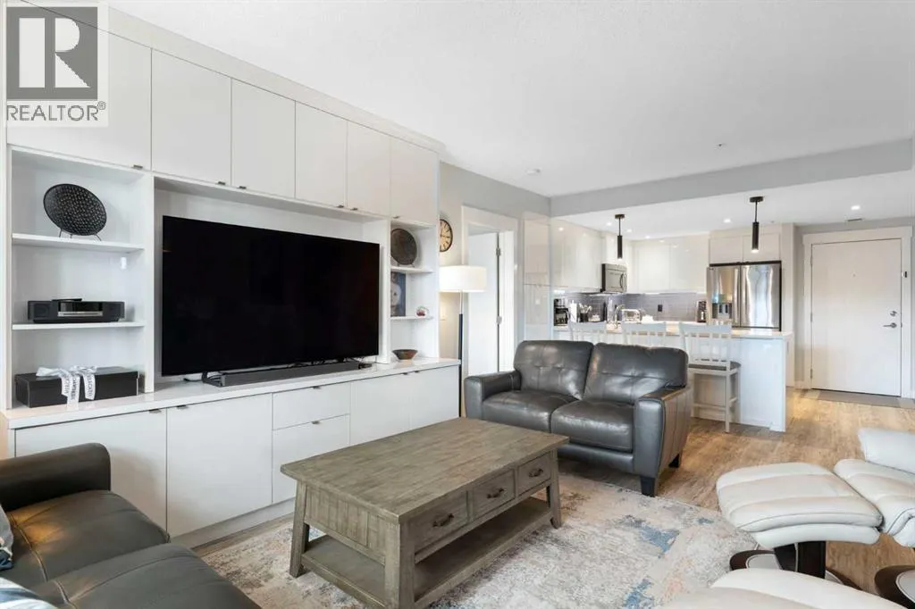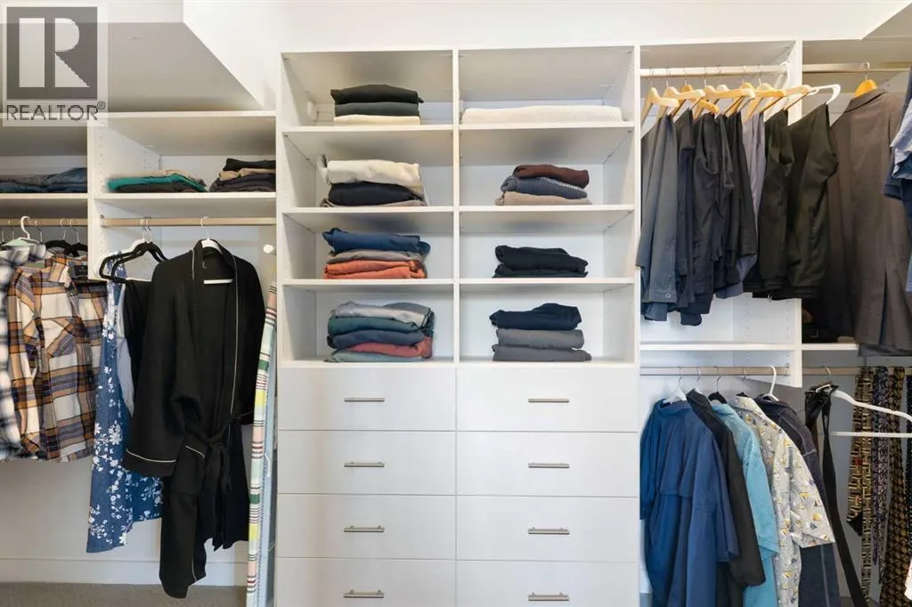 Welcome to Unit 227 at Valmont at Aspen Stone in the desirable community of Aspen Woods.This very well-maintained 1,434 sq ft unit offers a functional and comfortable layout over two levels, featuring carpet and vinyl plank flooring, updated lighting, and an abundance of natural light throughout the home.The main floor features a spacious kitchen that opens to the living and dining areas, creating an inviting space for everyday living and entertaining. The kitchen is finished with quartz countertops, quality appliances, and ample cabinetry, with additional drawers added for even more practical storage. The living room includes built-in shelving and cabinetry, and the balcony is equipped with a phantom screen, allowing fresh air to flow through while maintaining comfort. The dining area is generously sized and well suited for both everyday meals and gatherings.Also on the main floor is the first of two primary bedrooms. This room features a walk-through closet with built-in closet organizers leading to a private ensuite complete with a walk-in shower, soaker tub, and dual vanities. A powder room and a laundry room with additional storage complete the main level.The upper floor is dedicated to a second spacious primary suite, offering added privacy and flexibility. This level includes a large walk-in closet with built-in closet organizers and a well-appointed ensuite featuring a soaker tub and walk-in shower.Residents of Valmont at Aspen Stone enjoy a well-managed building with secure entry, a fitness room, bicycle storage, and a large storage area. The property is ideally located close to walking trails, shopping, and everyday amenities in Calgary.This unit also includes two titled parking stalls, both equipped with overhead heaters. (id:27476)