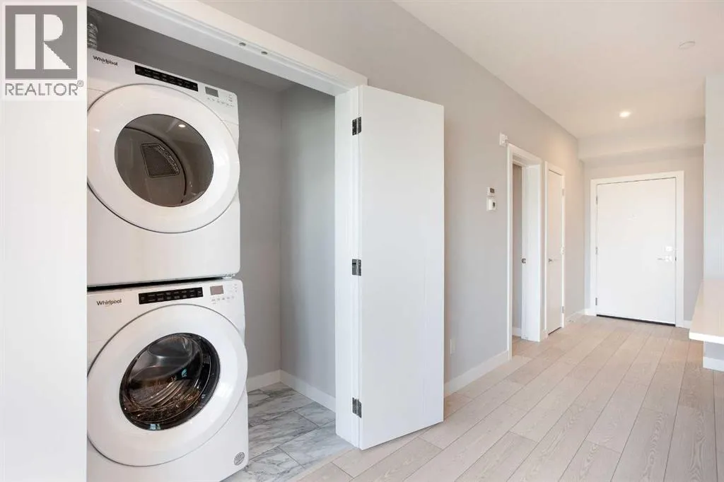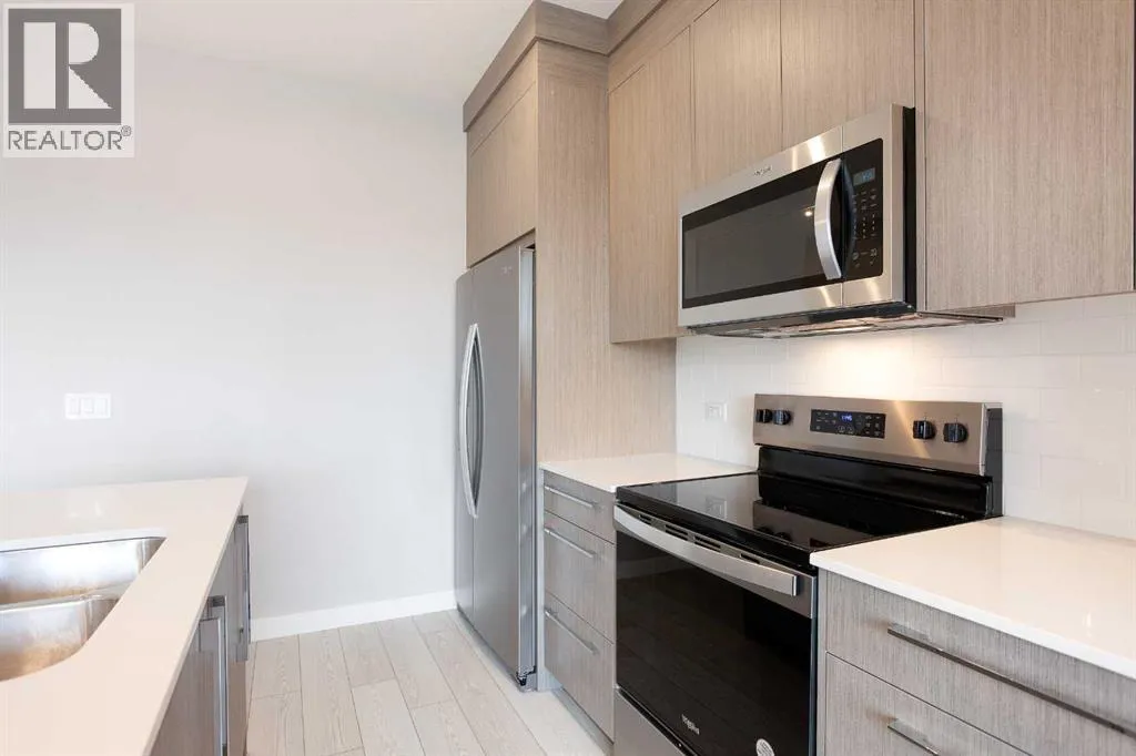Welcome home to an exceptional residence where modern elegance meets everyday functionality. This sophisticated two-bedroom, two-bathroom home in the established community of Skyview Ranch offers a rare and highly coveted feature: two titled underground parking stalls. From the moment you step inside, you are greeted by an expansive, sun-drenched layout characterized by high-end luxury vinyl plank flooring and a curated designer lighting package. The living area is framed by oversized windows that invite an abundance of natural light, creating a warm and airy atmosphere throughout the day. At the heart of the home is a chef-inspired kitchen that balances style with utility. It boasts premium stainless-steel appliances, sleek quartz countertops, and full-height soft-close cabinetry that provides ample storage. The impressive central island, complete with a breakfast bar, serves as a natural gathering spot for morning coffee or evening entertaining. The primary suite acts as a private retreat, featuring a clever walk-through closet that leads into a pristine three-piece ensuite. A spacious second bedroom sits adjacent to the full four-piece main bathroom, offering versatility for guests or a home office. Practicality is woven into the design with convenient in-suite laundry and a private covered balconyâthe perfect sanctuary to unwind and enjoy the fresh air. Perfectly positioned just steps from the vibrant shopping and dining at Sky Point Landing, this home places urban convenience at your doorstep. With nearby parks, playgrounds, and effortless access to Stoney and Deerfoot Trails, Skyview North offers an unparalleled lifestyle of comfort and connectivity. A unit of this calibre will not last long, so book your Showing today! (id:27476)