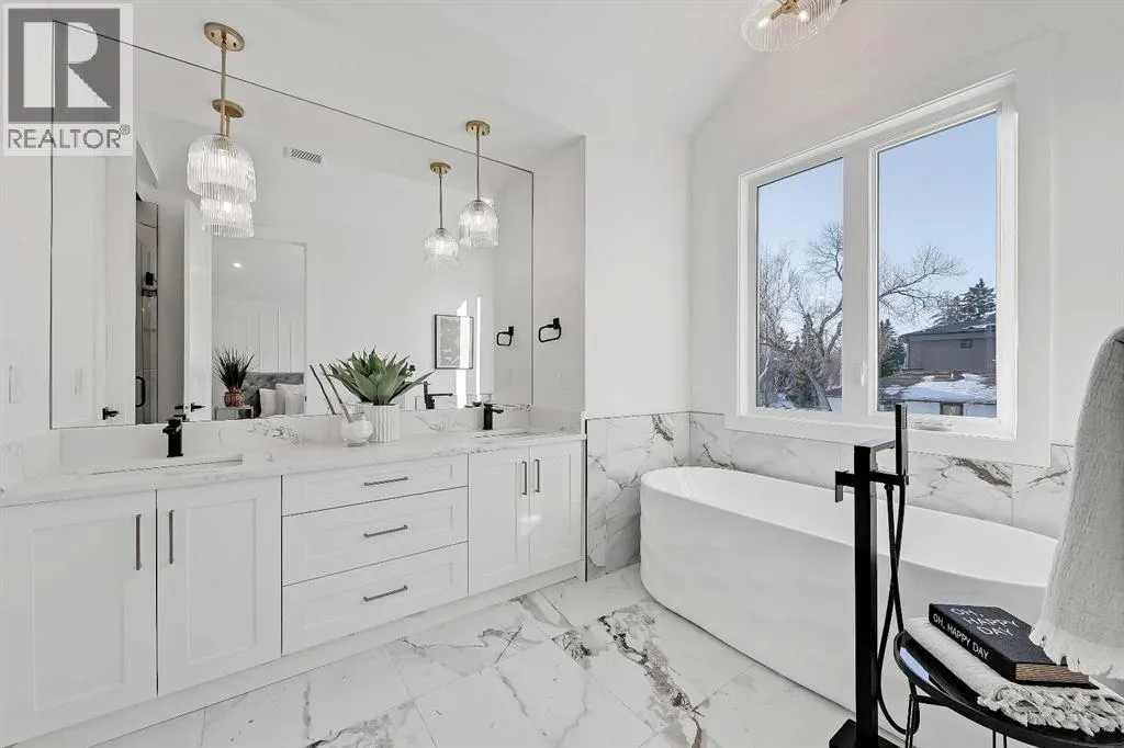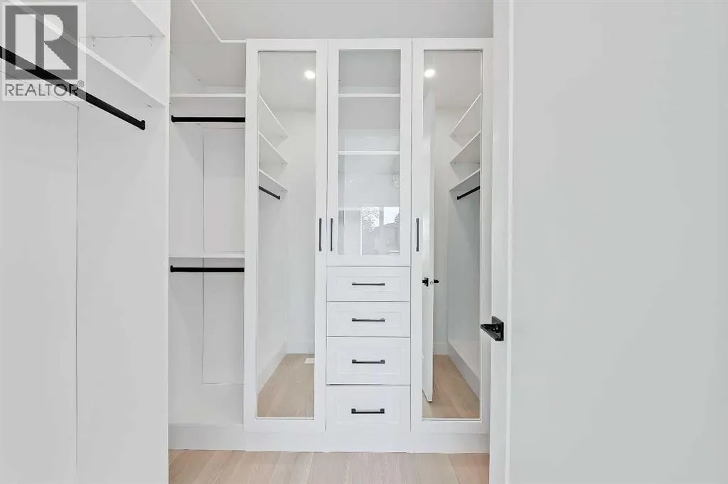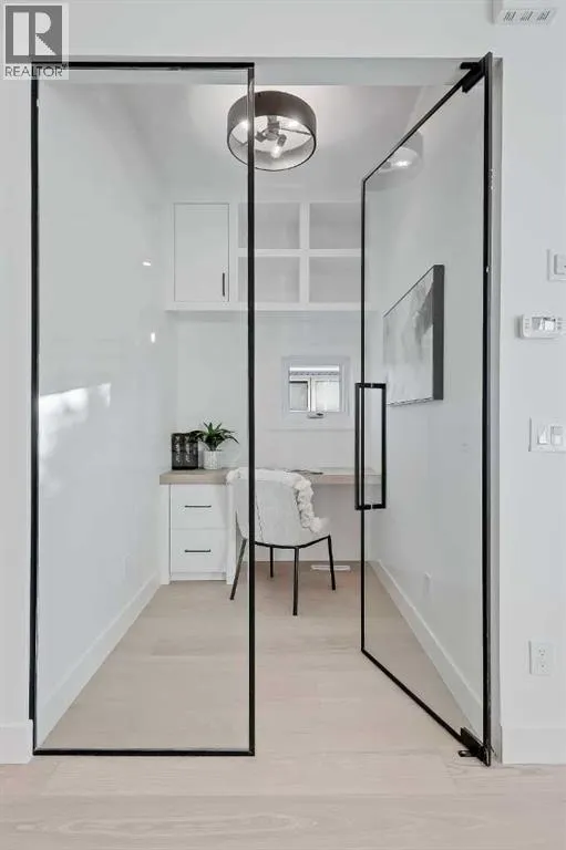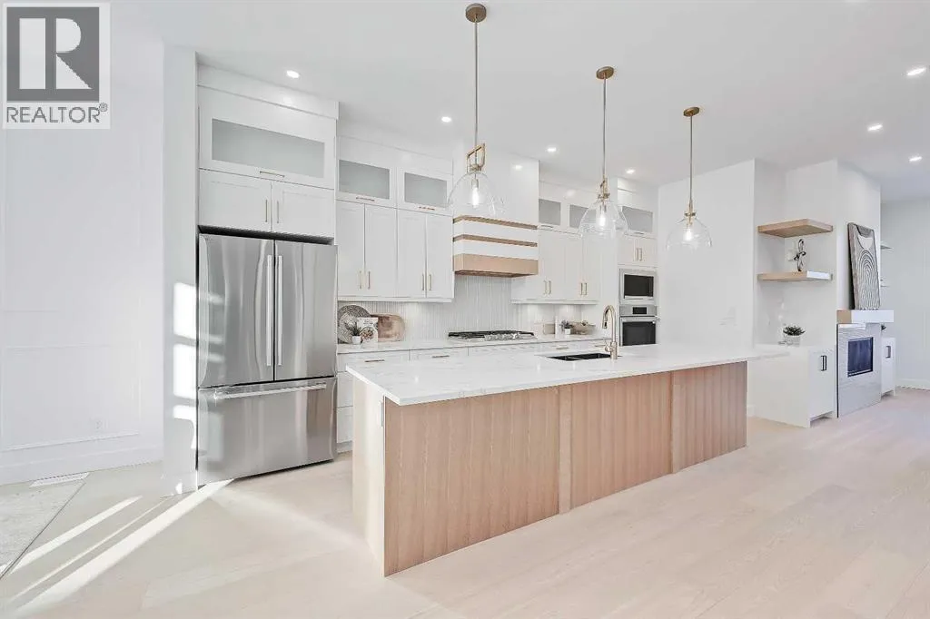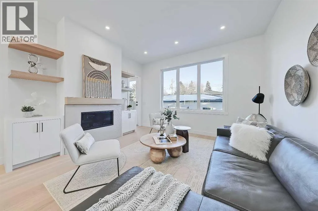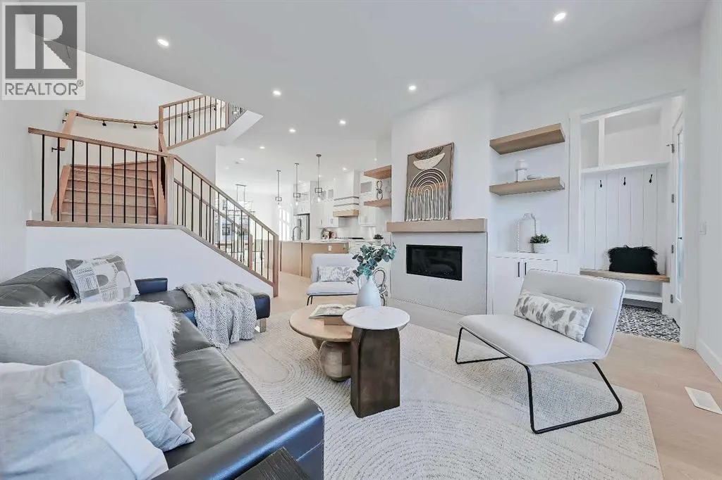 Welcome to this beautifully finished semi-detached infill in Glenbrook, offering a perfect blend of modern design, functional layout, and income potential. Featuring a city-approved 2-bedroom legal basement suite with private entrance, this home is ideal for homeowners seeking flexibility or investors looking for added value.The main floor showcases a bright and open layout with a front dining area surrounded by large windows, filling the space with natural light. The central kitchen is thoughtfully designed with ceiling-height cabinetry, quartz countertops, a large island with seating, and modern lighting. A standout feature is the glassed-in office with a built-in workstation, perfect for working from home or a quiet study space. At the rear, the living room features a sleek fireplace with built-in shelving and oversized windows overlooking the backyard. A convenient mudroom with built-in storage connects to the yard, offering a practical everyday entry.Upstairs, the spacious primary suite features vaulted ceilings, a walk-in closet, and a spa-inspired ensuite complete with dual sinks, glass shower, and freestanding tub. Two additional bedrooms, a full bathroom, a dedicated laundry room with sink, and a versatile bonus room perfect for a flex space for the kids or additional office space complete the upper level.The legal basement suite offers its own private entrance, full kitchen with quartz counters and stainless steel appliances, separate laundry area, a 4-piece bath, and two well-sized bedrooms, including one with a walk-in closetâperfect for extended family or rental use.Outside, enjoy a fenced backyard, concrete patio, and double detached garage with alley access.Located in the heart of Glenbrook, this home is close to schools, parks, shopping, and amenities, including Westhills and Signal Hill. Easy access to Sarcee Trail and Glenmore Trail makes commuting convenient. **Photos from show suite; finishes may vary.** (id:27476)
