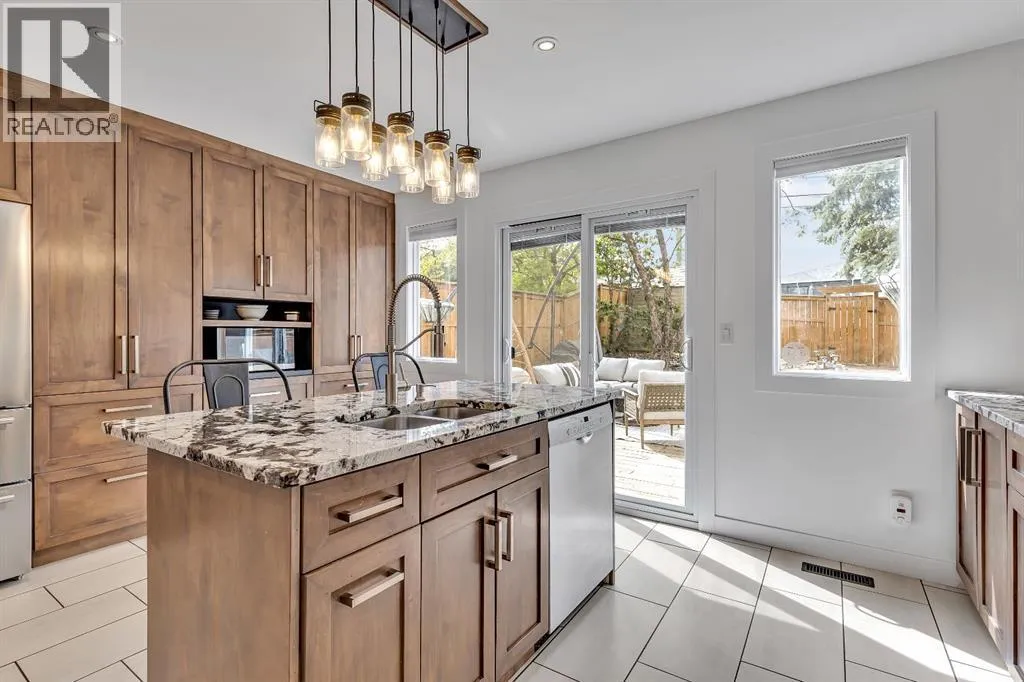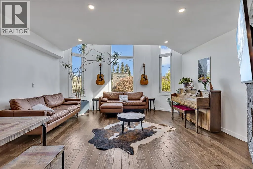 Welcome to 2033 21 Avenue SW, a beautifully modernized infill located in the highly sought after community of Richmond in Calgaryâs vibrant inner city. Offering refined luxury living, this exceptional home features sweeping downtown views from the primary suite and a sunny south facing backyard, perfectly blending indoor and outdoor living. Ideally situated just steps from parks and playgrounds, and minutes from downtown, 17th Avenue, and Marda Loop, the location is unbeatable. Upon entry, youâre greeted by soaring vaulted ceilings and expansive triple-pane windows that flood the home with natural light. The open concept living and dining area is anchored by a stunning full stone gas fireplace, creating a warm and inviting atmosphere perfect for entertaining or relaxing with family. Luxury hardwood flooring transitions seamlessly into oversized ceramic tile, adding both elegance and durability. The chef inspired oversized kitchen is thoughtfully designed with granite countertops, a marble backsplash, and upgraded stainless steel appliances (fridge, oven, and microwave upgraded in 2024). Custom knotty alder cabinetry, under cabinet lighting, a hidden spice rack, and direct access to the private backyard retreat complete this impressive space. The second floor offers two generously sized bedrooms, two beautifully finished full bathrooms, and a versatile loft area ideal for a home office or flex space. A conveniently located laundry area adds everyday practicality. The entire third floor is dedicated to the primary retreat, featuring vaulted ceilings, dual closets, and a designer 5-piece ensuite with a soaker tub, fully tiled shower, and dual vanities. This serene space also showcases incredible skyline views and large upgraded windows that enhance natural light throughout. The fully finished basement provides additional flexibility, perfect for a home office, gym, or secondary living area. A double side by side garage adds convenience and functionality with addition al full length dual driveway for 4 car parking capabilities. Significant mechanical upgrades were completed in 2024, including a high-efficiency furnace, central air conditioning, and a Class 4 impact resistant shingle roof. The south facing backyard is designed for low maintenance enjoyment, featuring an oversized deck, full fencing and privacy in Calgarys inner-city to enjoy full afternoon sun. With close proximity to downtown, trendy shops and restaurants, top rated schools, and green spaces, this home offers the perfect balance of comfort, style, and inner-city convenience in one of Calgaryâs most desirable SW neighbourhoods. (id:27476)