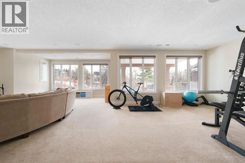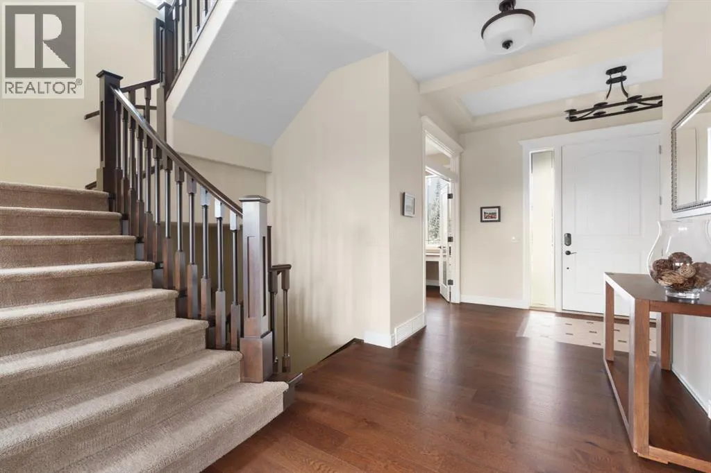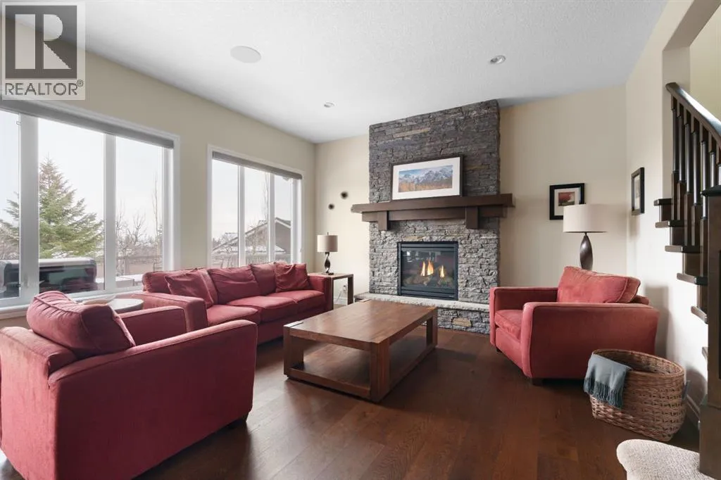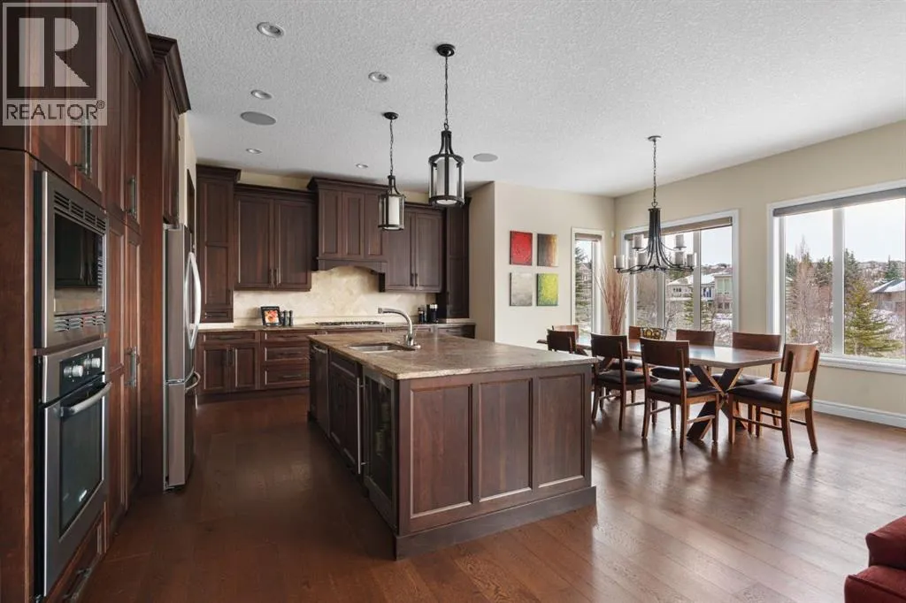 OPEN HOUSE - Sun, April 5 (1-3pm) A rare opportunity on Calgaryâs Westside⦠this estate home sits on a quiet cul de sac, on a .27 acre pie-shaped lot, backing a ravine and nature trail. You will be calmed by the sound of frogs at night, and birds singing in the morning, watching the deer from your deck, this is a space your kids will love to explore and likely where your mornings and evenings will begin walking the dog through the ravine system as it meanders north â a PEACEFUL SPACE â WONDERFUL! All of this is centrally located with ease of access to Calgaryâs finest schools and the amenities we love here on the Westside. This home is a two storey walkout, measuring 4,185 sq ft over three levels, 3 beds and a Bonus Room up with a 4th bed and full bath down and an OVER-SIZED, HEATED 3 CAR GARAGE. Highlights include 10 foot ceilings on the main, 9 feet up & down, wide plank hardwoods through the main, granite counters throughout, designer lighting and window coverings, B/I speakers, central A/C, irrigation and more. On the main you will love the open plan, which draws you through to the Great Room in back, a wall of windows and direct access to the deck and the SIGHTS & SOUNDS of NATURE. The kitchen features an over-sized center island, granite counters in a âleatherâ finish, a Bosch gas cooktop and wall oven and a wine fridge. The kitchen is open to the dining space, overlooking the ravine â NICE! There is also a private Den/Home office on the main with custom built-ins. Upstairs, a large Bonus Room under a 13â ceiling, SPACIOUS and BRIGHT. The Primary Bedroom sits at the back of the home, overtop of the ravine and enjoys a wonderful 5pc en suite and steam shower! The two additional beds up are well-sized and share a 4pc bath. The walkout level is fully finished offering a wide open space to accommodate a media space, a games space, a 4th bed and full bath⦠with direct access to your over-sized rear yard⦠BACKING THE RAVINE â this is an AMAZING location. (id:27476)