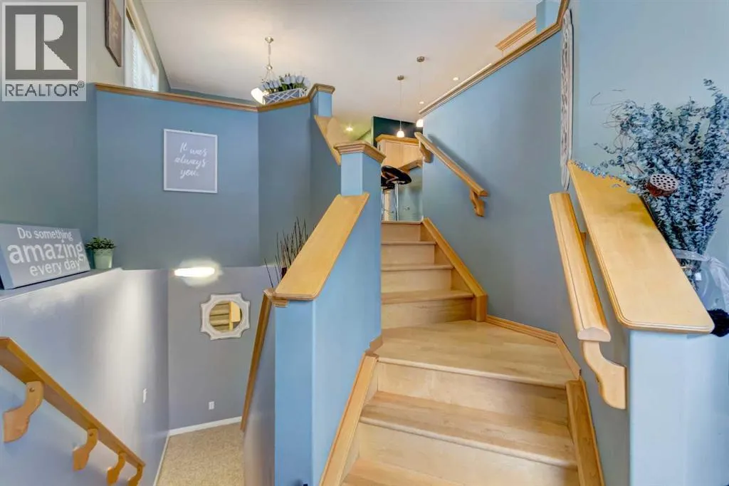 Open House Sunday March 22 from 2:00p.m-4:00p.m. Welcome to this beautifully maintained and exceptionally bright bi-level, perfectly situated on a quiet street in the highly sought-after community of McKenzie Towne, Elgin Village. With a sun-soaked west-facing backyard and an oversized heated double detached garage, this home offers comfort, style, and functionality all in one.The upgraded kitchen is a true highlight, featuring an abundance of cabinetry, a practical center island, stainless steel appliances, elegant maple finishings, track lighting, and a skylight that fills the space with natural light. Enjoy casual meals in the eat-in kitchen or at the breakfast barâperfect for busy mornings or entertaining guests.The upper level boasts a spacious living room with soaring vaulted ceilings and an open-concept design that seamlessly connects the kitchen and dining area. Youâll also find two generously sized bedrooms, including a primary retreat with his-and-hers closets, along with a full bathroom. A large laundry/mudroom conveniently located at the back entrance adds to the home's thoughtful layout.Downstairs, the fully finished lower level offers incredible versatility with 9-foot ceilings, a cozy family room and recreation space divided by a stunning three-sided gas fireplaceâperfect for relaxing or hosting. A large third bedroom and an additional full bathroom make this level ideal for guests or growing families. Plus, enjoy peace of mind with a newer furnace and hot water tank.Step outside to your private backyard oasis, complete with a newer deckâperfect for summer evenings and weekend BBQs. This is the one youâve been waiting forâdonât miss your chance to call it home! (id:27476)