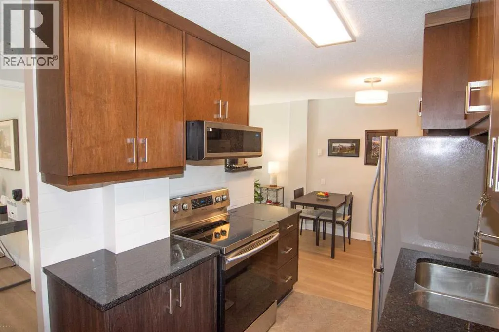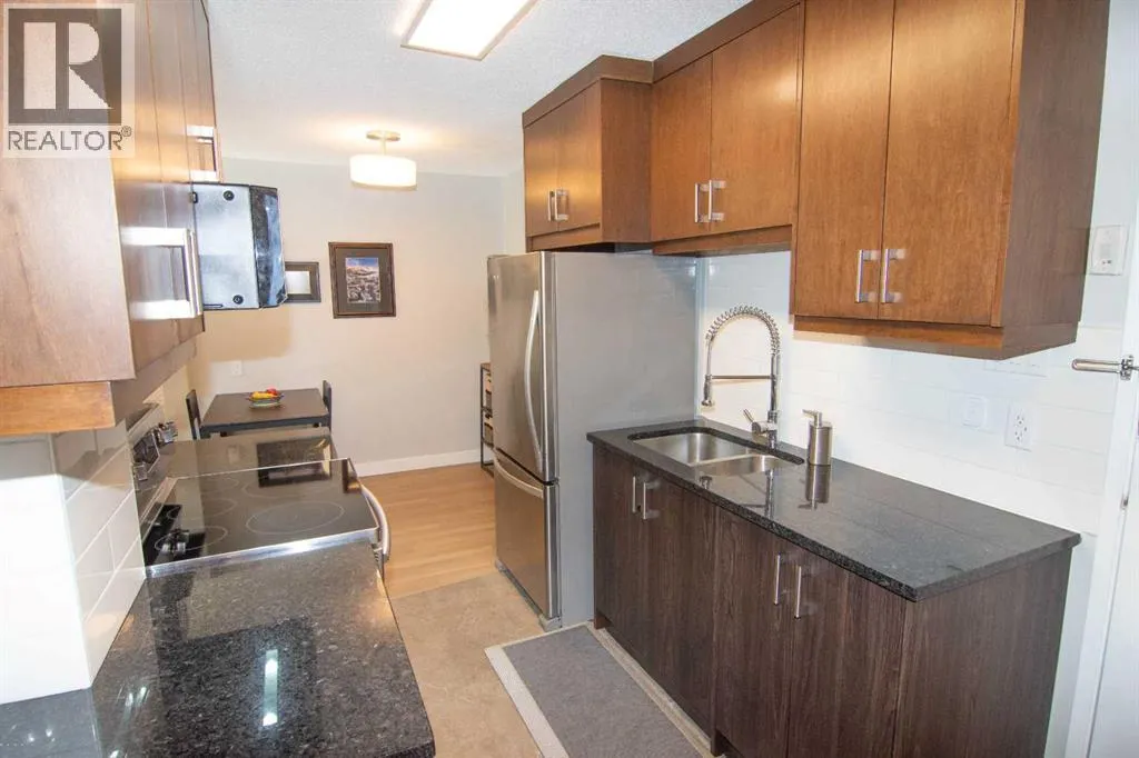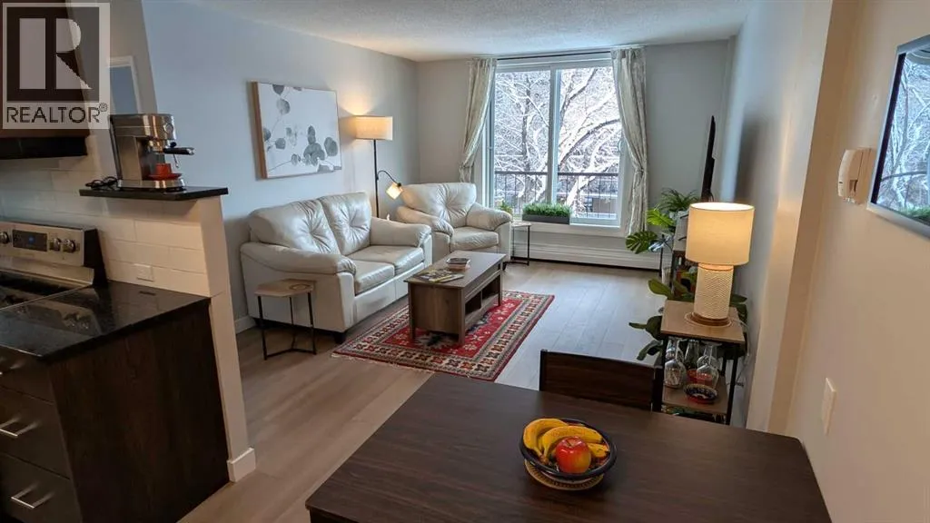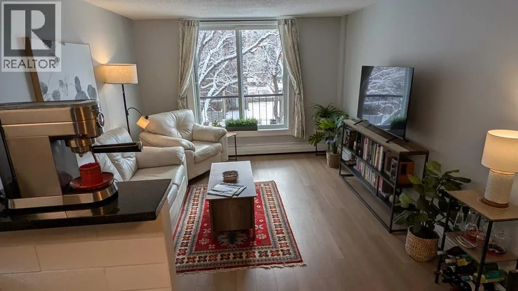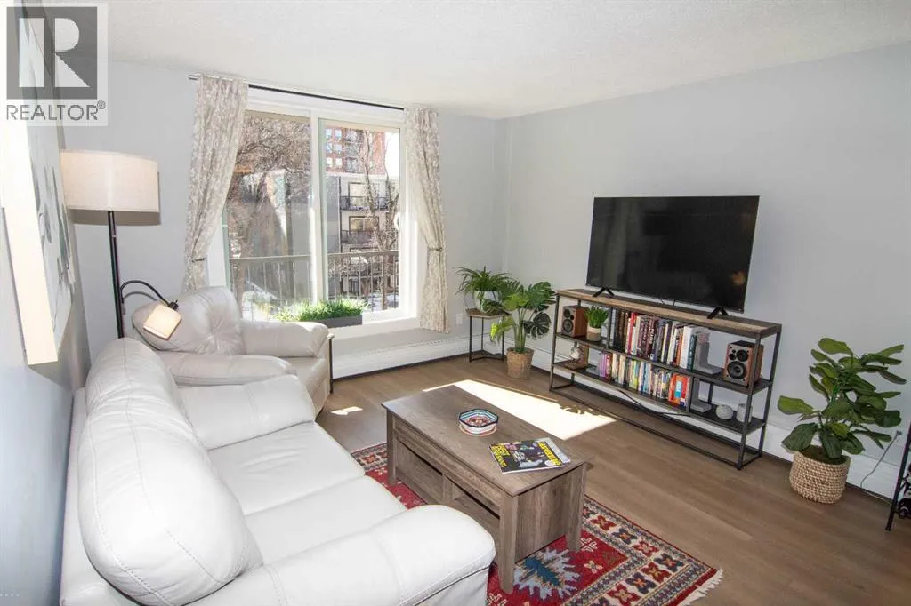 Welcome to this bright SOUTH-FACING condo in the heart of Calgaryâs vibrant Beltline. Perfectly located just steps from the shops, restaurants, and cafés of 17th Avenue SW, this home offers the ideal blend of city living and everyday comfort.Inside, youâll find NEW LUXURY VINYL PLANK FLOORING, NEW STONE PLASTIC COMPOSITE (SPC) FLOORING in the kitchen & QUARTZ COUNTERTOPS THROUGHOUT, giving the space a clean, modern feel. The open living and dining area is perfect for relaxing or entertaining, with UPGRADED LIGHTING and NEWER PAINT that adds a fresh touch throughout the home. The kitchen also features a new microwave and plenty of functional space for cooking and storage.The large bedroom offers a generous closet and overlooks mature trees, creating a surprisingly quiet and peaceful setting right in the city. Step outside onto the long, private south-facing balconyâan ideal spot for morning coffee or unwinding at the end of the day.AAdditional features include a convenient washer/dryer combo located in the IN-SUITE STORAGE room, a NEW BATHTUB with updated bathroom flooring, in-suite fibre optics, and the solid construction of a well-maintained CONCRETE BUILDING. The building has also seen recent upgrades, including vinyl windows replaced approximately two years ago.This unit comes with an assigned STORAGE UNIT & an assigned COVERED PARKING STALL. There is also free street parking on 13th Avenue. The building is professionally managed for peace of mind. Enjoy the convenience of being within walking distance to two LRT stations, grocery stores including Community Natural Foods, and all the energy and amenities that make the Beltline one of Calgaryâs most sought-after neighbourhoods.City living, quiet comfort, and an unbeatable locationâthis condo is ready to welcome you home! (id:27476)