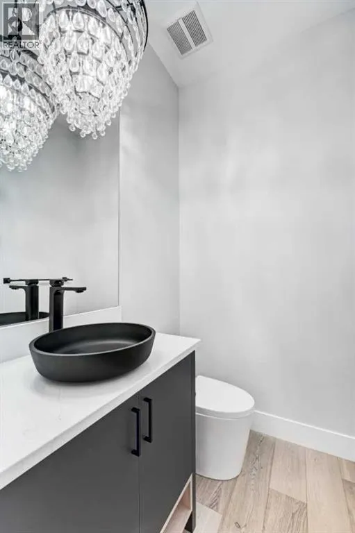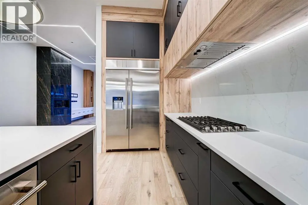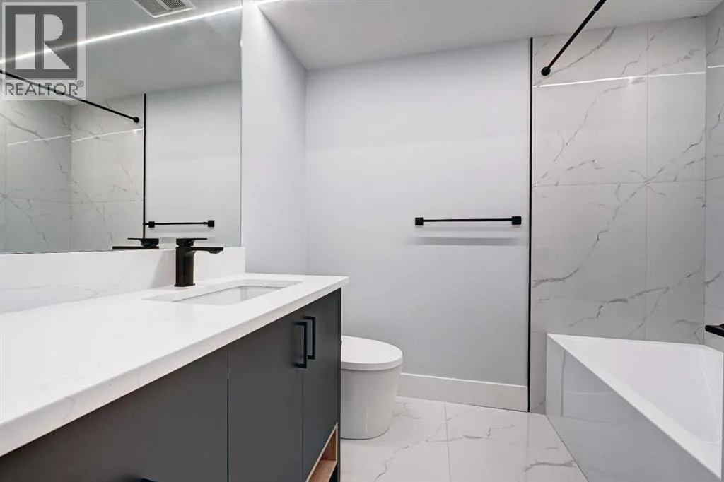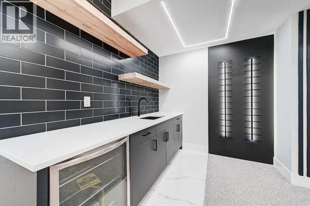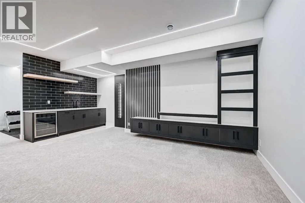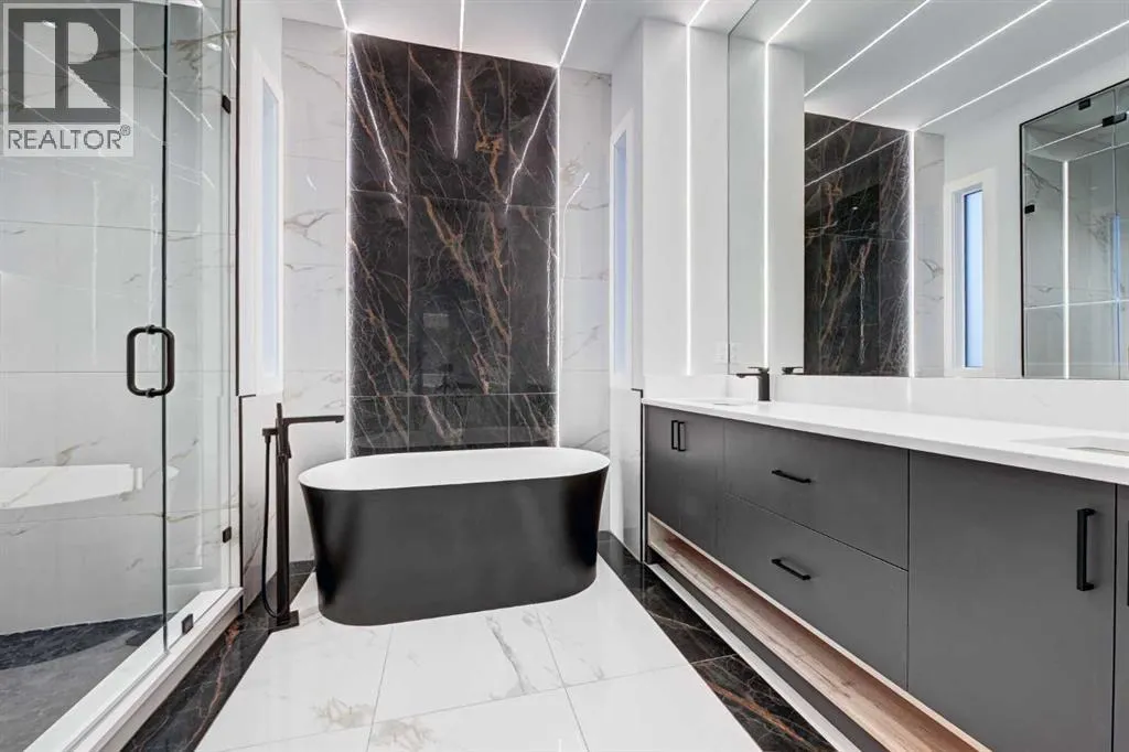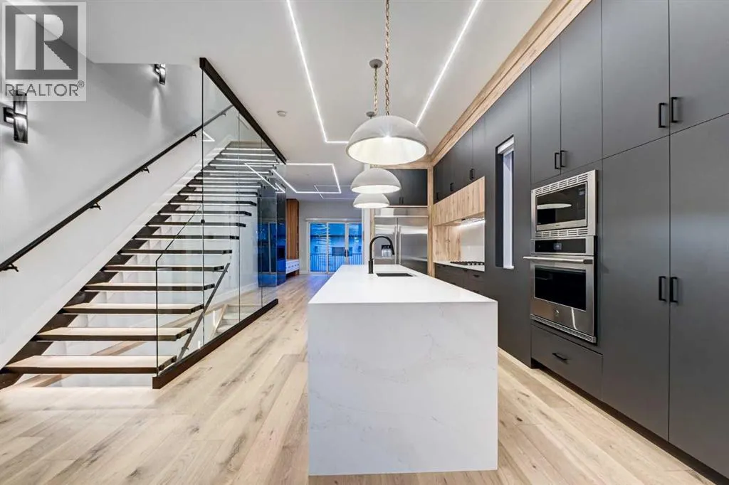 Set in one of Upper Mount Royalâs most prestigious pockets, this newly built residence delivers a refined blend of architectural elegance and modern design across more than 3,000 sq ft of meticulously crafted living space. With 3+1 bedrooms and a thoughtfully curated layout, this home captures the essence of upscale inner-city living while embracing the timeless character of the neighbourhood. A striking brick façade creates a lasting first impression, while the west-facing outdoor space invites warm afternoon light and effortless entertaining. Inside, the main level is defined by soaring 11-foot ceilings, wide-plank hardwood flooring, and an abundance of natural light that enhances every detail. A fully integrated smart home system elevates daily living with automated power blinds and customizable lighting, while upgraded designer light fixtures add an extra layer of sophistication throughout. The open-concept design seamlessly connects each space, complemented by a well-appointed mudroom and elegant powder room. At the heart of the home, the kitchen is designed to impressâfeaturing a massive waterfall quartz island, sleek custom cabinetry, and a high-end gas range that will appeal to both everyday living and elevated entertaining. The adjoining living room offers a stunning focal point with its tiled fireplace and custom-built media centre, while large sliding glass doors create a seamless transition to the backyard. A statement floating staircase leads to the upper level, where 10-foot ceilings continue the sense of openness. Here, youâll find three generously sized bedrooms, a beautifully finished 4-piece bathroom, and a fully equipped laundry room with sink and ample storage. The primary suite is a true retreat, offering a spacious walk-in closet and a spa-inspired 5-piece ensuite complete with a freestanding soaker tub, oversized glass shower, and dual vanity. The fully developed lower level expands the homeâs versatility with 9-foot ceilings and the option fo r in-floor heating. Designed for both relaxation and recreation, it features a large family room with a wet barâperfect for movie nights or hosting guestsâalong with a dedicated exercise space, a fourth bedroom, and an additional 4-piece bathroom.Additional highlights include air conditioning, a rear deck with a BBQ gas line, and a heated double detached garageâideal for Calgaryâs winter monthsâensuring comfort and convenience year-round. Located just moments from the vibrant energy of 17th Avenue SW, as well as top-rated schools, parks, and transit, this home offers an exceptional lifestyle with quick access to the downtown core via 14th Street SW. A rare opportunity to own a brand-new luxury home in one of Calgaryâs most iconic communitiesâwhere timeless location meets contemporary living. (id:27476)
