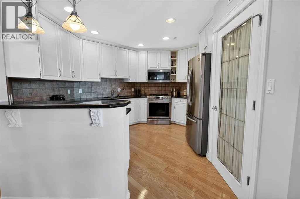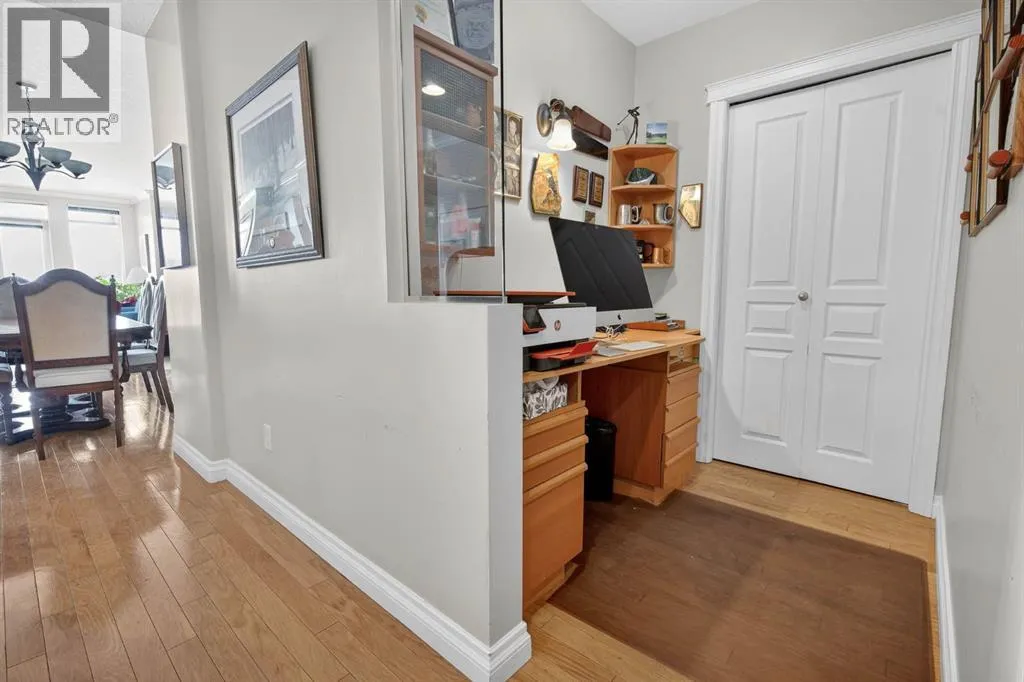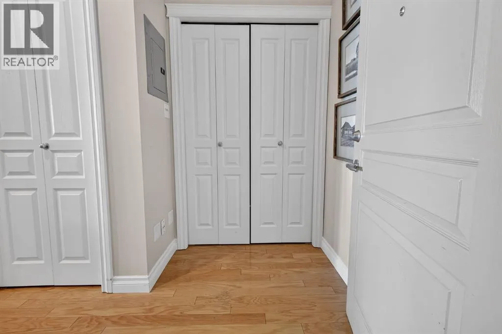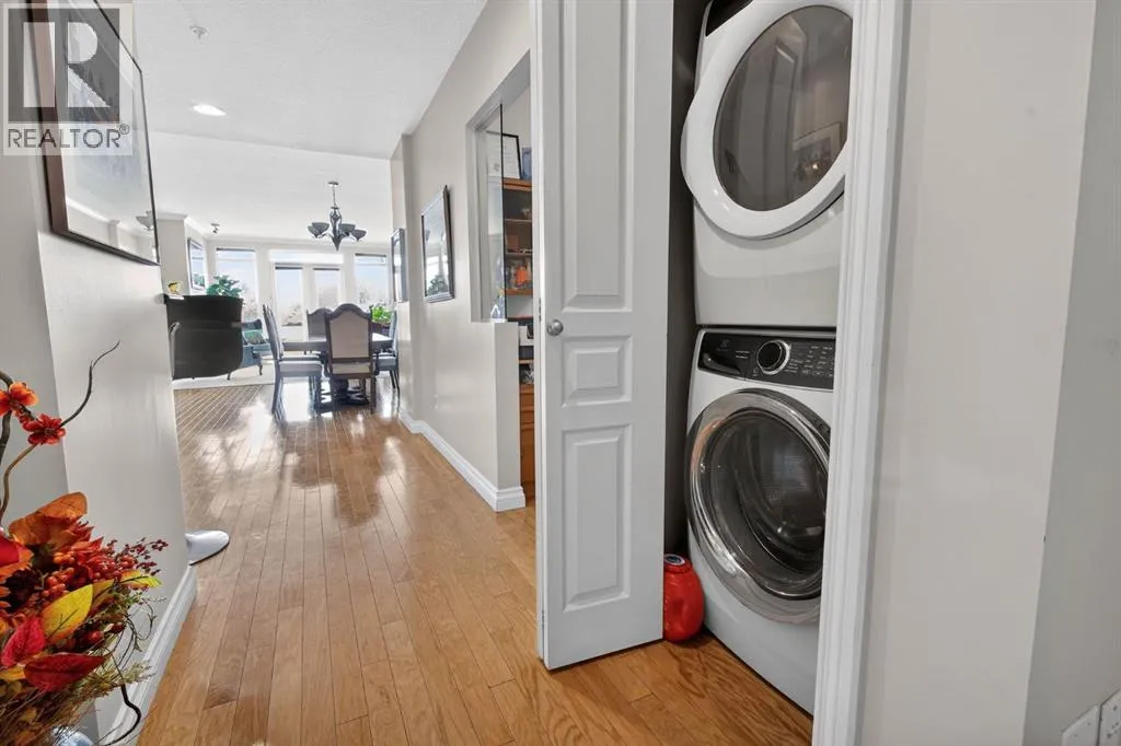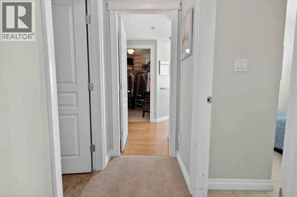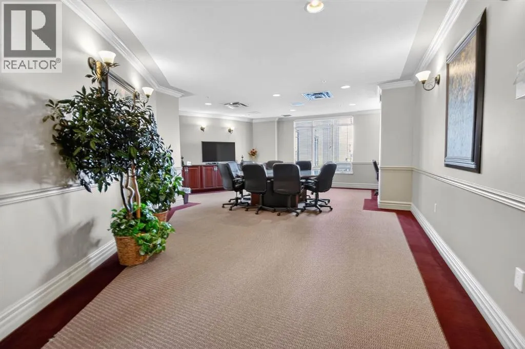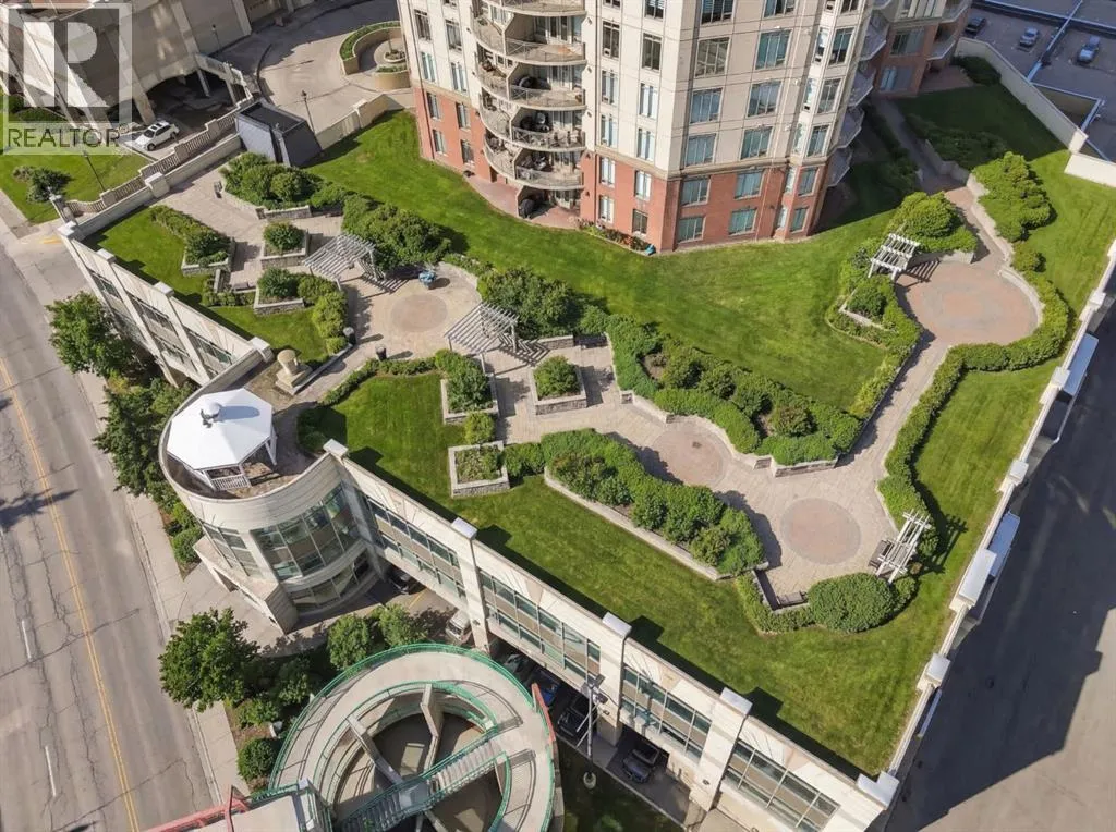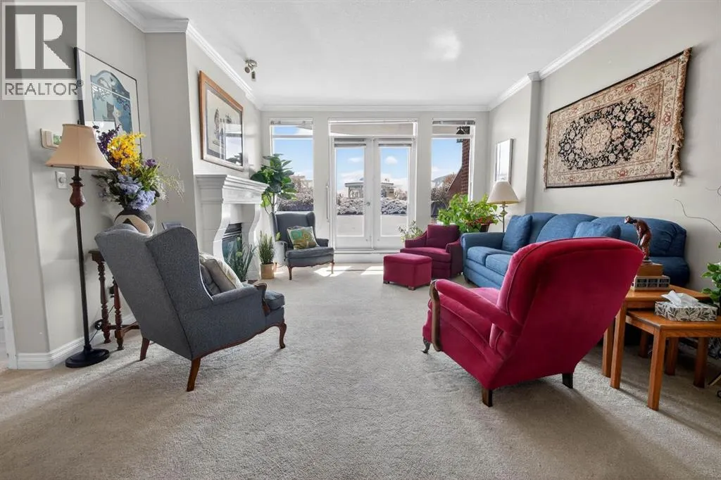 Enjoy this rare unit featuring a combination of greenspace and city views from this spacious ground floor walkout condo in The Renaissance, one of Calgaryâs most desirable premier adult living condo buildings with an extensive list of amenities. Offering 1,412 sq.ft., 2 bedrooms, 2 bathrooms, plus a den/office, this bright south-facing unit is filled with tons of natural light through large windows overlooking beautifully landscaped greenspace. Inside, the home features hardwood flooring, freshly shampooed carpet, a spacious open living and dining area, a well-sized kitchen with stainless steel appliances and pantry, in-suite washer and dryer, central air cooling and a cozy gas fireplace. The versatile den is perfect for a home office or computer room. The thoughtful layout provides comfortable everyday living while offering plenty of room to entertain. The spacious primary bedroom features a large walk-in closet, and the same amazing views from the patio can also be enjoyed from the bedroom windows, creating a peaceful backdrop year-round. The 4-piece ensuite includes a standing shower as well as a walk-in jetted Jacuzzi tub. The second bedroom is conveniently located across from the full main bathroom. Step outside through the double French doors to your walkout patio with a natural gas line for your BBQ, where the quiet and peaceful setting feels more like stepping into your own private yard than a condo. Ground floor units with this type of outdoor access are rarely available in the building! Additional highlights include a Vacuflo system, secure titled underground heated parking and a large storage room located on the same level just steps from your front door, another rare and convenient feature. Residents enjoy the outstanding amenities of The Renaissance, including 24/7 concierge and security service, fitness facilities, social and recreation spaces such as the games and hobby room, guest suites, a movie theatre, library, car wash bay, and beautifully mainta ined common areas inside and outside with gazebos and BBQ areas. The building also offers a garbage chute on each floor, no more wrestling garbage bags going down to the parkade! You also have secure, heated indoor access to North Hill Centre, which includes Safeway, Shoppers Drug Mart, restaurants, medical and dental offices, banks and more, making grocery shopping, dining, and daily errands effortless year-round. Just steps away is the LRT Station, providing quick access to downtown and the rest of the city. The Calgary Public Library, SAIT, and the Jubilee Auditorium are also just minutes away. A rare opportunity to enjoy spacious living, incredible views, and unbeatable inner-city convenience in one of Calgaryâs most sought-after condo communities. (id:27476)