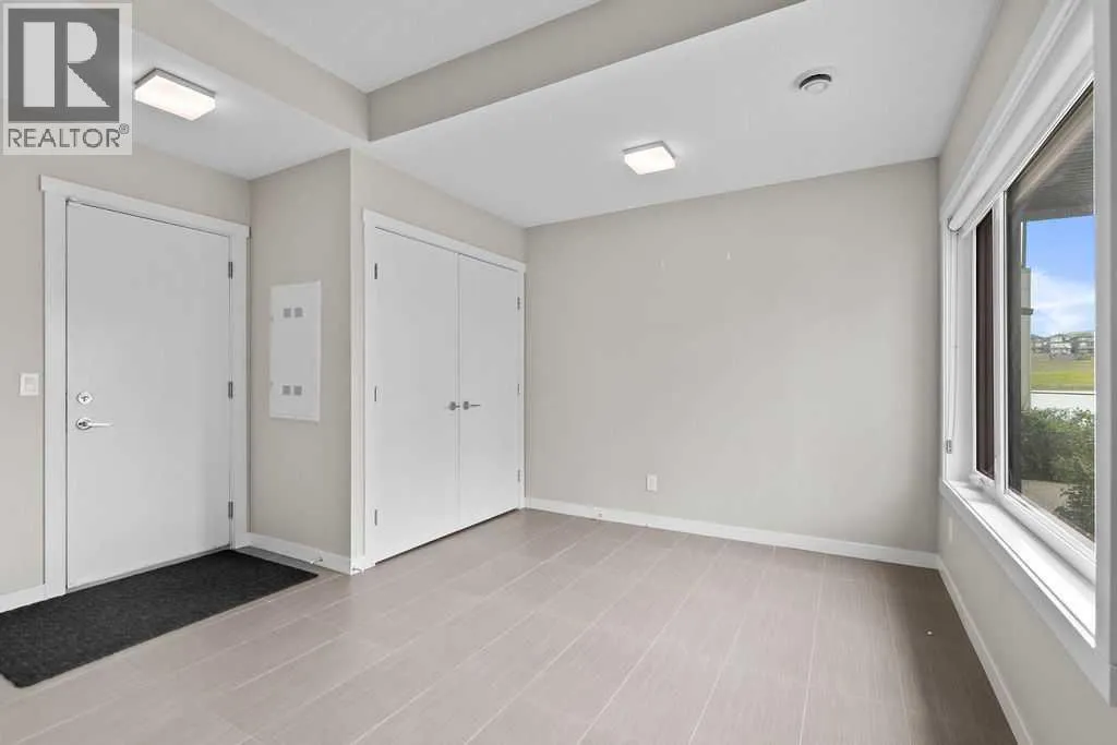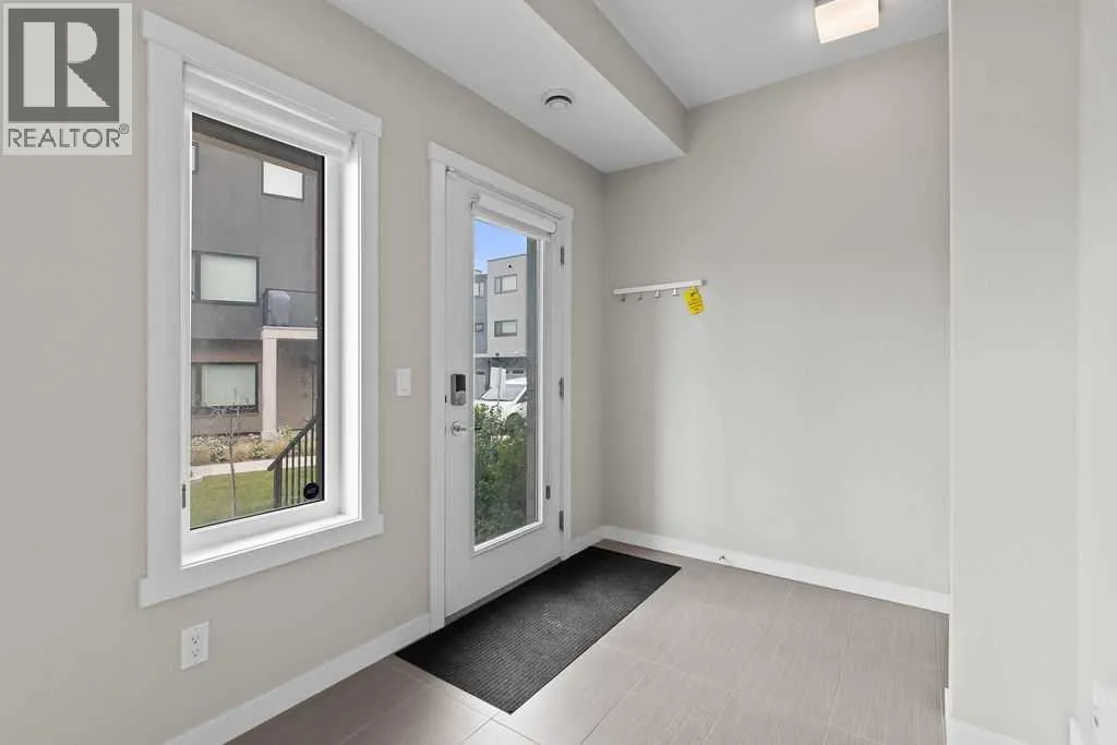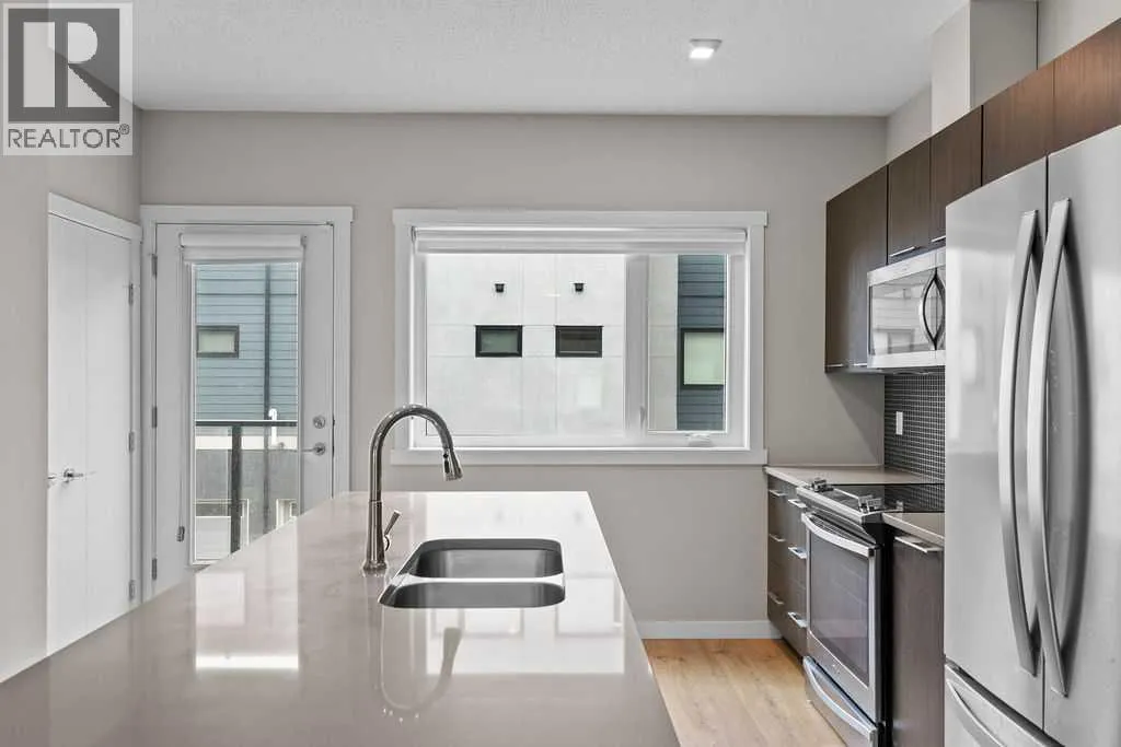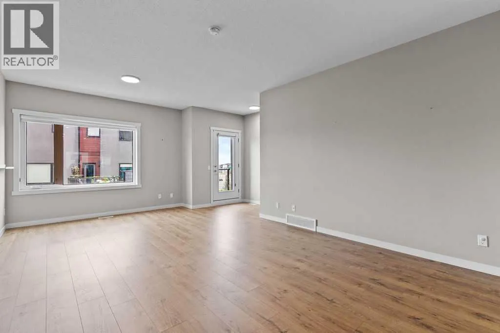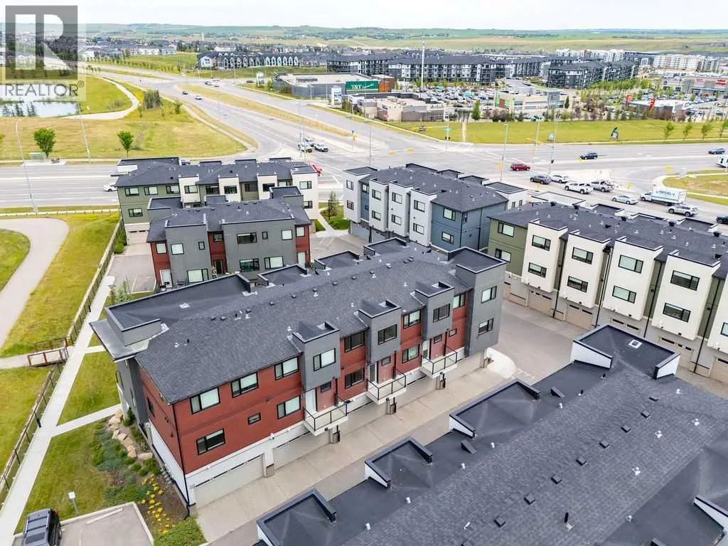 Welcome to this beautifully upgraded townhome in the sought-after Diseno development in Sherwood, NW Calgary. Offering 1,565 sq. ft. of well-designed living space, this bright and sun-filled home is ideally located just steps from the community park and pond, providing peaceful views while remaining within walking distance to the amenities of Sage Hill Crossing. From the moment you step inside, youâll notice the modern finishes and thoughtful design throughout. The entry level features a versatile flex spaceâperfect for a home office, gym, media room, or hobby areaâalong with convenient access to the side-by-side double attached garage. The main living area is open, airy, and perfect for both everyday living and entertaining. Large windows flood the space with natural light and frame scenic park views. The stylish rear kitchen is a true highlight, featuring quartz countertops, upgraded stainless steel appliances, ample cabinetry, and a functional layout that flows seamlessly into the dining area. The spacious living room creates a warm and inviting atmosphere to relax or host guests. Enjoy outdoor living with both front and rear private balconiesâideal for morning coffee or evening unwinding. Upstairs, youâll find three generously sized bedrooms and two full bathrooms. The primary suite offers a bright and peaceful retreat with a walk-in closet and a modern ensuite complete with a walk-in shower. The additional bedrooms provide flexibility for family, guests, or workspace. This home showcases a full builder upgrade package, including laminate flooring on the main level, window coverings throughout, and attractive exterior finishes featuring Hardie Board siding, stucco accents, and brick detailing for timeless curb appeal. Meticulously maintained, it reflects true pride of ownership. Conveniently located near public transit, major roadways, schools, parks, and shopping at Beacon Hill and Sage Hill Plaza, this home offers an exceptional blend of comfort, style, and lo cationâan outstanding opportunity to own in one of NW Calgaryâs most desirable communities. (id:27476)