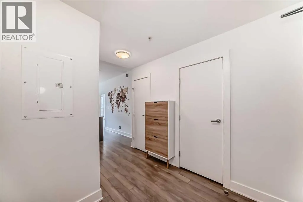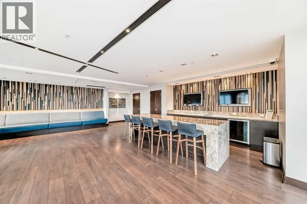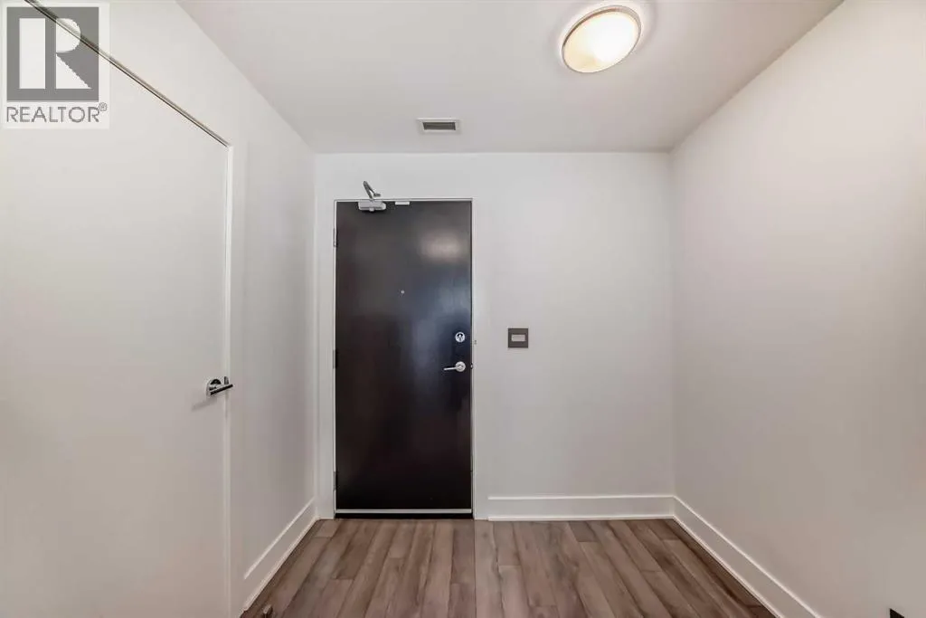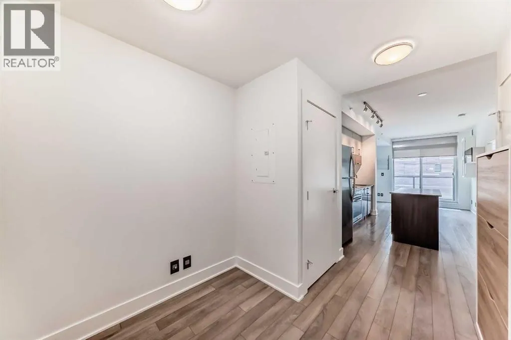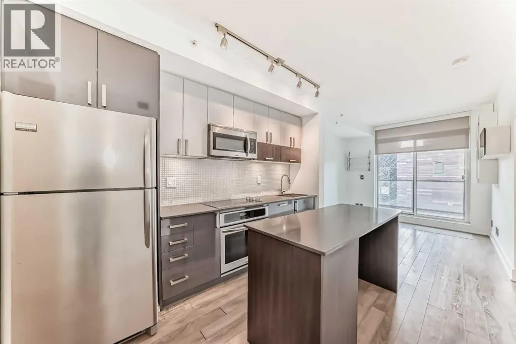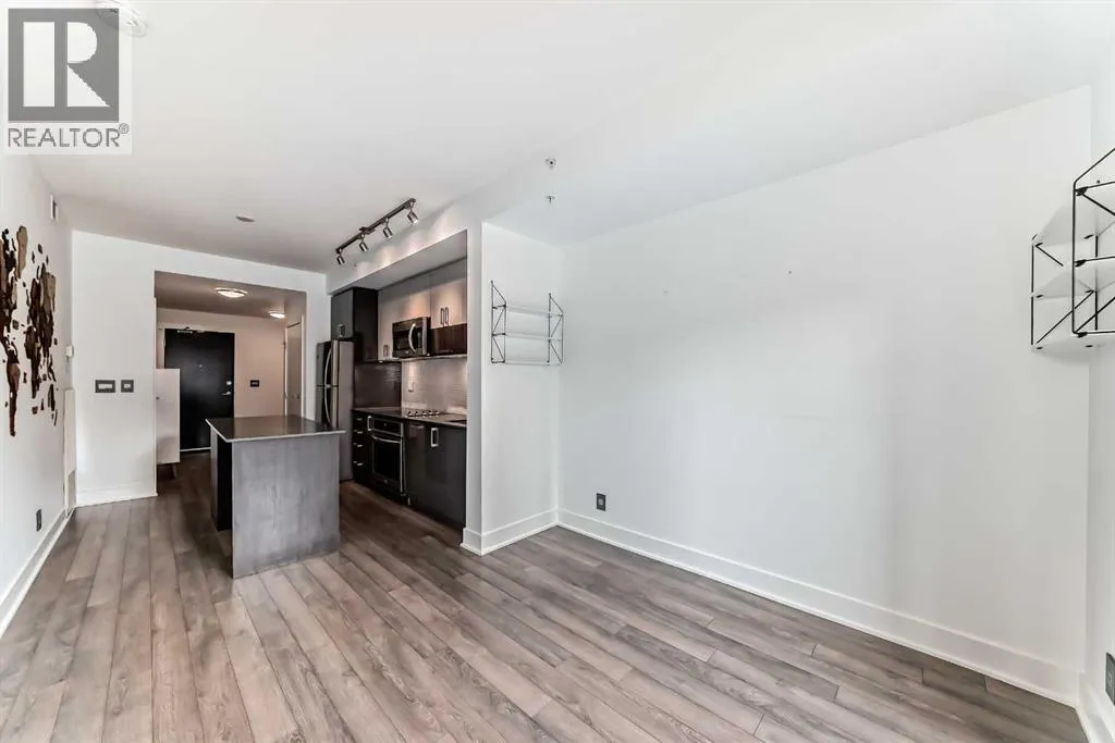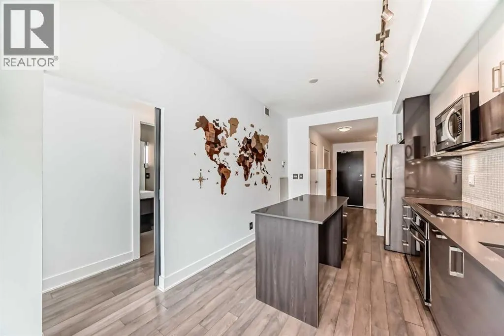 Welcome to FIRST, a modern and stylish condominium in the heart of Calgaryâs vibrant East Village. This thoughtfully designed one-bedroom, one-and-a-half-bathroom home offers a functional layout, quality finishes, and plenty of natural light.Upon entering, you are welcomed by a practical foyer featuring in-suite laundry and a well-appointed 2-piece guest bathroom. The open-concept living area highlights 9-foot ceilings, large windows, and contemporary finishes that create a bright and inviting space.The modern kitchen is designed for both functionality and style, showcasing quartz countertops, stainless steel appliances, and a central island perfect for meal preparation, casual dining, or entertaining.Floor-to-ceiling sliding patio doors lead to a private east-facing balcony with custom wooden slat flooring, overlooking a beautifully landscaped courtyardâan ideal place to enjoy your morning coffee or relax in the evening.The spacious bedroom is separated by a modern sliding barn door and features a large walk-in closet and a stylish ensuite bathroom with a glass rainfall shower, creating a comfortable, spa-inspired retreat.Additional highlights include underground titled parking, a large storage locker, secure bike storage, and a pet-friendly environment within this well-managed building.Residents enjoy an impressive range of amenities including 24-hour concierge service, a fitness centre, yoga studio, guest suite, visitor parking, conference room, TV lounge, pool table lounge, and a spacious party room with kitchen. The 18th-floor rooftop terrace offers stunning views of the Bow River and downtown skyline, complete with BBQ areas for entertaining.Located just steps from the Bow River pathways, Simmons Building, Central Library, Stampede Park, restaurants, shopping, and public transit, this home offers exceptional access to everything downtown Calgary has to offer.Whether you are a professional, investor, or first-time buyer, this property delivers t he perfect balance of urban lifestyle, comfort, and convenience. (id:27476)