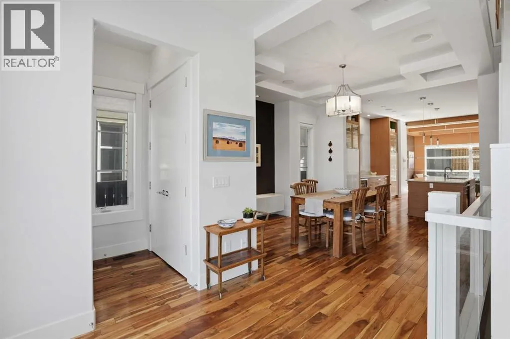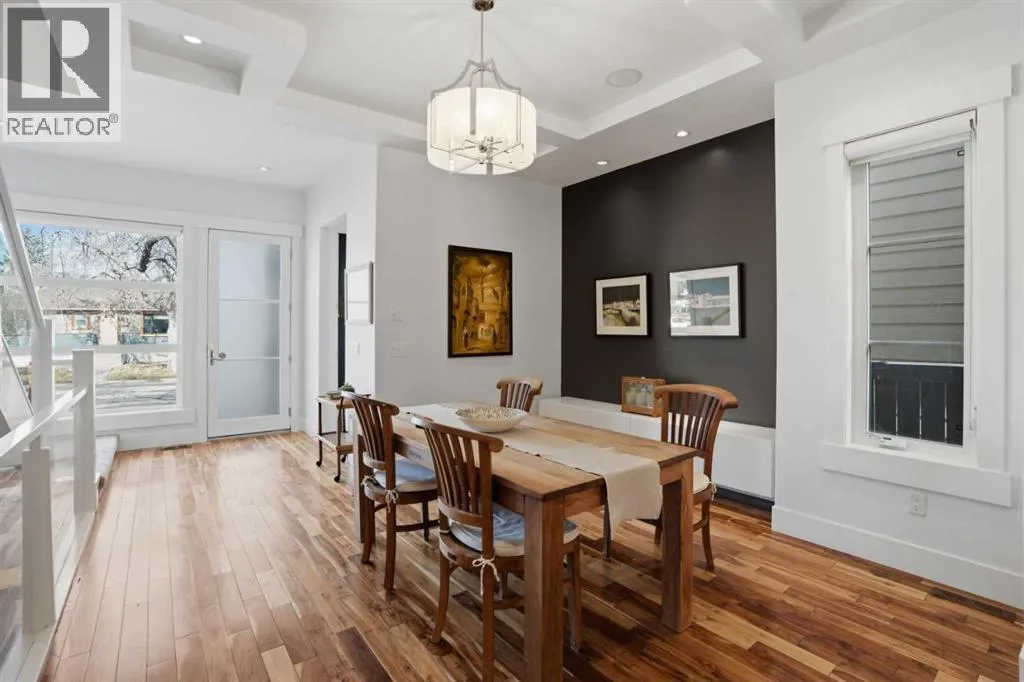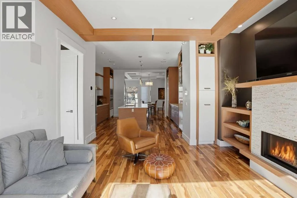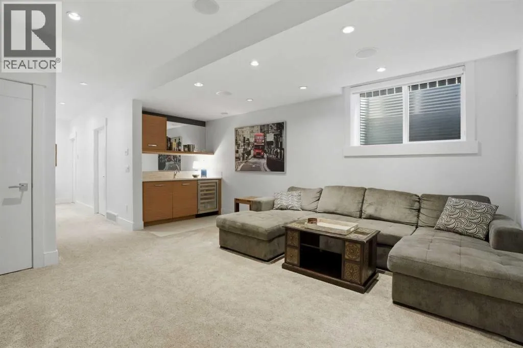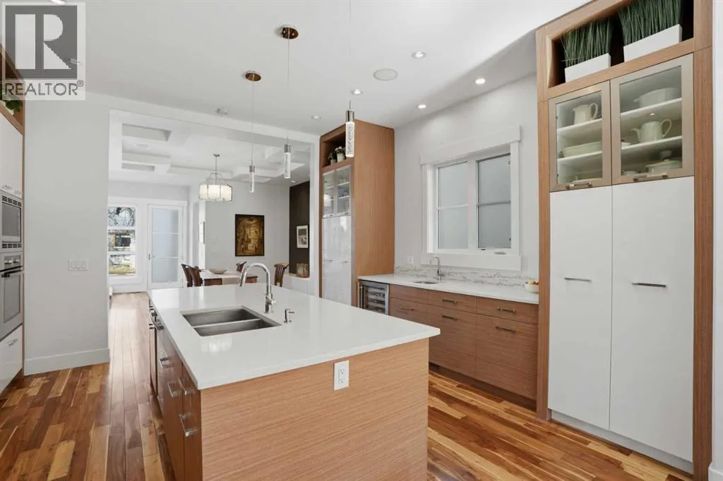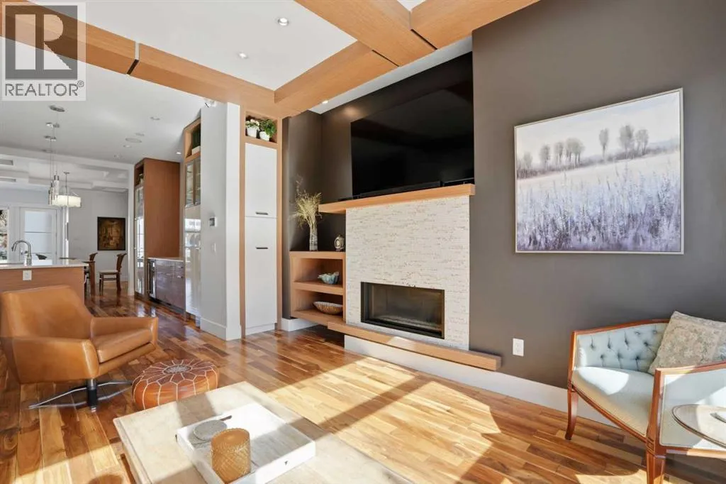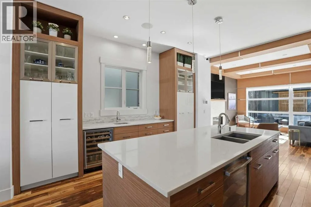 Welcome to an exceptional Altadore residence where refined design meets everyday comfort in one of Calgaryâs most coveted inner-city communities.Positioned on a highly desirable north/south exposure, this home offers the perfect blend of lifestyle and locationâjust moments from Flanders Park and a short stroll into the vibrant heart of Marda Loop, known for its boutique shopping, dining, and community energy. Inside, the home unfolds into a beautifully curated main level that balances sophistication with livability. From the moment you walk in you can feel how well this home has been cared for. The open-concept design creates a seamless flow, anchored by a stunning living space featuring a contemporary tiled fireplace that adds both warmth and architectural interest. Thoughtful additions like a functional mudroom and main floor powder room ensure the home is as practical as it is polished, while rich hardwood flooring ties everything together with timeless elegance.The kitchen is nothing short of impressiveâdesigned to elevate both everyday moments and making entertaining effortless. Custom-built cabinetry, sleek quartz surfaces, and an expansive island create a striking focal point. Premium stainless steel appliancesâincluding a gas cooktop, a built-in microwave (2023), a silent dishwasher with a third rack (2023), and a beverage fridgeâoffer both performance and style.Upstairs, the home continues to impress with high ceilings, three grandly scaled bedrooms, a full bathroom, and a dedicated built-in workspaceâperfect for modern family life or working from home. The primary suite feels like a private escape, complete with a spa-inspired 5-piece ensuite and a spacious walk-in closet. Plush new carpeting (2023) enhances comfort throughout the entire upper level.The fully finished lower level expands your living space intentionally, offering a large recreation area ideal for entertaining or relaxing, a sleek wet bar with a beverage fridge, a fourth bedroom, and a beautifully appointed full bathroom. With new carpet installed in 2023, this level feels fresh, inviting, and ready to enjoy.This home has been meticulously cared for and thoughtfully upgraded over time. Upgrades include a newer roof (2017), furnace and water softener (2020), full interior repaint (2023) with touchups done (2026), and a brand-new 75 gallon hot water tank (2024), ensuring stress-free years ahead.Outdoors, the south-facing backyard is designed for both relaxation and connection. Featuring a raised seating area, and an electric retractable awning for added comfort, the space transitions effortlessly from daytime lounging to evening entertaining. Ambient string lighting completes the setting, creating a warm and inviting atmosphere long after the sun goes down. Whether for a morning coffee or evenings with friends this spacious backyard offers just what you are looking for! This is more than just a homeâitâs a complete lifestyle opportunity in one of Calgaryâs most desirable neighborhood! (id:27476)