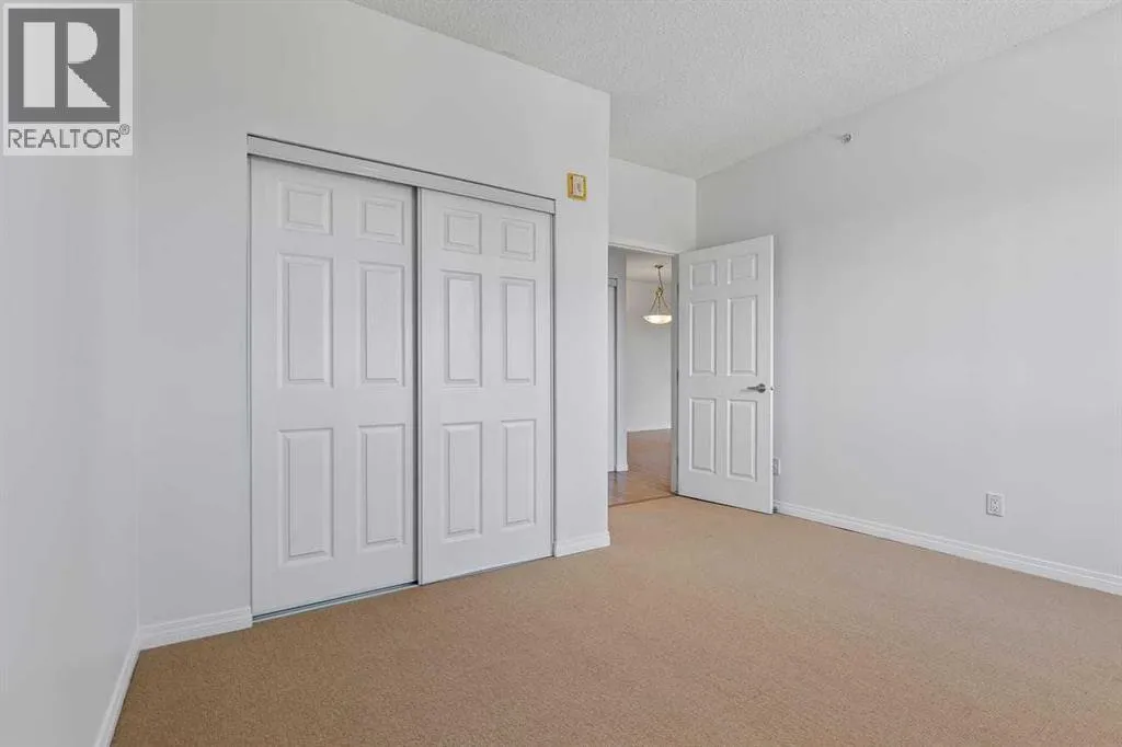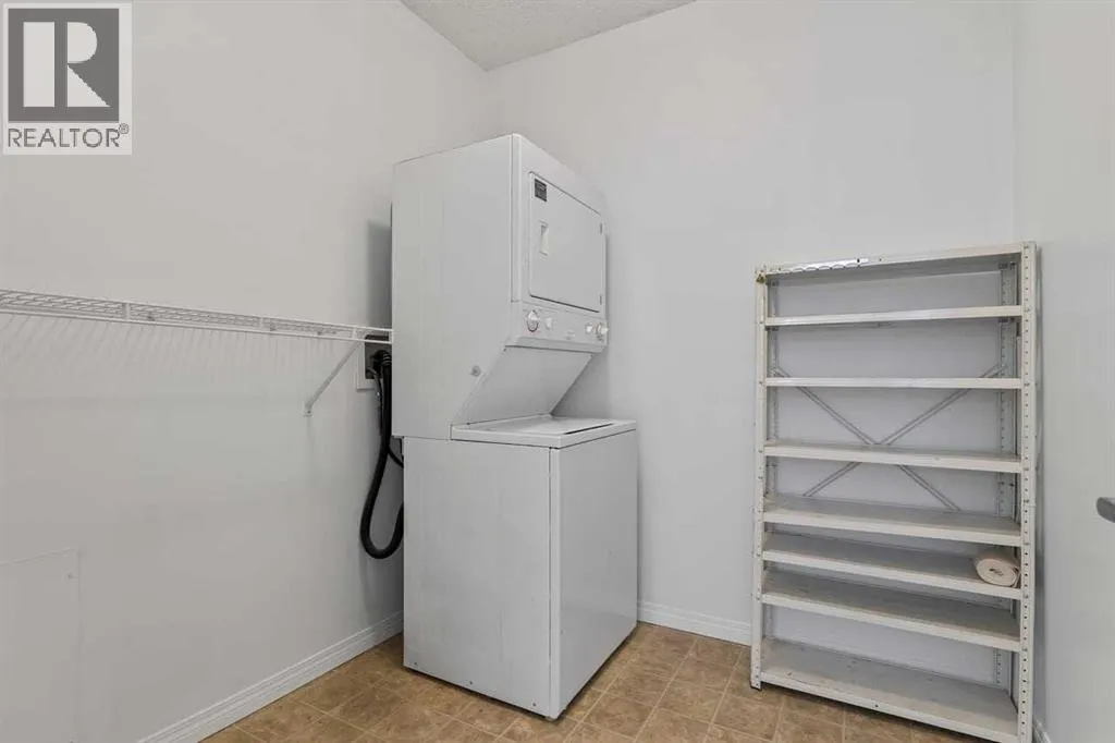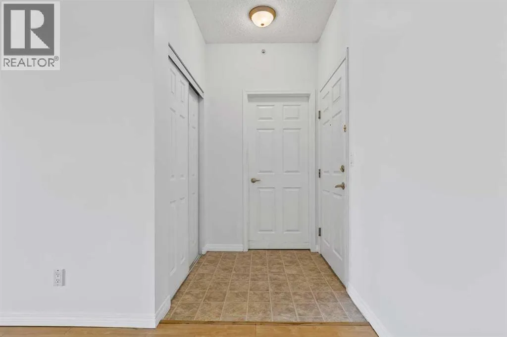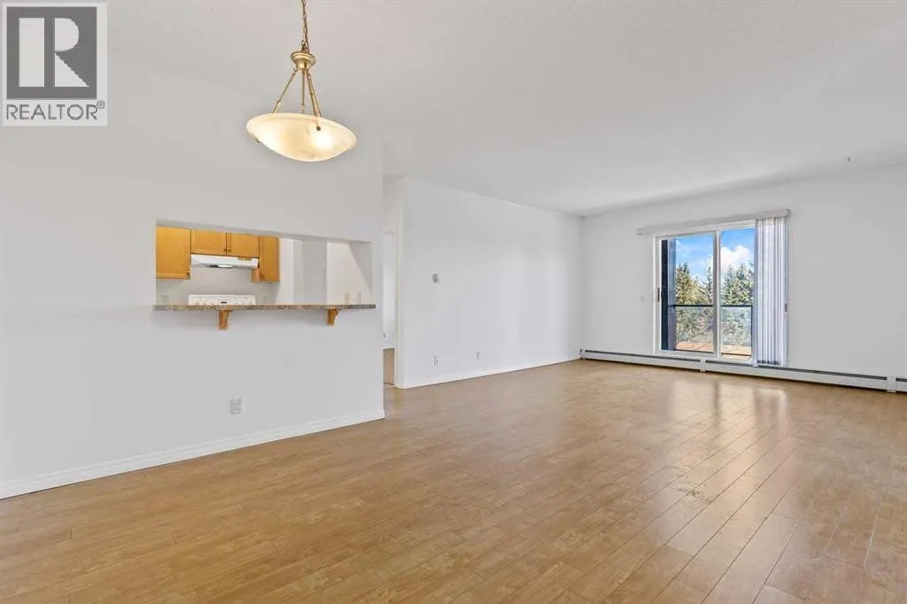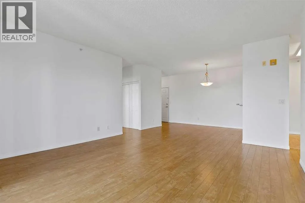 Bright, spacious, and freshly painted, this third-floor condo offers over 1,028 sq ft of comfortable single-level living in Queenslandâs Valhalla Ridge. With 2 bedrooms, 2 full bathrooms, 9-ft ceilings, and a large covered balcony, this is an excellent opportunity for buyers looking for a well-kept home with generous room sizes, practical storage, and an easy southeast Calgary location. The layout opens into a large foyer and expansive living and dining area finished with light-toned hard-surface flooring, crisp white walls, and broad windows that bring in natural light and frame a treed, elevated outlook. A sliding glass door leads to the oversized covered balcony with glass railingâan inviting extension of the living space with open views over mature trees and neighbouring rooftops. The kitchen is functional and efficient, with light wood cabinetry, ample counter space, white appliances, a double sink, and a pass-through to the dining area that keeps the main living space feeling connected. The primary bedroom is generously scaled and includes a walk-in closet plus a private 4-piece ensuite. The second bedroom offers excellent flexibility for guests, roommates, or a home office, with its own closet, window, and easy access to the second full 4-piece bathroom. A separate in-suite laundry room adds convenience and extra storage capacity, while the titled underground parking stall and assigned storage area help round out the package. The building also features a welcoming lobby/common seating area and attractive exterior presence. Located in established Queensland, this home places you near the Bow River corridor, Fish Creek Provincial Park, parks and pathways, with convenient access to Bow Bottom Trail and Canyon Meadows Drive for day-to-day commuting and getting around the city. The result is a bright, functional condo with standout square footage, a smart 2-bed/2-bath layout, a large balcony, and the added value of underground parking and storageâall in a well-sit uated southeast Calgary community. Book your showing and see the space, layout, and view for yourself. (id:27476)