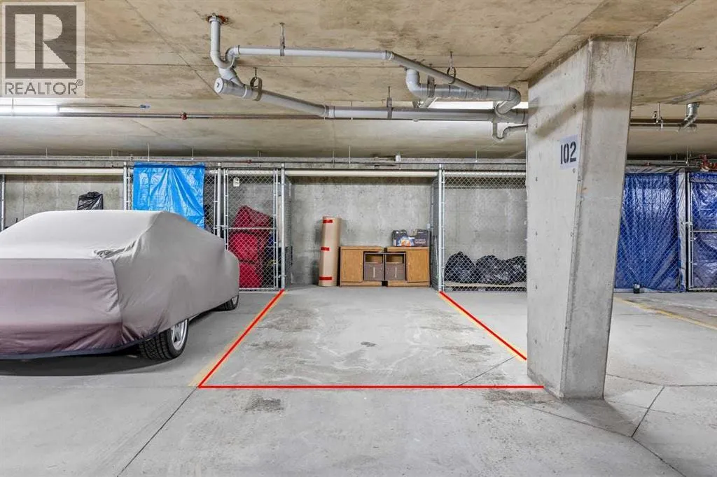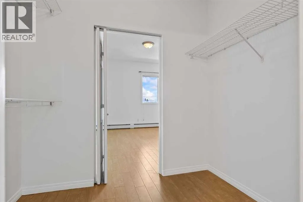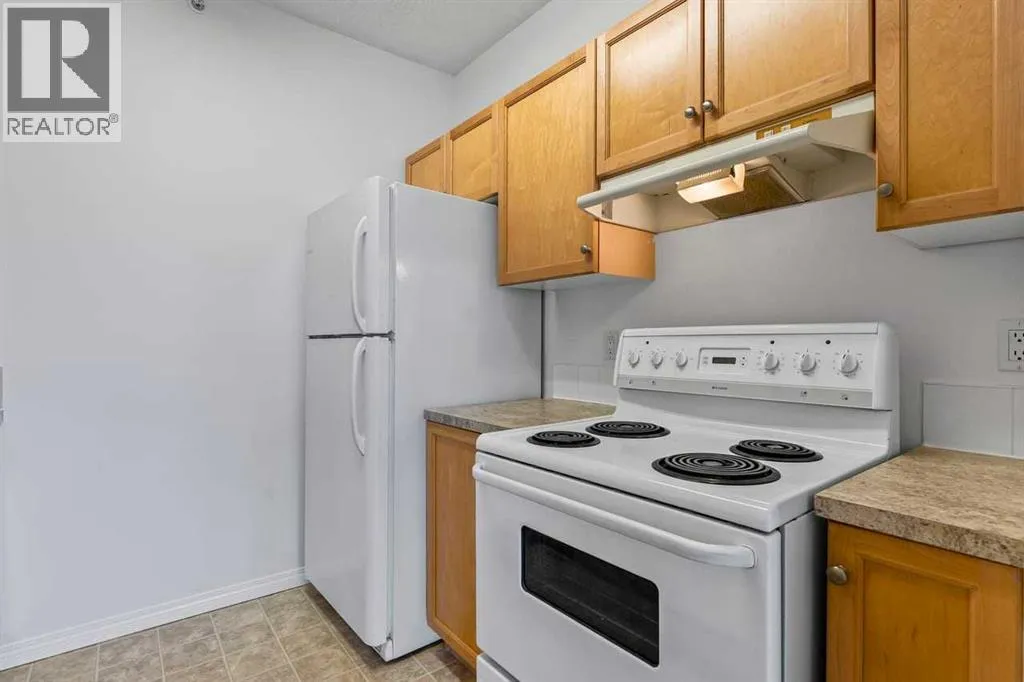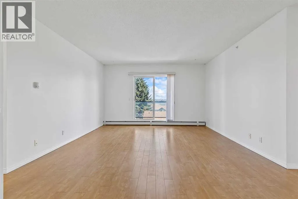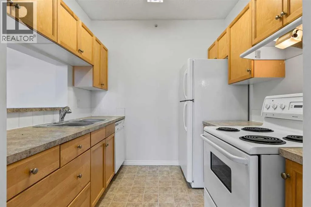 Bright, spacious, and freshly painted, this third-floor condo offers over 1,028 sq ft of comfortable single-level living in Queenslandâs Valhalla Ridge. With 2 bedrooms, 2 full bathrooms, 9-ft ceilings, and a large covered balcony, this is an excellent opportunity for buyers looking for a well-kept home with generous room sizes, practical storage, and an easy southeast Calgary location. The layout opens into a large foyer and expansive living and dining area finished with light-toned hard-surface flooring, crisp white walls, and broad windows that bring in natural light and frame a treed, elevated outlook. A sliding glass door leads to the oversized covered balcony with glass railingâan inviting extension of the living space with open views over mature trees and neighbouring rooftops. The kitchen is functional and efficient, with light wood cabinetry, ample counter space, white appliances, a double sink, and a pass-through to the dining area that keeps the main living space feeling connected. The primary bedroom is generously scaled and includes a walk-in closet plus a private 4-piece ensuite. The second bedroom offers excellent flexibility for guests, roommates, or a home office, with its own closet, window, and easy access to the second full 4-piece bathroom. A separate in-suite laundry room adds convenience and extra storage capacity, while the titled underground parking stall and assigned storage area help round out the package. The building also features a welcoming lobby/common seating area and attractive exterior presence. Located in established Queensland, this home places you near the Bow River corridor, Fish Creek Provincial Park, parks and pathways, with convenient access to Bow Bottom Trail and Canyon Meadows Drive for day-to-day commuting and getting around the city. The result is a bright, functional condo with standout square footage, a smart 2-bed/2-bath layout, a large balcony, and the added value of underground parking and storageâall in a well-sit uated southeast Calgary community. Book your showing and see the space, layout, and view for yourself. (id:27476)