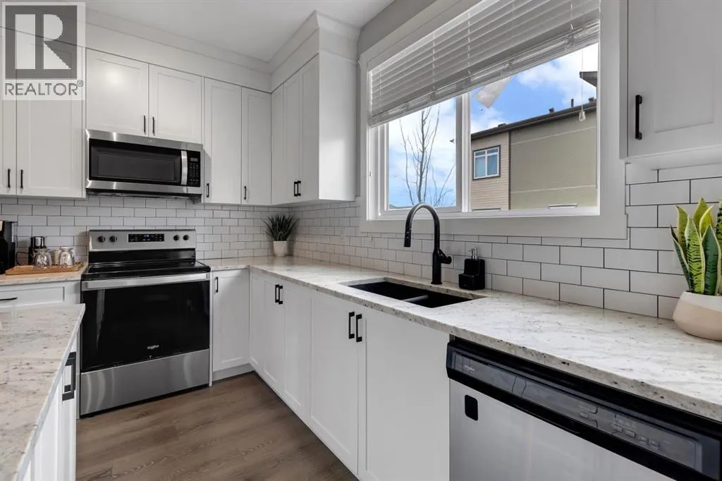 Discover elevated living in this beautifully designed townhome located in the heart of Sage Hill NW Calgary. Situated just steps away from a family-friendly playground, this property offers a rare blend of luxury, functionality, and community charm. Featuring a double master bedroom plan with dual ensuites this 2 Bedroom, 2.5 Baths design plan offers over 1,200+ square feet of luxury low maintenance living. This home features builder upgrades throughout featuring sleek granite countertops, custom shaker style designer cabinetry, premium vinyl plank flooring, high ceilings, stainless steel appliance package, full tile to ceiling around all baths/showers, and glass panelled balcony with gas-line for BBQ. This home blends together he perfect mix of modern style with at home comfort. This homes open floor plan offers natural light through large windows on every level, creating bright and welcoming spaces that feel like home from the moment you walk in.Enjoy the convenience of an attached double car (tandem) garage + full length drive way fro 3 car total parking as well as ease of access along Sage Bluff Gate for additional guest parking. Whether you're entertaining or relaxing, the open-concept layout and thoughtfully designed living areas make this home a standout choice. Offering exceptional value in one of Calgarys premier NW communities and providing quick and easy access to nearby shopping, public transit routes, park & playground spaces, and walking and bike trails this is an opportunity not to be missed! (id:27476)