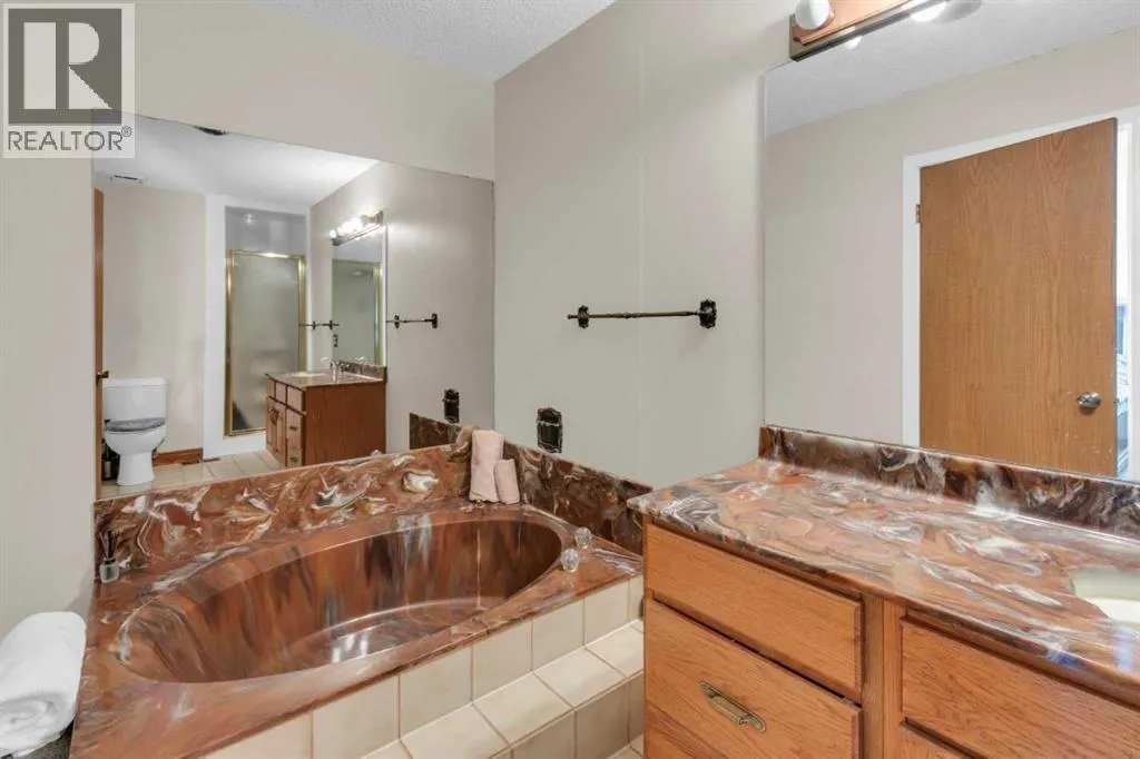 HOME SWEET HOME! Youâre going to fall in love with this SPECTACULAR WALK-UP BUNGALOW in the heart of the extremely sought-after NW community of EDEGEMONT, perfectly nestled on a quiet family-friendly cul-de-sac on a LARGE LOT! This home is immaculately maintained and loaded with original charm and character that is rare to find these days. Offering 6 bedrooms, 3 Full bathrooms and 3,471+ fully finished, move-in ready SQFT of living space. Heading inside past the amazing curb appeal you will instantly notice the incredible pride of ownership and attention to detail. The main floor offers a spacious foyer with built-in shelving, the stylish living room with Vaulted ceilings and large windows that floods the house in natural sunlight, formal dining area (currently an office/piano room), a gourmet chefâs kitchen with quartz countertops with peninsula breakfast bar, premium stainless steel appliances, built-in coffee nook and ample cabinet space, a bright kitchen nook with bay window, a cozy family room with brick wood burning fireplace perfect for those cool winter nights and patio doors leading to your huge back yard! Completing the main floor are 3 great sized bedrooms including the primary retreat complete with a 4 piece ensuite with a vintage 2 person soaking tub and separate shower and a full 4 piece bathroom. The fully finished walk-up basement with a separate entrance is perfect for a growing family or future investment/rental potential. The basement features 3 more large bedrooms (including another primary bedroom), 3 piece bathroom, laundry room, spacious recreation room with kitchenette and wet bar which walks out to a covered patio and utility room with tons of storage space. MAJOR UPDATES include a New Lennox furnace (2023), two hot water tanks (2018), energy-efficient triple-pane windows with new window coverings (2020), and CENTRAL AIR CONDITIONING. Outside, you will find a double attached garage with 4 driveway parking spots and the massive, fully f enced and beautifully manicured backyard with a balcony, huge patio with tons of space for barbequing and entertaining, and a convenient shed with a hot tub building (rough-in). You canât beat this DREAM LOCATION thatâs perfect for outdoor enthusiasts steps from Nose Hill Park with access to three off-leash dog parks and over 30 kms of scenic walking and biking pathways, desirable schools- Edgemont School, Tom Baines School and Sir Winston Churchill, Nose Hill Park, public transportation, shopping and a close drive to Downtown Calgary. MUST VIEW! Book your private viewing of this GEM today! (id:27476)