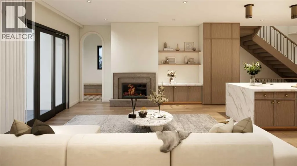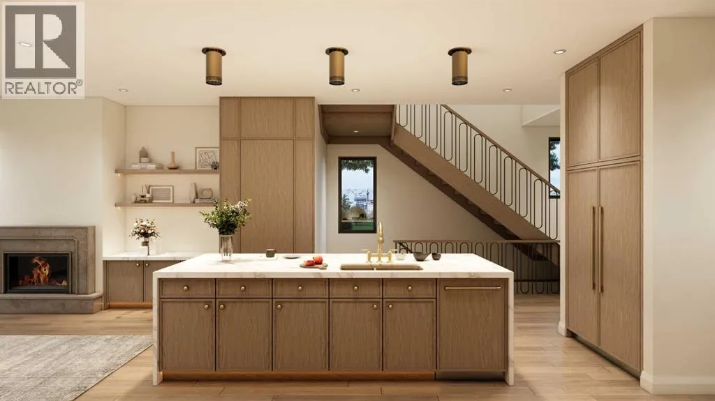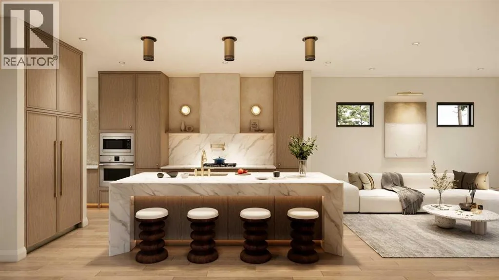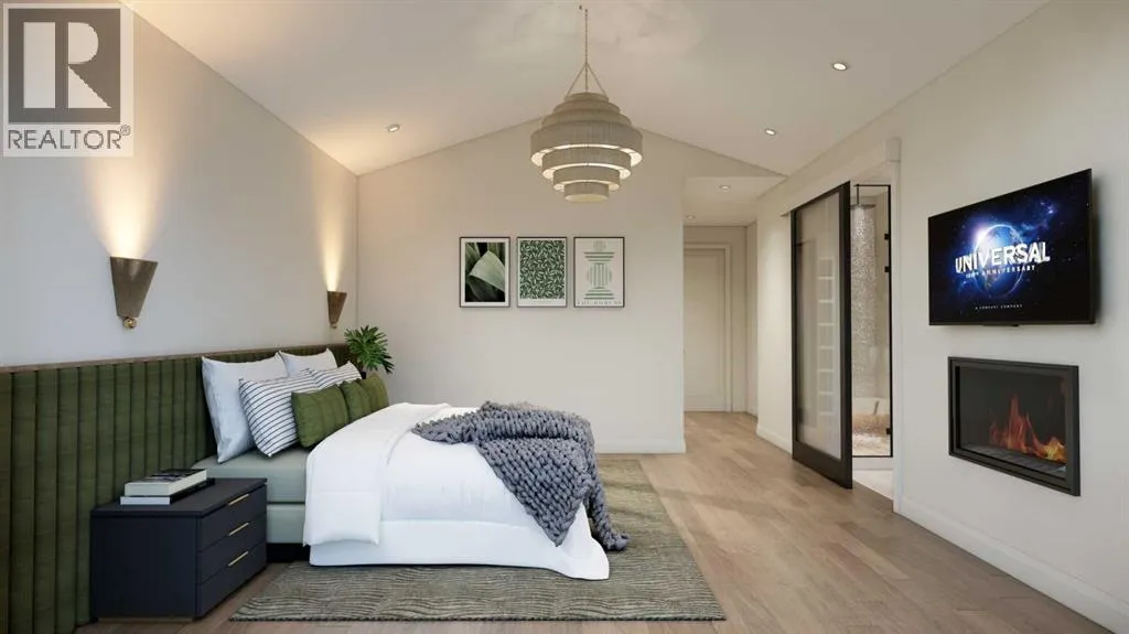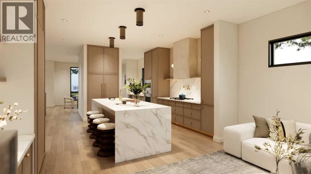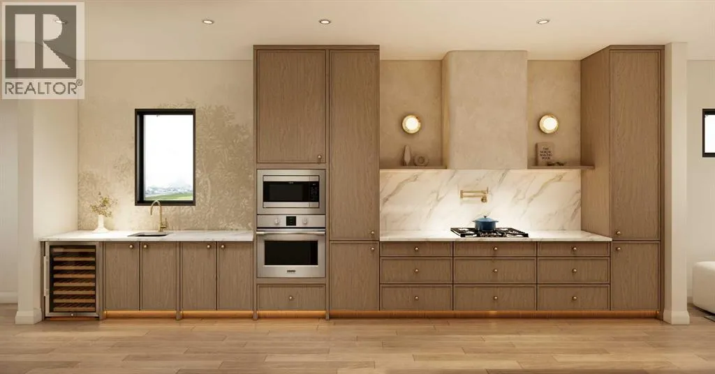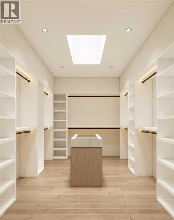 An artisanal masterpiece awaits, steps to Confederation Park, where every detail has been meticulously curated by a builder renowned for impeccable taste. Approaching the home, a large covered front patio welcomes you, setting the tone for a residence that is truly a cut above. Inside, the open~concept main floor is designed for both grand entertaining and everyday living. The front formal dining area features an adjacent wine display and a hidden butlerâs pantry, both encased in elegant white oak feature walls, while a tucked away hidden home office seamlessly blends sophistication with functionality. The expansive kitchen with panel ready JennAir appliances blends effortlessly into the living room at the back. Anchored by a striking stone cast gas fireplace hearth and complemented by a discreet powder room and spacious mudroom, this main floor leaves nothing to be desired. Ascending to the upper floor, the master suite impresses with an 18~foot vaulted ceiling and 12~foot double sided stone gas fireplace, offset by a freestanding tub. The ensuite exudes a moody, indulgent vibe with accent lighting, a large steam shower with body jets, and a raindrop shower head. The walk~in closet is the size of a secondary bedroom, filled with natural light from a skylight, lit accent cabinetry and a glass countertop valet stand. Two additional bedrooms, each with tray ceilings, starlights, and backlit crown moulding, also feature their own walk~in closets and ensuites. With a conveniently located (and magazine worthy) laundry room completing this space. The lower level continues the theme of refined living, offering a large living area with projector and screen, a wet bar with island, and an additional versatile home office space with glass wall detailing. A private large fourth bedroom for a family member or guests, includes a massive walk~in closet ideal for additional home storage. Even the mechanical room is a statement piece, finished with diamond checker plate walls an d epoxy floors. Throughout the home, thoughtful features abound. The oversized garage is also heated and fully finished with epoxy flooring, and the upper bathrooms are connected to an instant hot water system, All closets are finished in a thermally fused laminate material, complemented again by fully installed air conditioning system, and speaker system throughout. This is a home that marries unparalleled craftsmanship, intelligent design, and luxurious finishes at every turn. From the moment you arrive to the final detail in the basement, this home is a true reflection of bespoke elegance. Est completion July 2026. (id:27476)