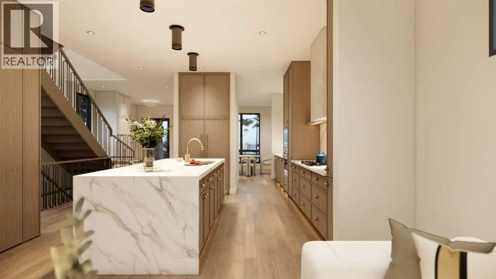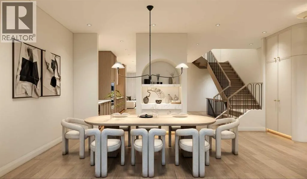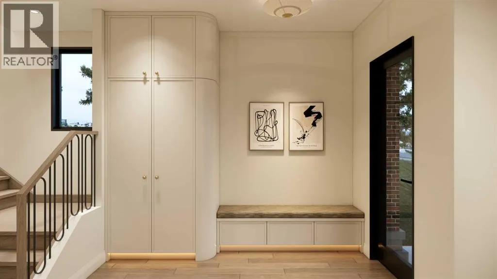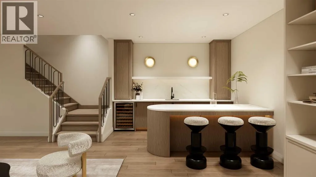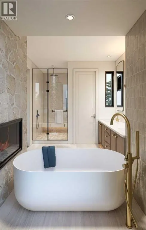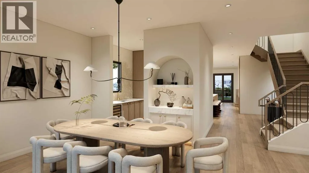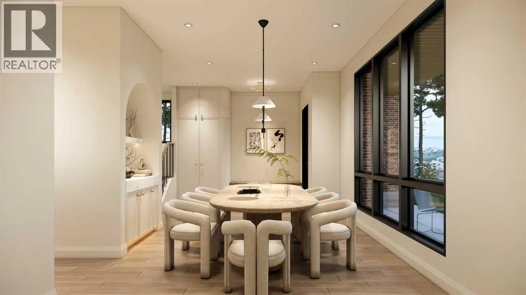 An artisanal masterpiece awaits, steps to Confederation Park, where every detail has been meticulously curated by a builder renowned for impeccable taste. Approaching the home, a large covered front patio welcomes you, setting the tone for a residence that is truly a cut above. Inside, the open~concept main floor is designed for both grand entertaining and everyday living. The front formal dining area features an adjacent wine display and a hidden butlerâs pantry, both encased in elegant white oak feature walls, while a tucked away hidden home office seamlessly blends sophistication with functionality. The expansive kitchen with panel ready JennAir appliances blends effortlessly into the living room at the back. Anchored by a striking stone cast gas fireplace hearth and complemented by a discreet powder room and spacious mudroom, this main floor leaves nothing to be desired. Ascending to the upper floor, the master suite impresses with an 18~foot vaulted ceiling and 12~foot double sided stone gas fireplace, offset by a freestanding tub. The ensuite exudes a moody, indulgent vibe with accent lighting, a large steam shower with body jets, and a raindrop shower head. The walk~in closet is the size of a secondary bedroom, filled with natural light from a skylight, lit accent cabinetry and a glass countertop valet stand. Two additional bedrooms, each with tray ceilings, starlights, and backlit crown moulding, also feature their own walk~in closets and ensuites. With a conveniently located (and magazine worthy) laundry room completing this space. The lower level continues the theme of refined living, offering a large living area with projector and screen, a wet bar with island, and an additional versatile home office space with glass wall detailing. A private large fourth bedroom for a family member or guests, includes a massive walk~in closet ideal for additional home storage. Even the mechanical room is a statement piece, finished with diamond checker plate walls an d epoxy floors. Throughout the home, thoughtful features abound. The oversized garage is also heated and fully finished with epoxy flooring, and the upper bathrooms are connected to an instant hot water system, All closets are finished in a thermally fused laminate material, complemented again by fully installed air conditioning system, and speaker system throughout. This is a home that marries unparalleled craftsmanship, intelligent design, and luxurious finishes at every turn. From the moment you arrive to the final detail in the basement, this home is a true reflection of bespoke elegance. Est completion July 2026. (id:27476)