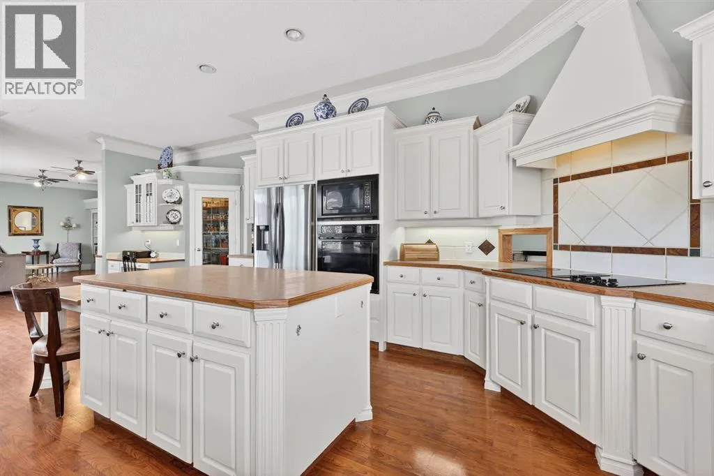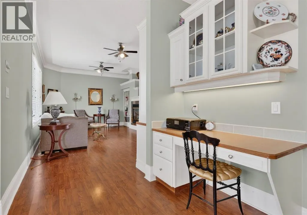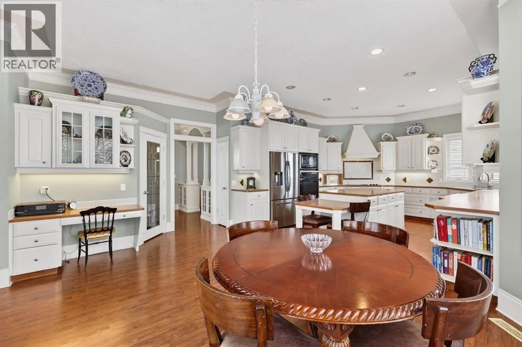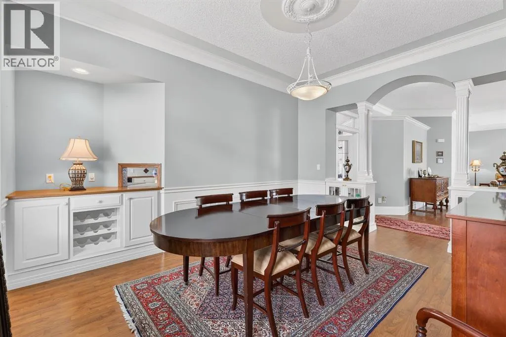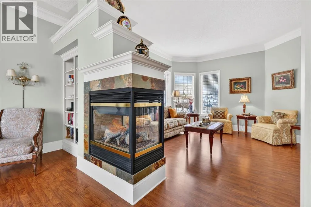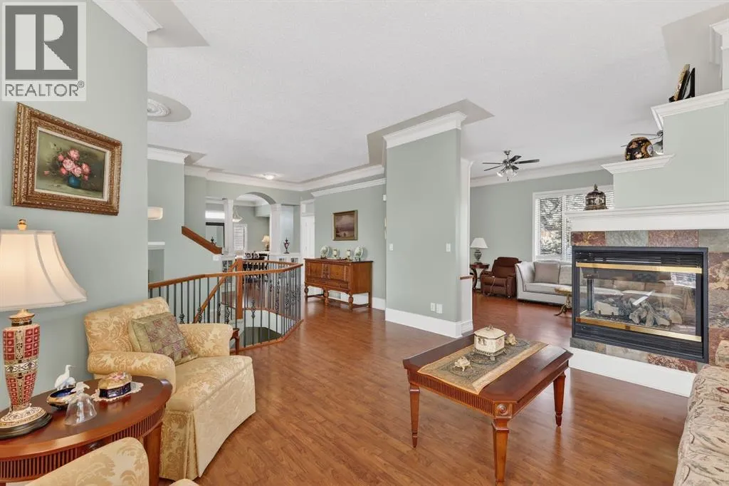 Welcome to a truly remarkable home in the heart of McKenzie Lake. Whether it's morning walks along the ridge, bike rides through the river valley, or quick access to everyday amenities along 130th Avenue, this location blends outdoor living with everyday convenience. Positioned on a corner lot, the exterior of this home is nothing short of striking. Sweeping across the lot, the front entrance features grand pillars, exposed aggregate walkway, and architectural detailing that sets the tone for what awaits inside. You are greeted with over 3700 square feet of developed living area, a foyer framed by soaring 10 foot ceilings, elegant wrought iron railings, with a welcoming yet impressive feeling. Just off the entrance sits a beautiful home office, enclosed by glass French doors and finished with custom built in bookshelves. A few steps up, the upper level introduces the primary retreat, thoughtfully elevated to create a sense of privacy. This space features dual walk-in closets and an ensuite designed with indulgence in mind. A corner soaker tub invites relaxation, while a standalone shower, generous counter space, and a private water closet complete this bathroom. The main level unfolds with timeless architectural detail. A formal dining area framed by custom pillars and archways creates a memorable setting for hosting, while the passthrough nook offers an added touch of convenience. Look up and notice the thoughtful detailing around each ceiling light fixture, subtle craftsmanship that adds character throughout. Just beyond, a formal sitting room provides a refined yet comfortable space. This area flows into the heart of the home where a triple sided fireplace connects the living spaces for warmth and ambiance. The main living room is designed for everyday comfort, complete with a built-in entertainment centre. At the center of it all is the kitchen, a true showstopper. The expansive corner layout provides an abundance of counter space, cabinetry, and drawers. A glas s cooktop and a custom hood fan that blends with the cabinetry add to the polished design. The large island serves as both a prep space, while also adding practicality with seating. Just beside it, a small dining area is wrapped in windows and overlooks the back deck and yard. Downstairs, the fully developed, walk out basement continues the homeâs thoughtful design. Large windows allow natural light to pour in, making the space feel bright. A custom wood bar and another fireplace anchors the recreation area, perfect for hosting friends or relaxed evenings in. This level also includes three additional bedrooms and a spacious five-piece bathroom. The lower level mudroom offers extra storage, laundry room, a convenient laundry chute exit, and access to the garage. The secluded yard feels like a private retreat where mature trees create a peaceful backdrop that offers both shade and privacy. Homes like this rarely come available, once you step inside you'll understand why. (id:27476)