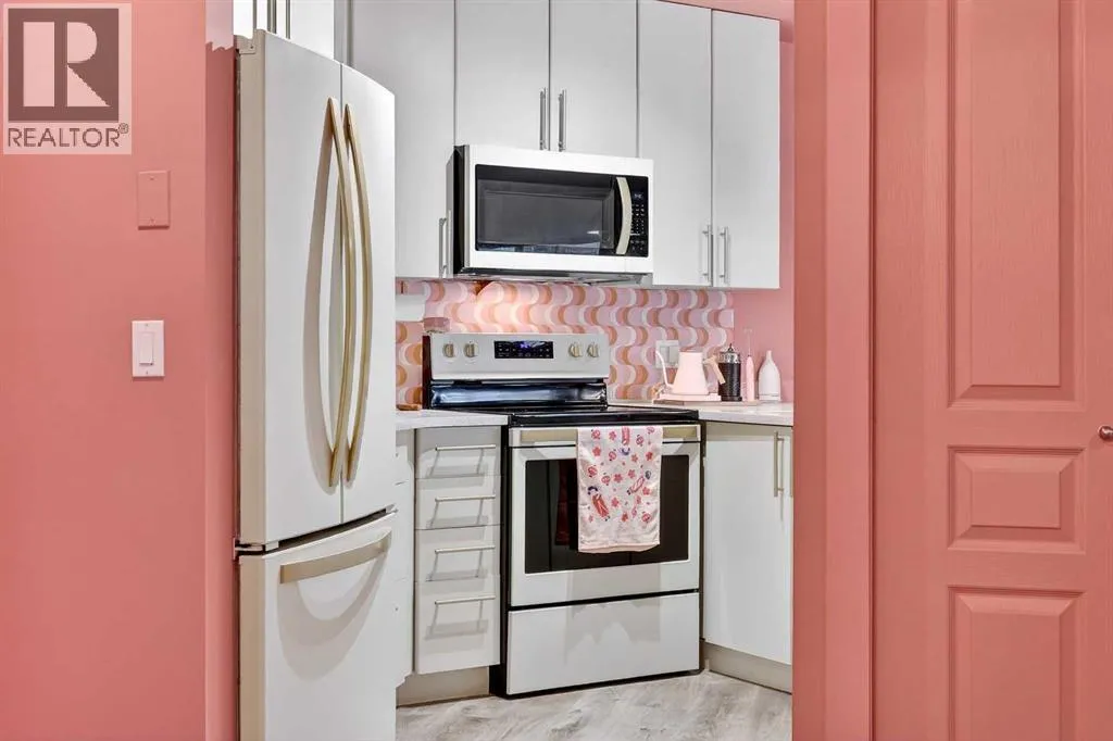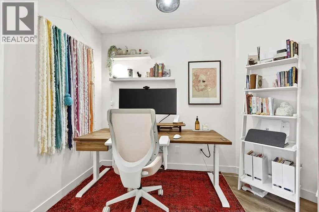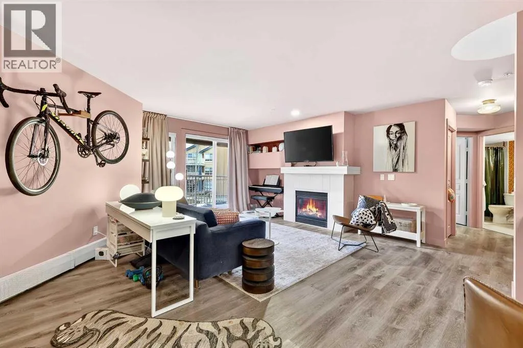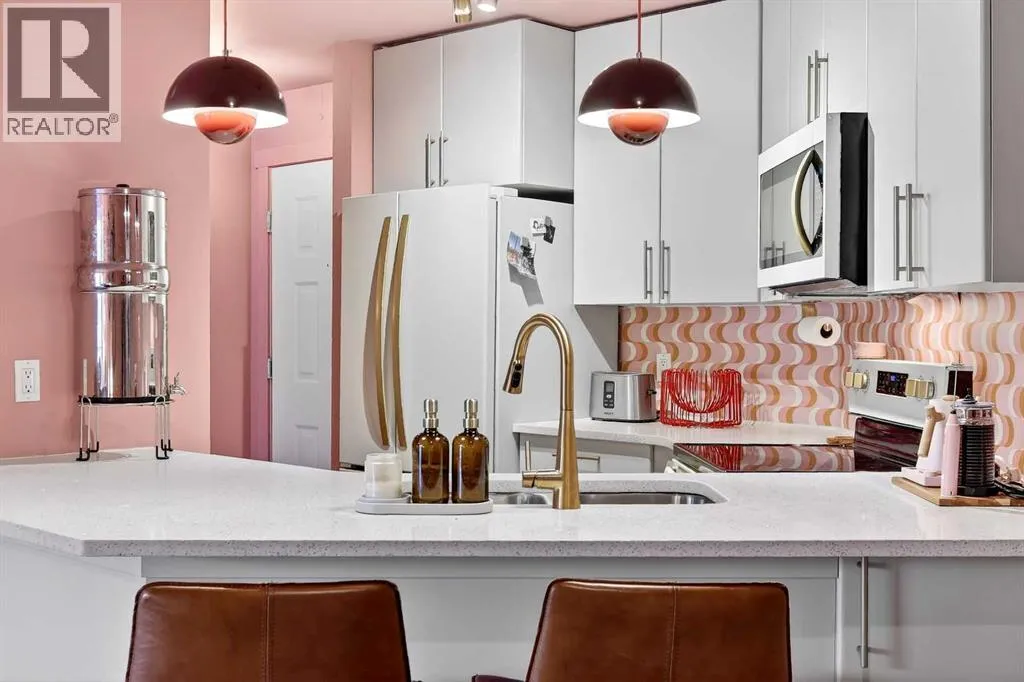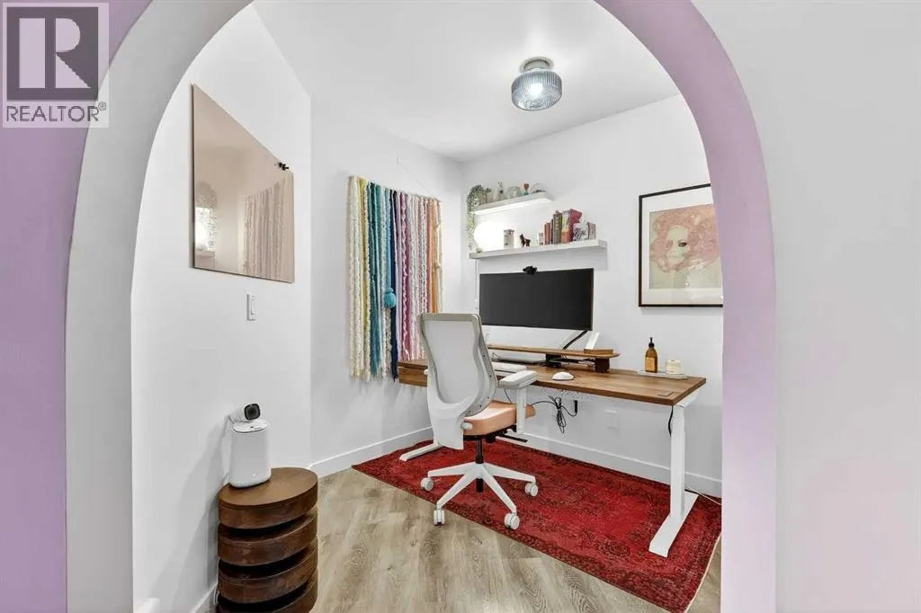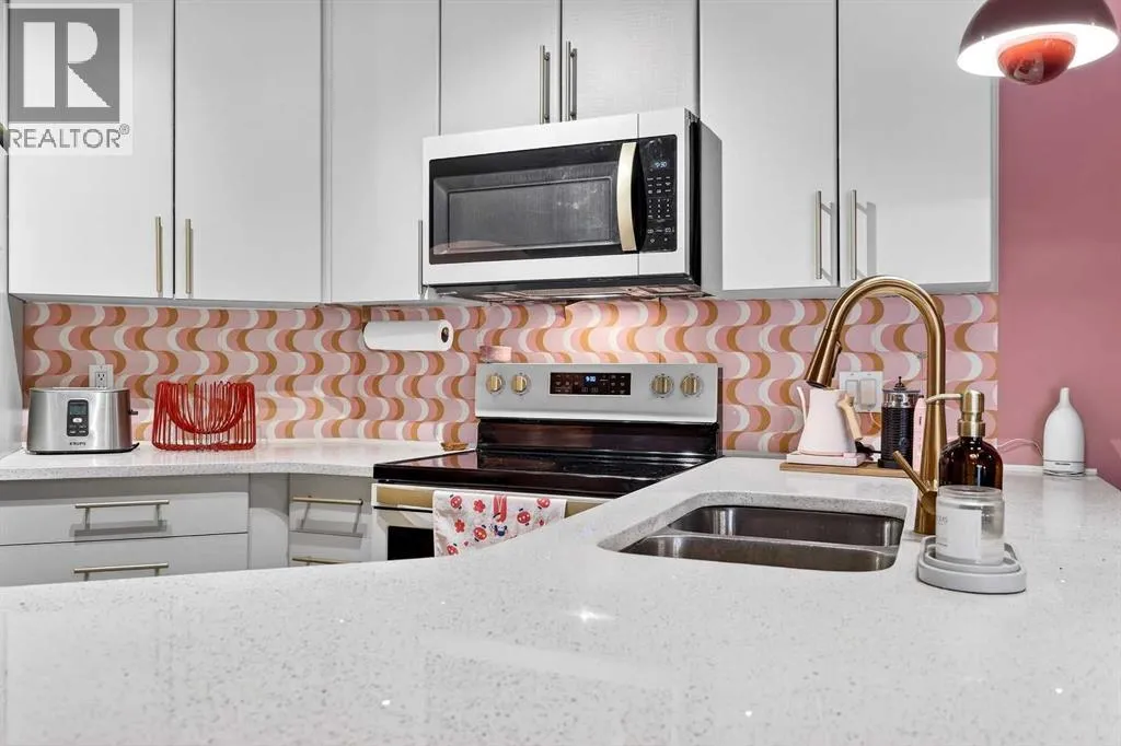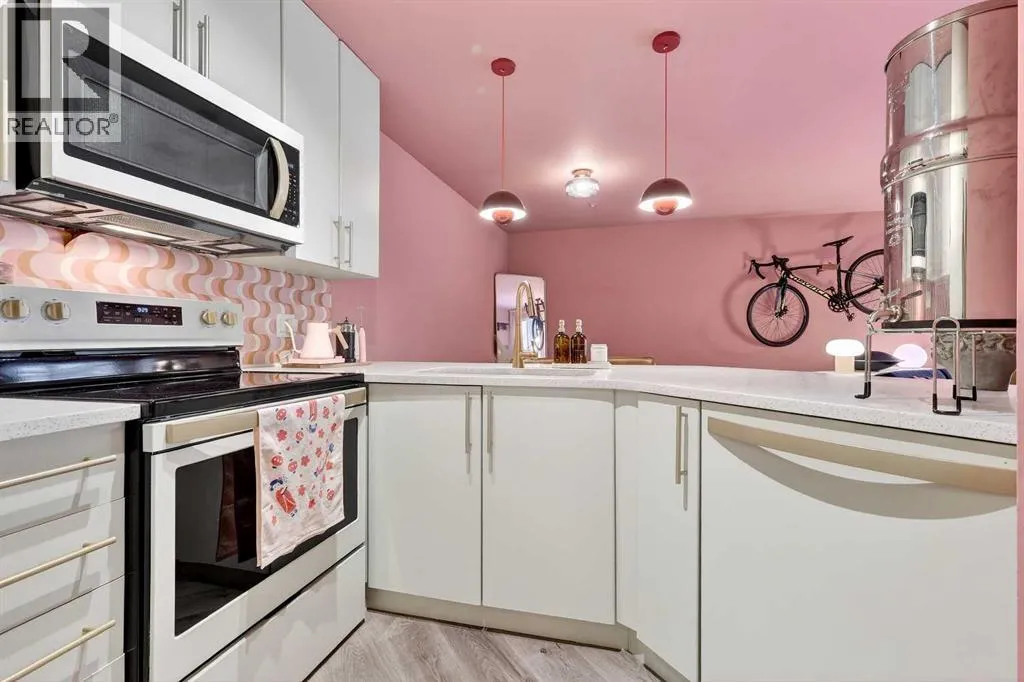 Style meets function in this fully upgraded, one-of-a-kind condo in the heart of Lincoln Park!This bright and beautifully updated 1-bedroom + den unit in Laurel House at the Park is bursting with personalityâperfect for someone who loves a home with character. From the custom paint and statement wallpaper to the eye-catching light fixtures, this space delivers serious retro-inspired charm with a modern twist.Step inside to an open-concept layout featuring newer laminate flooring and a stunning, fully renovated kitchen complete with crisp white quartz countertops, updated appliances, and elegant satin brass hardware. Whether youâre hosting friends or enjoying a quiet night in, this space is as functional as it is stylish.The spacious living and dining areas are flooded with natural light, thanks to large patio doors that lead to your private balcony overlooking a peaceful courtyardâyour own little escape in the city.Down the hall, a versatile den framed by a custom archway creates the perfect home office, reading nook, or creative studio. The beautifully updated 4-piece bathroom showcases a new vanity, tile work, tub surround, and bold designer wallpaper. The primary bedroom continues the vibe with a custom walk-in closet, retro sliding door, and more curated design touches.Additional features include in-suite laundry, titled underground parking, and storage for ultimate convenience.This well-managed building offers fantastic amenities including a fitness centre, party room, and secure underground parking. Tucked away on a quiet cul-de-sac, youâre just steps from MRU, local favourites, shopping, transit, and major roadways.If youâre looking for a home that stands out from the crowd and reflects your unique styleâthis is it. (id:27476)