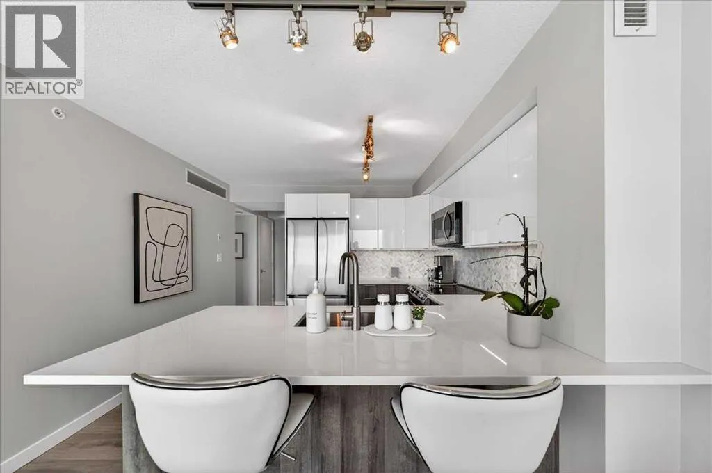 Welcome to the Chocolate building in the heart of the Beltline in Calgary, where this fully remodeled stunner truly leaves nothing untouched.With over $60K poured into a top-to-bottom transformation, the attention to detail here is undeniable. From the moment you walk in, youâre greeted with a thoughtfully reimagined layout, elevated by high-end finishes, refined materials, and a clean, modern design that flows effortlessly throughout. The kitchen has been completely redone to impressâfeaturing sleek cabinetry, upgraded countertops, and stylish fixtures that make both everyday living and entertaining feel elevated. The bathroom echoes that same level of care, with updated tile work, a contemporary vanity, and finishes that feel straight out of a magazine.Every surface has been consideredâflooring, lighting, hardwareâall curated to create a cohesive, polished look that feels both fresh and timeless. Perched on the 17th floor, the unit is drenched in natural light, with expansive windows framing stunning city views that shift from vibrant daytime energy to a glowing skyline at night.This isnât just a renovationâitâs a complete reinvention. A space where design meets function, and where every detail has been dialed in so you can simply move in and enjoy. (id:27476)