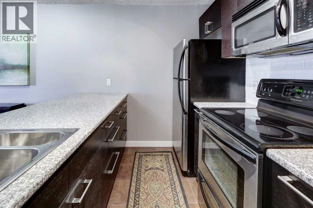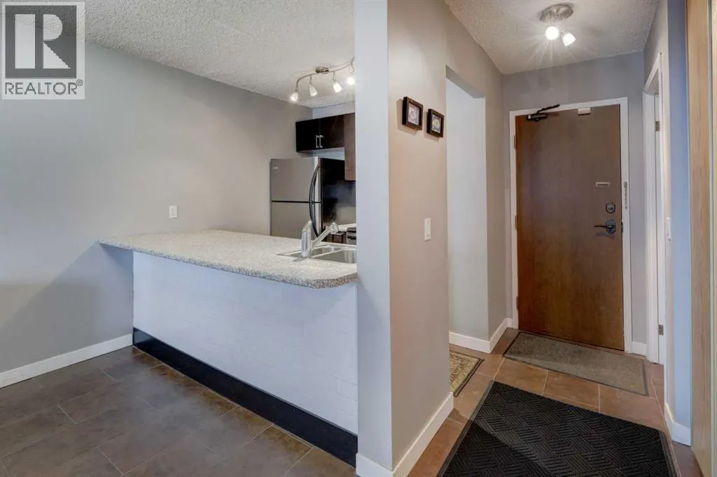 WELCOME HOME to this quiet, and meticulously maintained apartment condo in Calgaryâs premier riverside community of Eau Claire! Perfect for a single professional, couple working downtown, weekend retreat, or investment property, this unit offers both comfort and convenience in an unbeatable location. Thoughtfully updated in 2013, renovations include rich walnut cabinetry in the kitchen and bathroom, stainless steel appliances, new backsplash and countertops, updated lighting and switches, fresh paint, door trim, baseboards, and elegant tile flooring throughout. A functional breakfast bar seamlessly connects the kitchen to the spacious living roomâideal for everyday living and entertaining. The generously sized primary bedroom features ample closet space, while the versatile storage/den area offers potential for conversion to in-suite laundry. Step outside to your tiled balconyâperfect for relaxing or summer barbecues. This unit includes a titled underground parking stall and low monthly condo fees of $541, covering all utilities and access to exceptional amenities: a fully equipped fitness centre, sauna, bicycle storage, common laundry, concierge service (MonâFri, 8 AMâ11 PM), and weekend security. Enjoy the added convenience of an on-site store, wellness centre, and restaurant, all just steps from the Bow River pathways, downtown offices, shopping, dining, and public transit. Donât miss your chance to own in one of Calgaryâs most desirable downtown communities! Be sure to check out the VIRTUAL TOUR link for hi-tech interactive floor plans, hi-def photos, and state of the art virtual tours where you can take a "walk" throughout the rooms of the property. (id:27476)