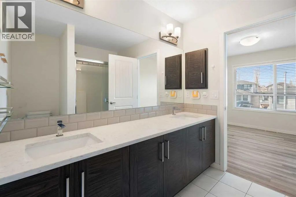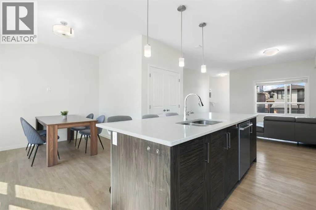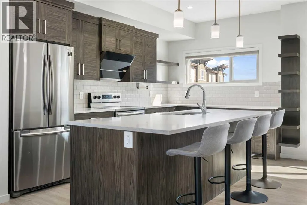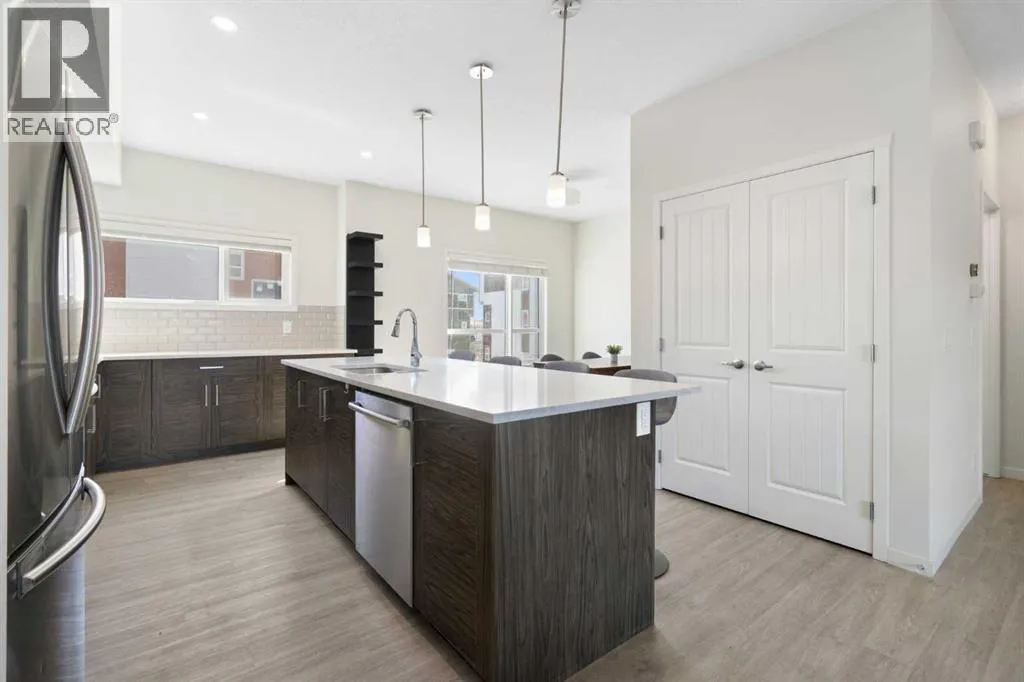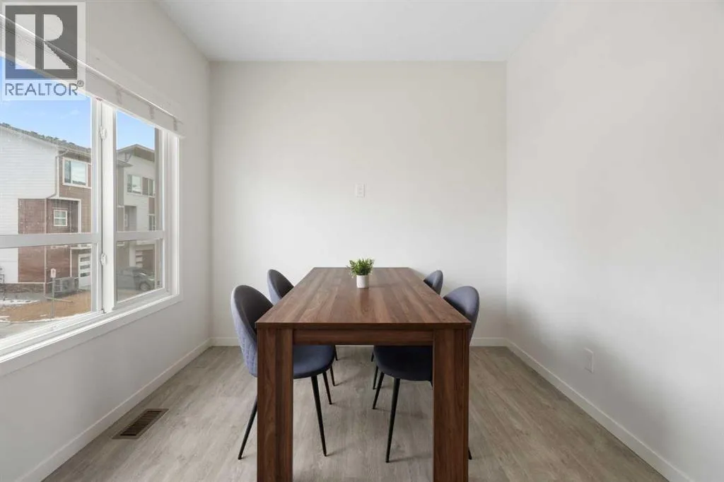 Secure this premium, move-in-ready 3-bedroom townhome in the heart of Harvest Hills! Built by Cedarglen Living, this well maintained 1,700 sq. ft. home offers the perfect blend of award-winning design and modern upgrades.Step into a spacious foyer featuring a double attached side-by-side garage and a versatile flex roomâcomplete with a stylish barn doorâmaking it the ideal private gym or home office. The main level boasts 9-foot ceilings and durable LVP flooring throughout a seamless open-concept layout. The chefâs kitchen is built for hosting, fully equipped with full-height cabinetry, quartz countertops, a central island, and stainless steel appliances.While many townhomes struggle with summer heat, you will enjoy year-round comfort with full central air conditioning. The upper level offers a primary suite with a walk-in closet and a double-vanity ensuite, alongside two additional bedrooms and a dedicated laundry area with side-by-side machines for maximum utility. Located minutes from Deerfoot Trail, YYC Airport, schools, and parks, this no-carpet, premium-spec home wonât last. Recent Upgrades include (LVP - NO carpet home 2023, Upgraded hood fan) Contact your favorite Realtor to book a showing today! (id:27476)