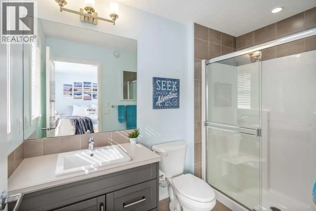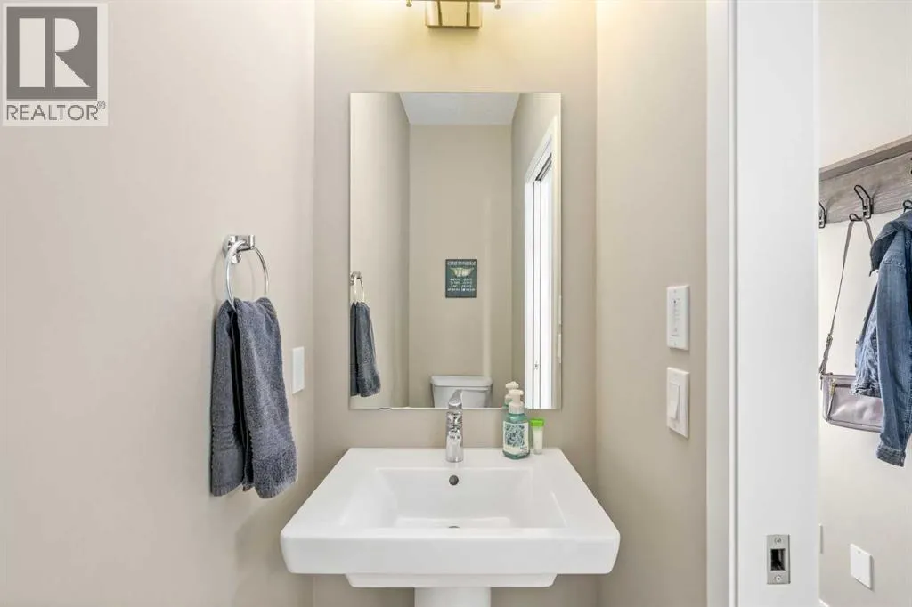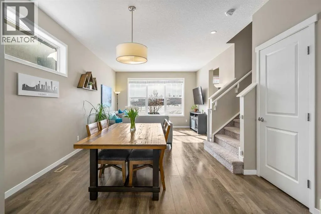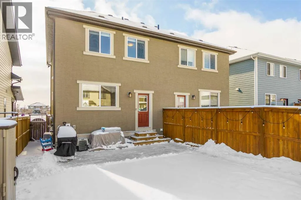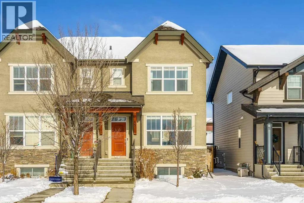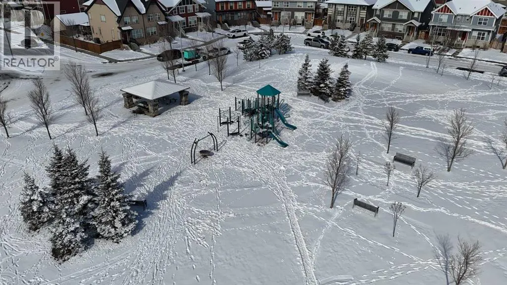 ** OPEN HOUSE CANCELLED** Welcome to this beautifully maintained, two storey attached home, ideally positioned in one of Mahoganyâs most desirable settings. Unlike many attached homes along the boulevard, this property enjoys a premium location on the square, where homes wrap around a charming central green space with a playground at its heart. This park-front setting creates a wonderful sense of community and provides a safe and inviting place for kids to play while neighbours gather and connectâperfect for young families or downsizers alike. From the moment you arrive, the south facing exposure (but don't worry A/C will keep you cool all summer long) and peaceful park views create an exceptional first impression. Inside, the home offers a thoughtful and functional layout designed for everyday living. Just off the front entrance, the spacious front living room is filled with natural light thanks to a large south-facing window and enjoys beautiful views of the park across the square. Laminate flooring runs throughout the main level, creating warmth and continuity throughout the space. The centrally positioned dining area connects the living room and kitchen, offering a comfortable setting for family meals or hosting friends, while the transom window above brings additional light into the heart of the home. At the back of the home, the kitchen is both stylish and practical, featuring grey cabinetry extended to the drop-down ceiling, stainless steel appliances, a hammered brick-laid subway tile backsplash, stand-alone hood fan, pantry closet, and a convenient "burger pass" through by the back entry that is perfect for unloading groceries or passing out BBQ essentials with ease. The rear entrance also includes a 2-piece bathroom, coat closet, and access to the spacious backyard with parking pad & firepit, perfect for those long summer nights. Upstairs youâll find three bedrooms including two kidsâ or guest rooms at the back, a full 4-piece bathroom, convenient laundry closet (laundry currently downstairs), and a spacious primary retreat at the front of the home. The primary bedroom offers a walk-in closet, private 3-piece ensuite, and peaceful views overlooking the park and playground across the square. The fully finished basement adds even more flexibility, featuring a large recreation space currently used for a home-based business but easily suited for a home gym, media room, kidsâ play space, or additional family room. Location is another standout feature of this home. Just down the street is the vibrant East Mahogany Marketplace and of course the Urban Village in central Mahogany, where youâll find an impressive mix of restaurants, cafés, shops, and everyday conveniences including Sobeys, Shoppers Drug Mart, Tim Hortons, banks, fitness studios, professional services, and more. And of course, this is Mahogany, Calgaryâs premier lake community, offering an incredible four-season lifestyle centred around its beautiful freshwater lake. (id:27476)