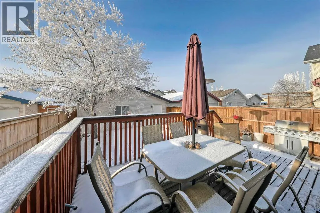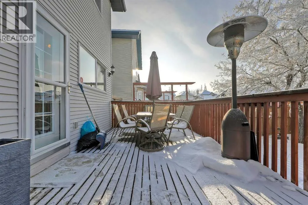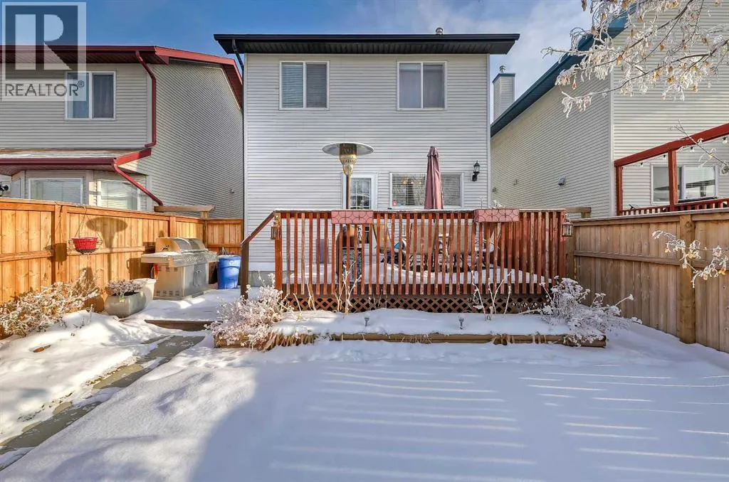This well-maintained single-family detached home in the heart of Cranston offers outstanding value, thoughtful updates, and future development potential. Boasting an oversized 21â 4â x 23â 4â double garage, a large West-facing landscaped backyard with planting area, and a large basement with two oversized windows and electrical work already completed, this home is ideal for first-time buyers, downsizers, or investors. The main floor features an open-concept layout, updated flooring, and a welcoming foyer with closets. Oversized windows in the living room fill the space with natural light. The kitchen features an updated stove and hood fan, ample cabinetry, counter space, and a big window overlooking the West-facing backyard. Central Air Conditioning (2022) keeps you cool in the summer. The dining area features an updated light fixture and opens directly onto the large 14' x 10' rear deck. A spacious, discreetly located powder room completes the main floor. Carpeted staircase leads to the quiet upper level with 3 spacious bedrooms and a full 4-pc bathroom. The primary bedroom overlooks the quiet street and includes a large walk-in closet, while the two additional bedrooms face the backyard and provide flexible use as bedrooms, guest rooms, or home offices. The unfinished basement is well prepared for future development, with completed electrical service, two large windows suitable for bedrooms, and included materials such as flooring system tiles and 2 interior passage doors. A full side-by-side laundry area is also located on this level. Major updates include a furnace (2022), roof (2019), hot water tank, and a radon mitigation system. Outside, the fully landscaped West-facing backyard features a dedicated planter area and ample space for outdoor seating, gardening, or play. The oversized double-detached garage offers over 500 sq. ft. of secure parking and storage space. Located in a quiet area of Cranston, this home offers quick access to Stoney Trail, Deerfoot Tra il, and the South Calgary Health Campus Hospital. Many schools and playgrounds are nearby, including Cranston School and Christ the King Catholic School. Residents benefit from the Cranston Residents Association. Outdoor enthusiasts will appreciate the proximity to the Bow River pathway system and Chinook Rotary Nature Park. Everyday shopping and services, including Sobeys, are just minutes away. (id:27476)