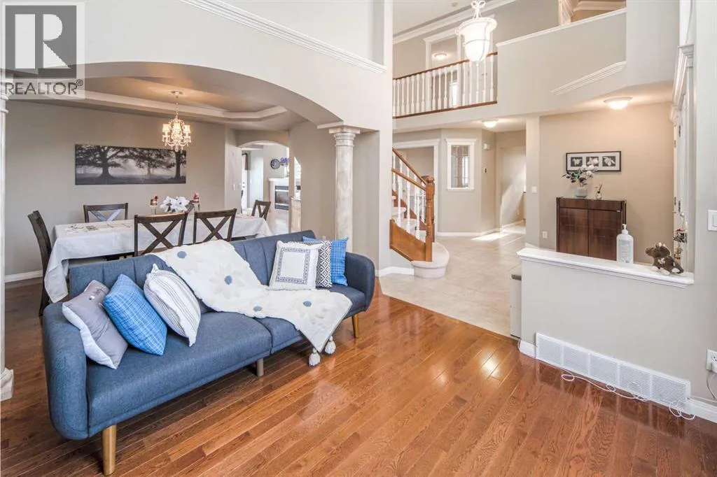 Open House March 28st Saturday 1:00-3:00pm. Golf Course View | Walkout Basement | Backing onto Green Space | 17â High CeilingsWelcome to this beautifully appointed estate two-storey home built by Janssen Homes, ideally located in the prestigious Hamptons community, backing directly onto the 11th hole of the Hamptons golf course. This fully finished home offers 5 bedrooms, Oak hardwood flooring, and a functional family-oriented layout. The main floor features a bright living room with soaring 17-foot ceilings, a formal dining room with elegant columns and recessed ceiling, a dedicated home office, and a spacious family room with floor-to-ceiling windows and 17-foot ceiling, built-in entertainment center, and a 3-sided fireplace. The cherry hardwood kitchen is equipped with granite countertops, a walk-in pantry, and upgraded stainless steel appliances, dishwasher(2025). The adjacent dining nook overlooks the golf course and green space. Upstairs offers 4 generously sized bedrooms, including a luxurious primary retreat with a walk-in closet, 3-sided fireplace, and spa-inspired ensuite featuring a jetted tub, double vanity, and separate shower. The walkout basement is fully developed with a 5th bedroom, full bathroom, large recreation room with wet bar, gas fireplace, and extensive built-insâideal for entertaining. New vinyl wood plank (2024) Additional features include central air conditioning, main floor laundry, and an oversized double attached garage. Enjoy outdoor living with both an upper balcony and a covered patio overlooking Golf course green space. The beautifully landscaped backyard with stone pathways and retaining walls. Located within minutes to Hamptons School, transit, parks, Superstore, LRT, University of Calgary, Foothills Medical Centre, and downtown. (id:27476)
