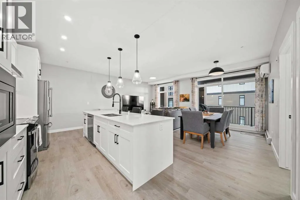This beautifully upgraded 2 bedroom, 2 bathroom condo in the heart of Seton offers over 900 sq ft of impressive, sun-filled living space with air conditioning, luxury vinyl plank flooring, large windows, upgraded lighting, and a gourmet kitchen featuring a huge island and modern finishes. The open-concept kitchen, living, and dining area is drenched in natural light, offers subtle mountain views, and creates an exceptional setting for hosting and entertaining. The spacious primary suite includes a walk-in closet and a luxurious ensuite with an oversized walk-in shower, while the second bedroom easily fits a queen bed and is paired with a full second bathroomâideal for guests, roommates, or a home office. This standout floorplan delivers incredible functionality and flow, making it perfect for downsizers, investors, first-time buyers, or anyone looking to enjoy a stylish, spacious home in one of Calgaryâs most sought-after communities. Seton offers unmatched convenience with walkable access to dining, entertainment, shopping, offices, the South Health Campus, and the world-class Brookfield YMCA, plus quick connectivity to Deerfoot and Stoney Trail. (id:27476)